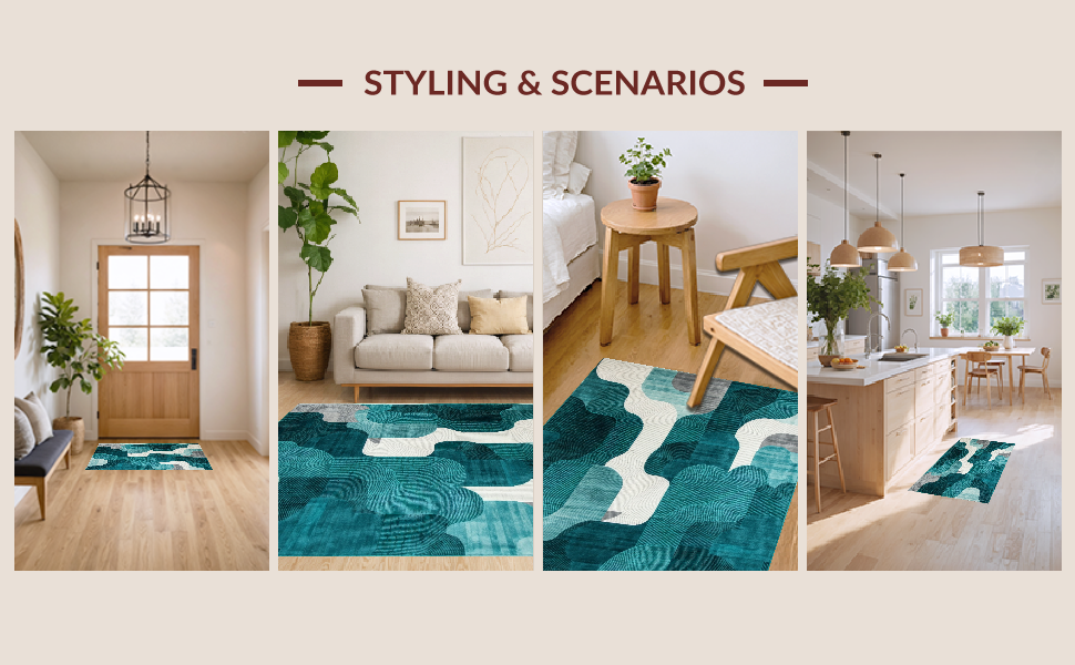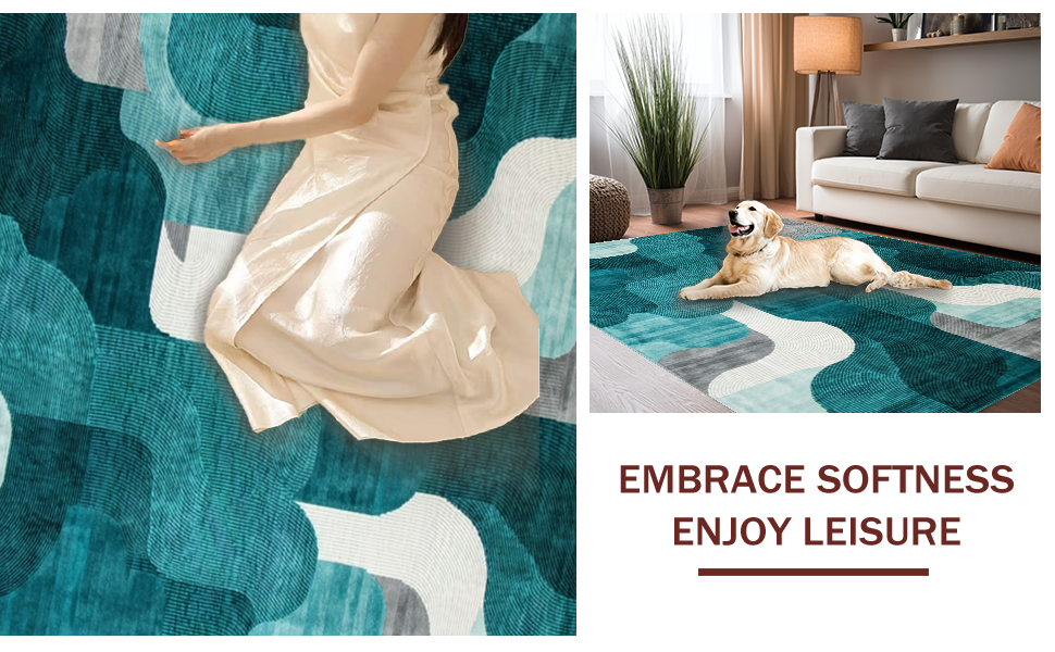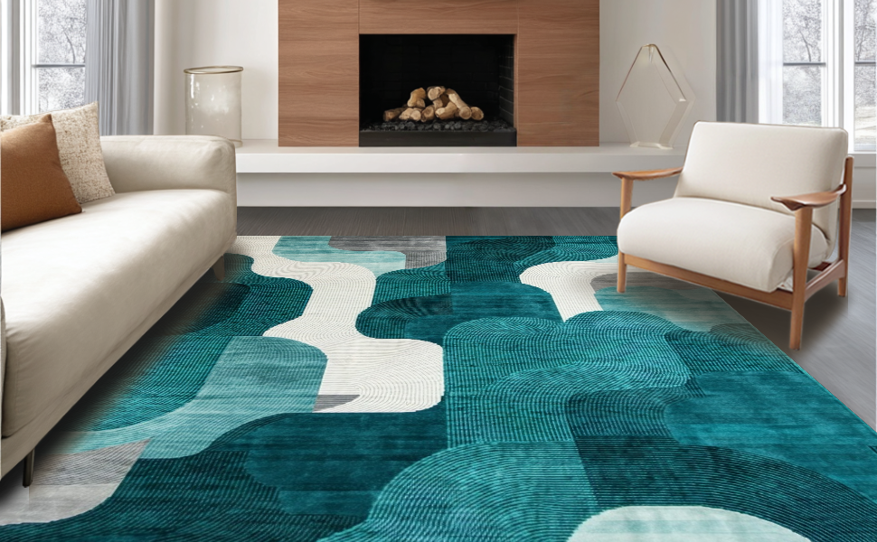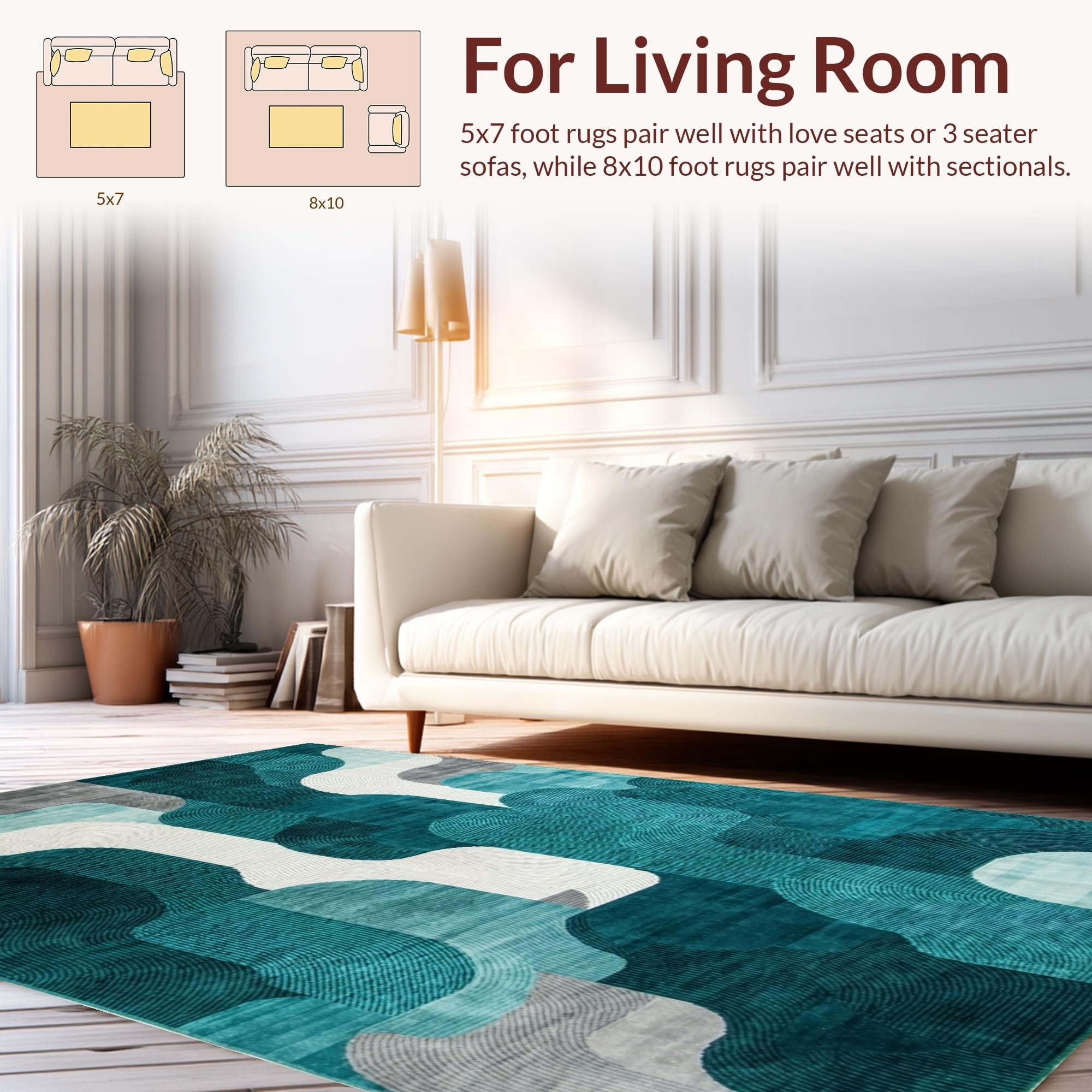 Ultra Soft Area Rug, Non Slip, Stain Resistant, Washable Area Rugs for Living Room, Bedroom, Dynamic Modern Digital Patterns(Green) Overview:
