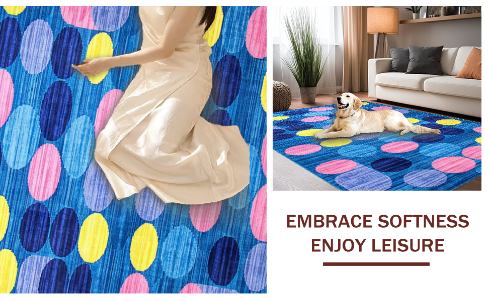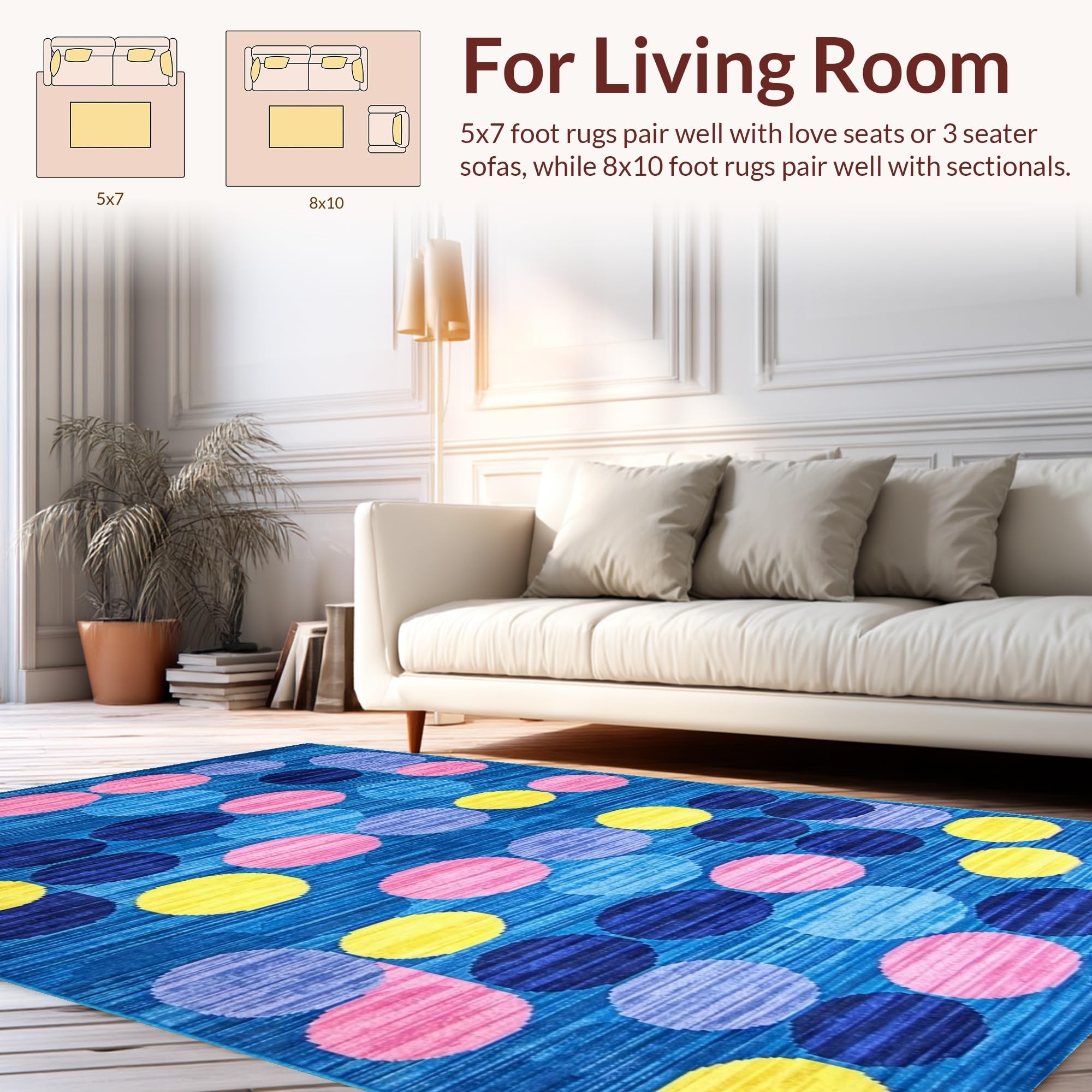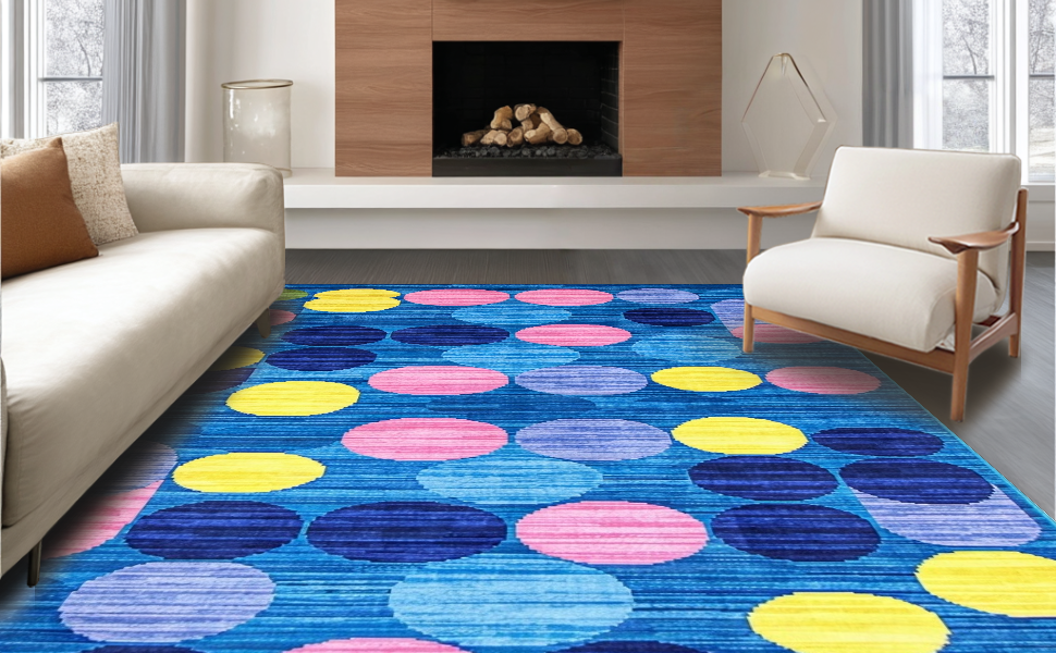 Ultra Soft Area Rug, Non Slip, Stain Resistant, Washable Area Rugs for Living Room, Bedroom, Dynamic Modern Geometric Motif(Blue) Overview: