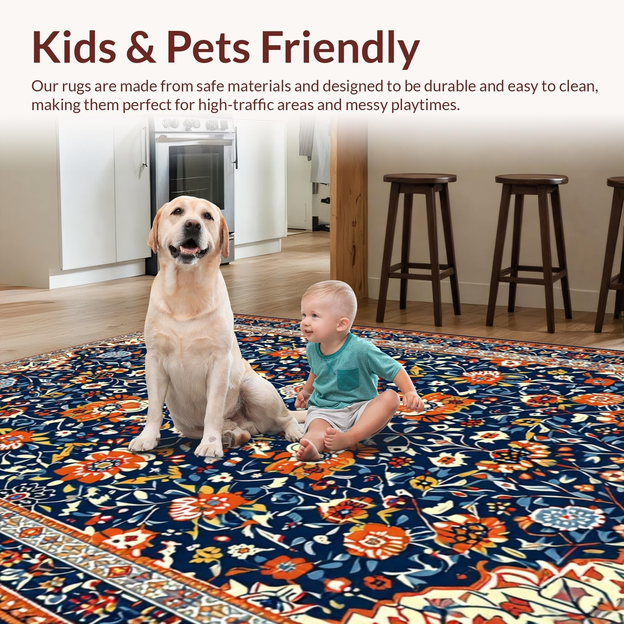 Ultra Soft Area Rug, Non Slip, Stain Resistant, Washable Area Rugs for Living Room, Bedroom, Dynamic Modern Swirl Aesthetic(Blue) Overview: