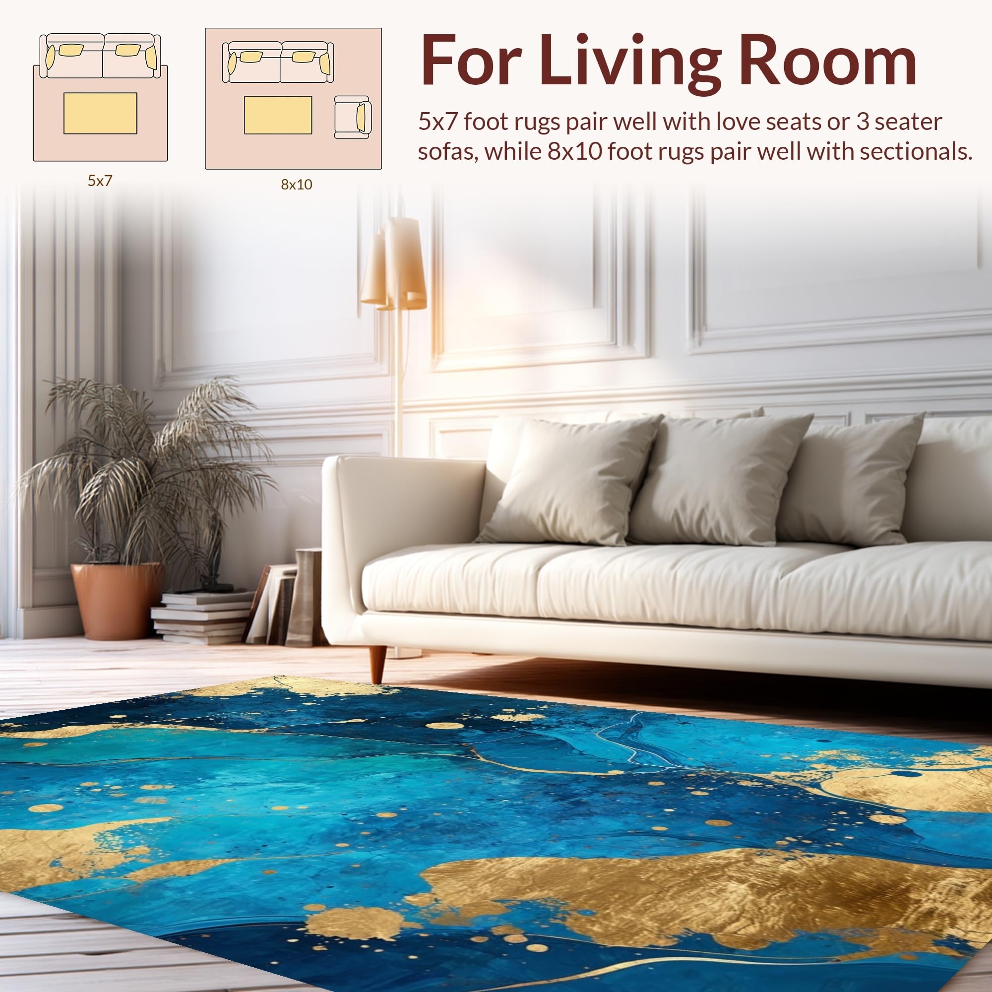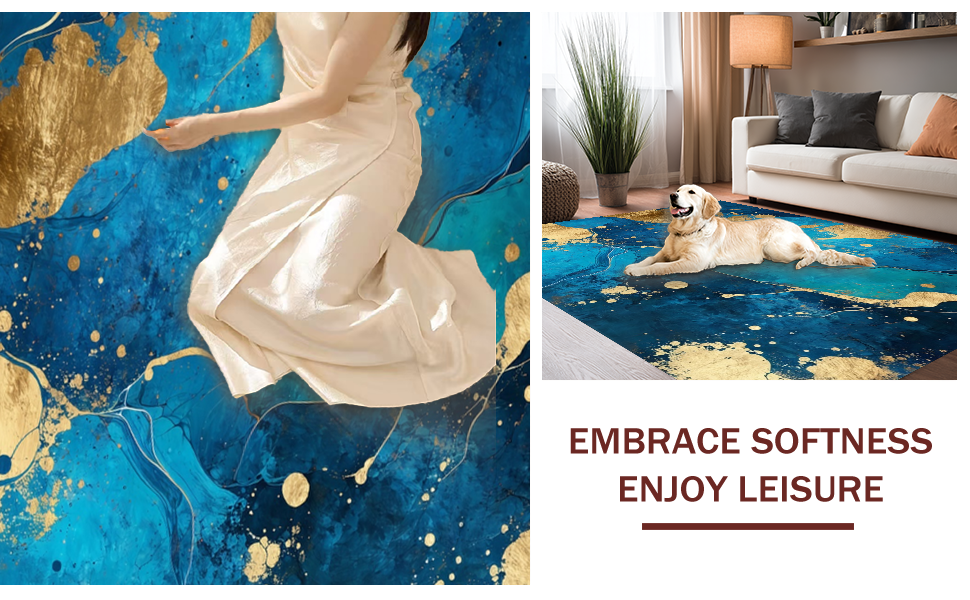 Ultra Soft Area Rug, Non Slip, Stain Resistant, Washable Area Rugs for Living Room, Bedroom, Dynamic Modern Textured Waves(Blue) Overview: