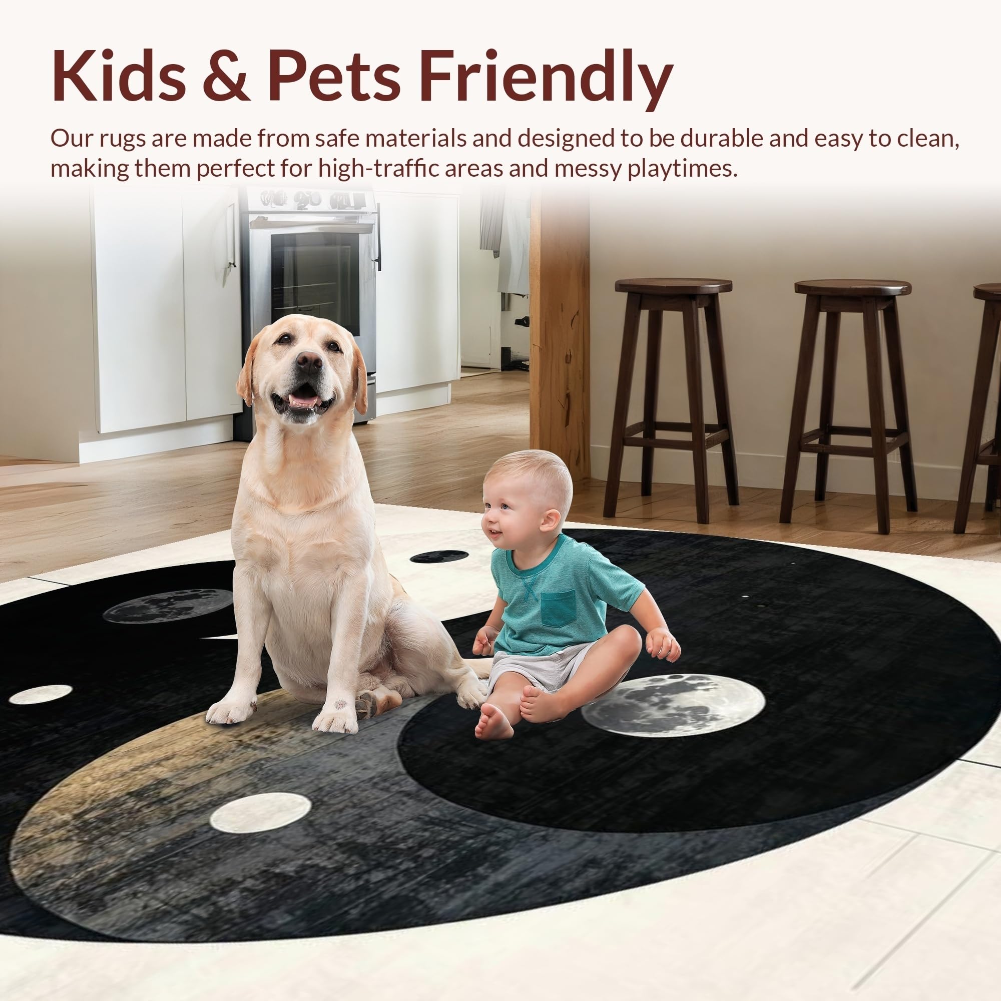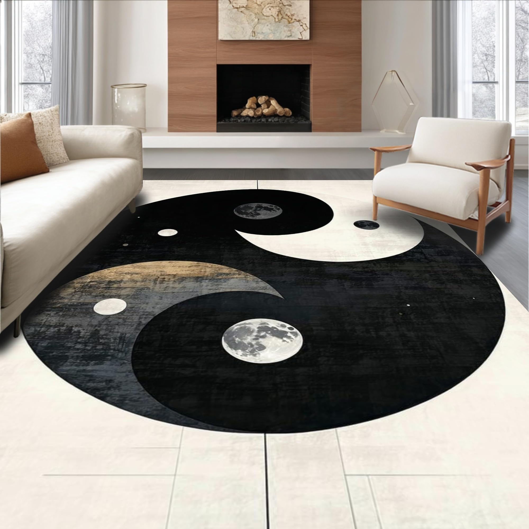 Ultra Soft Area Rug, Non Slip, Stain Resistant, Washable Area Rugs for Living Room, Bedroom, Dynamic Monochrome Trigram Arrangement(Black) Overview: