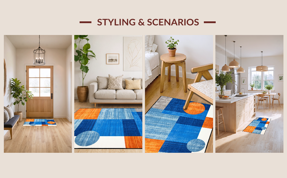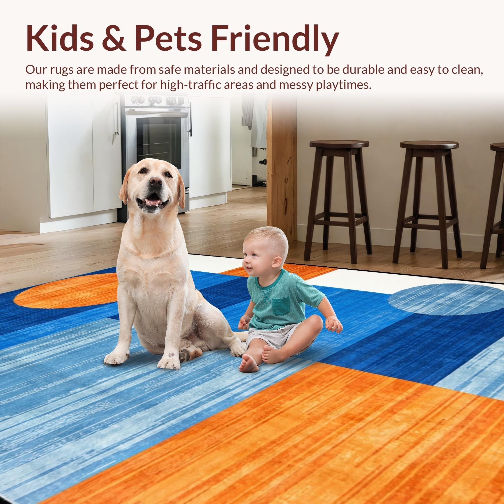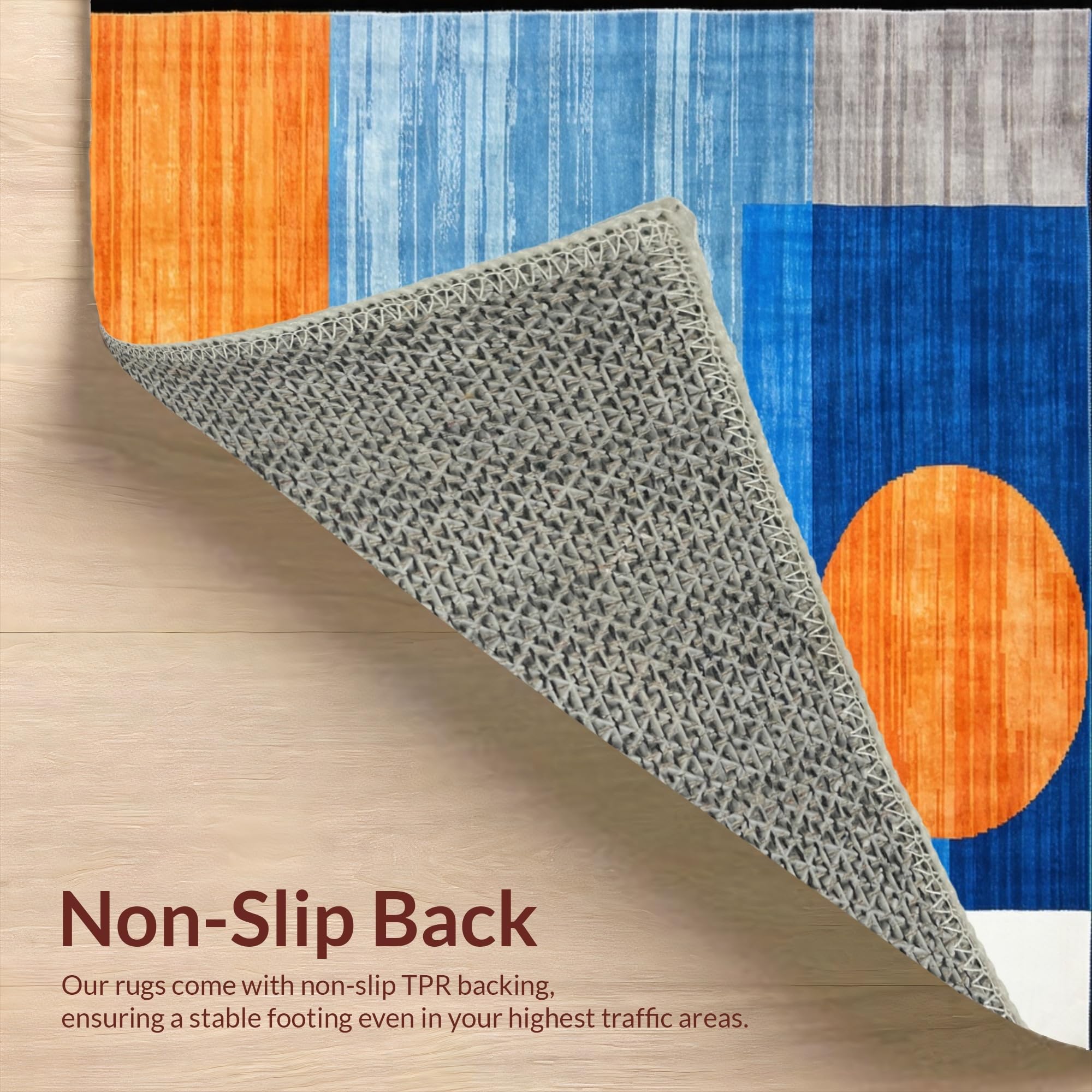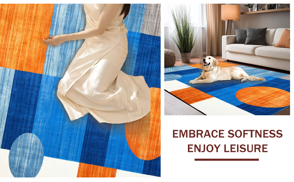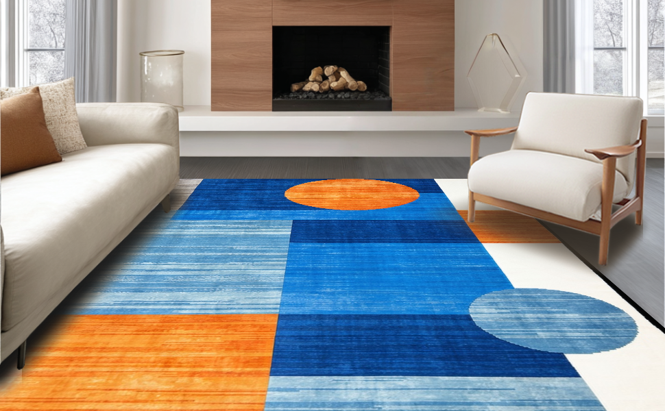 Ultra Soft Area Rug, Non Slip, Stain Resistant, Washable Area Rugs for Living Room, Bedroom, Dynamic Multi-Tone Abstract Artwork(Blue) Overview: