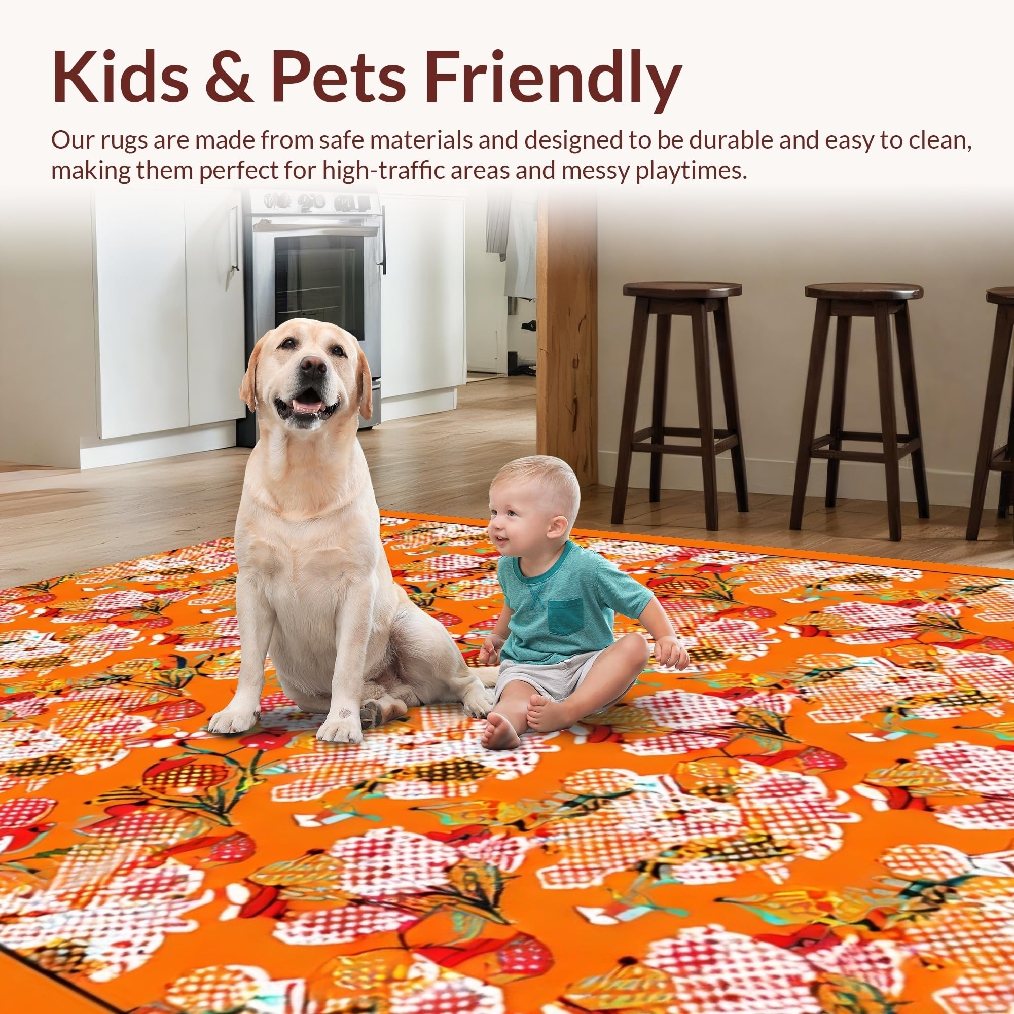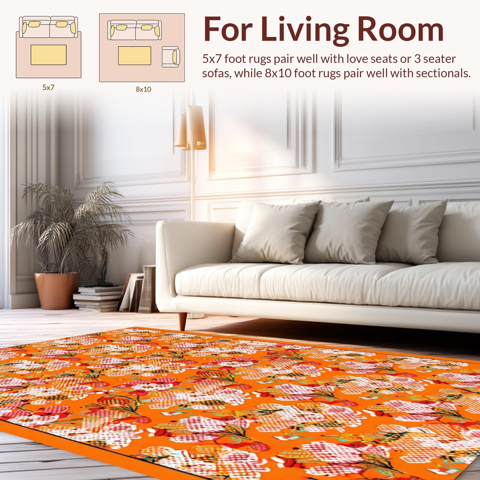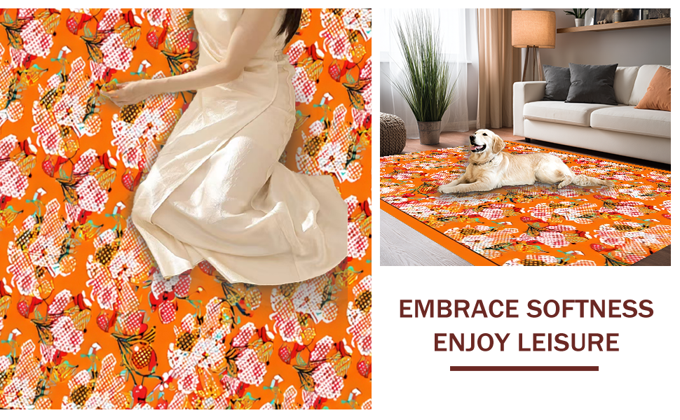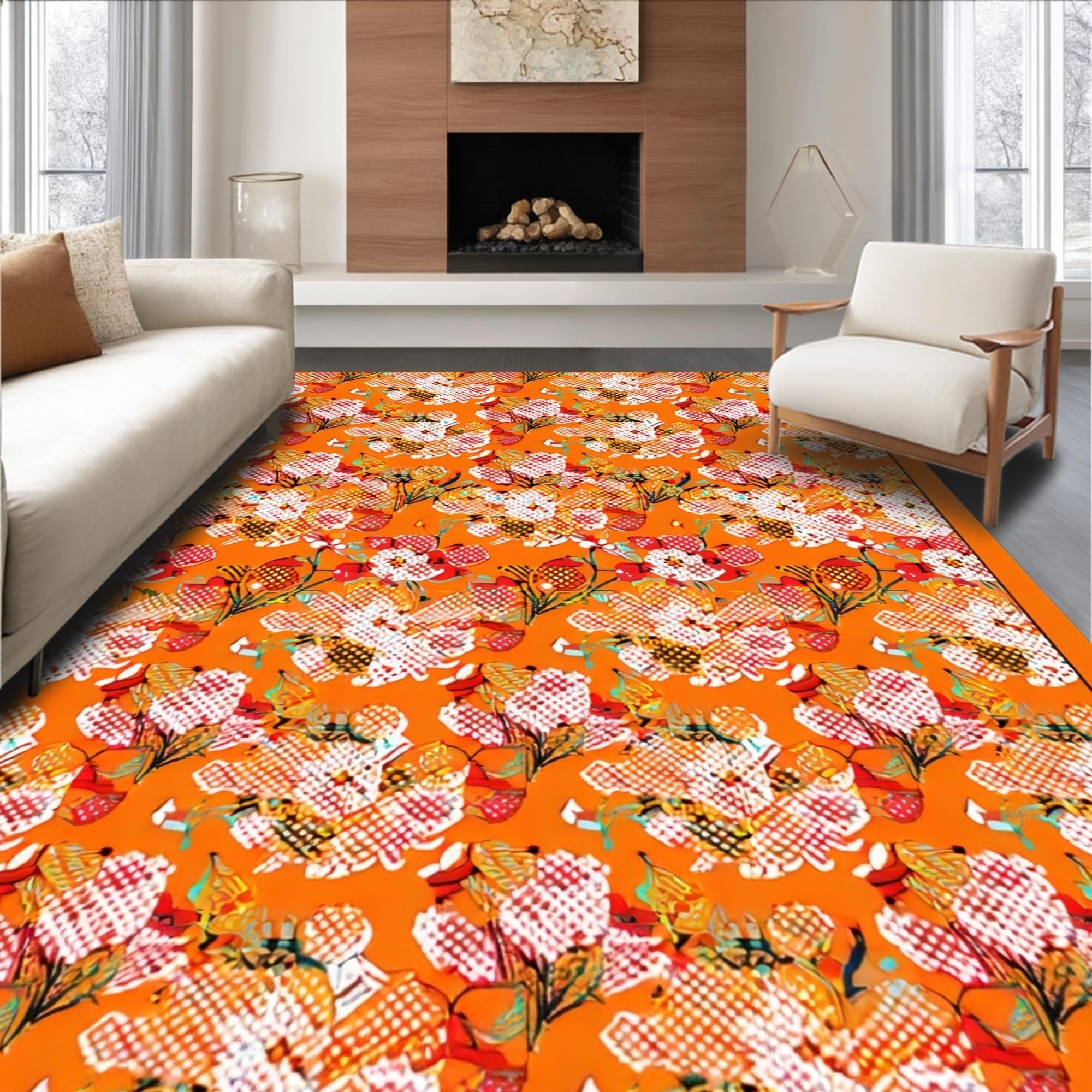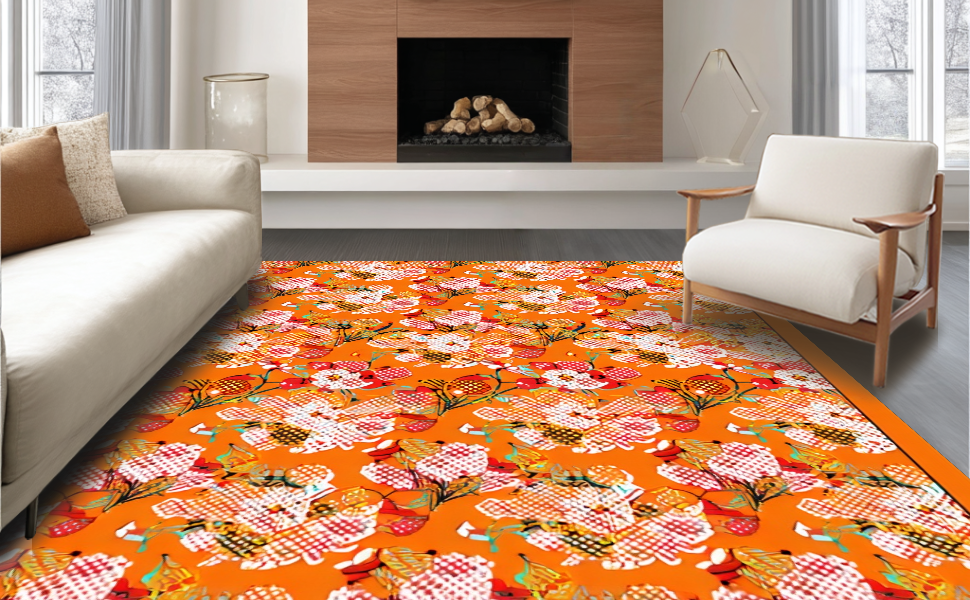 Ultra Soft Area Rug, Non Slip, Stain Resistant, Washable Area Rugs for Living Room, Bedroom, Dynamic Multicolor Geometric Style(Orange) Overview: