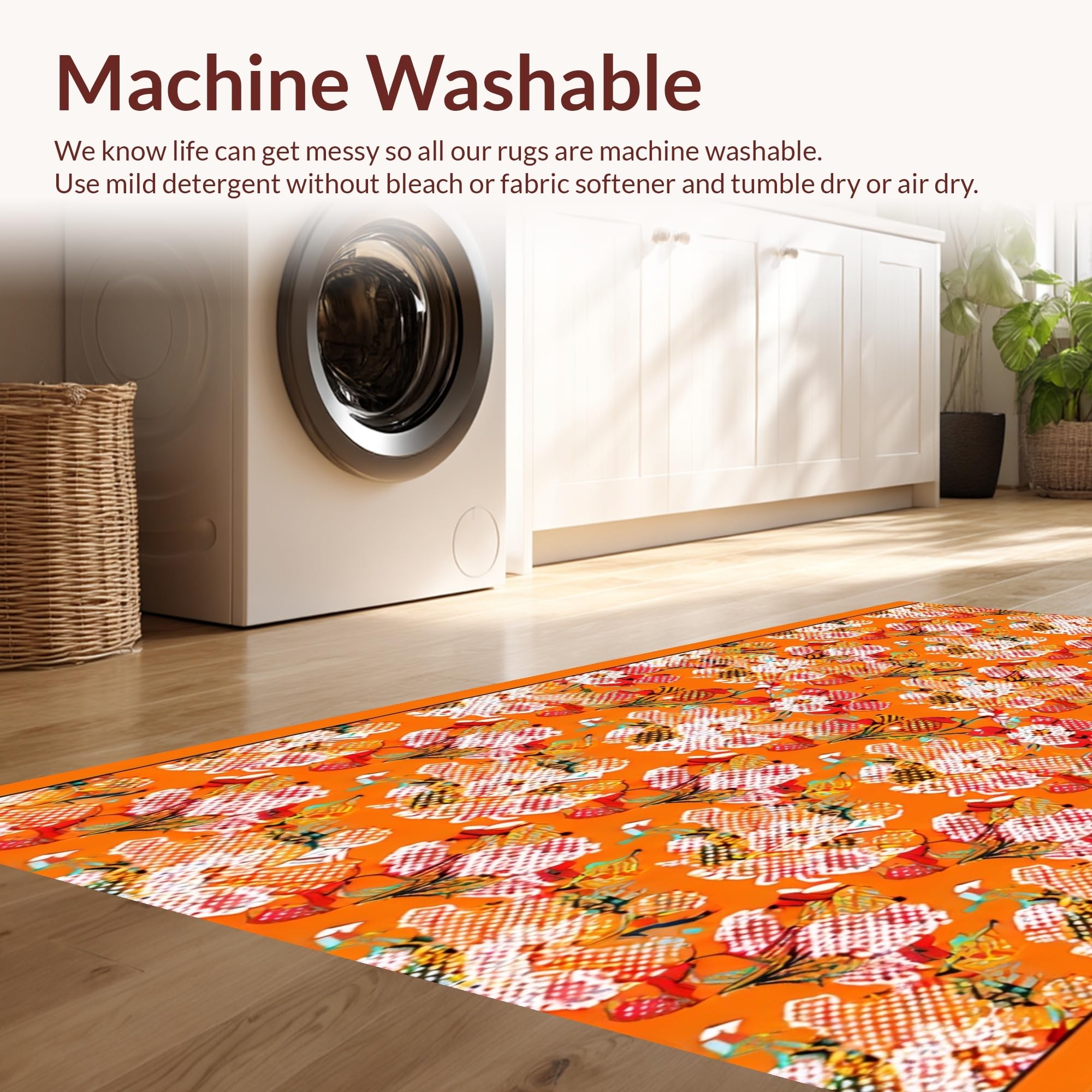 - Machine Washable: Our rugs can be easily thrown in the wash machine.