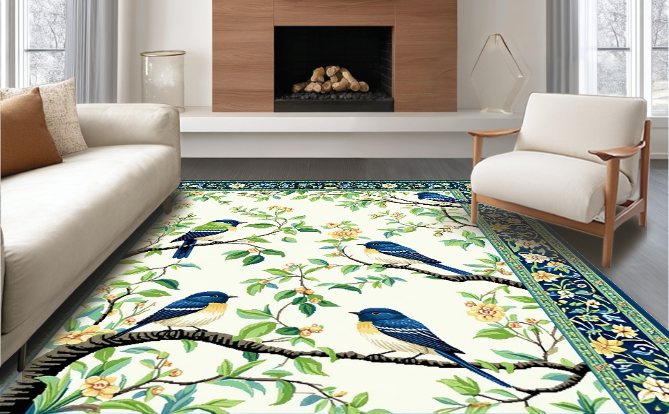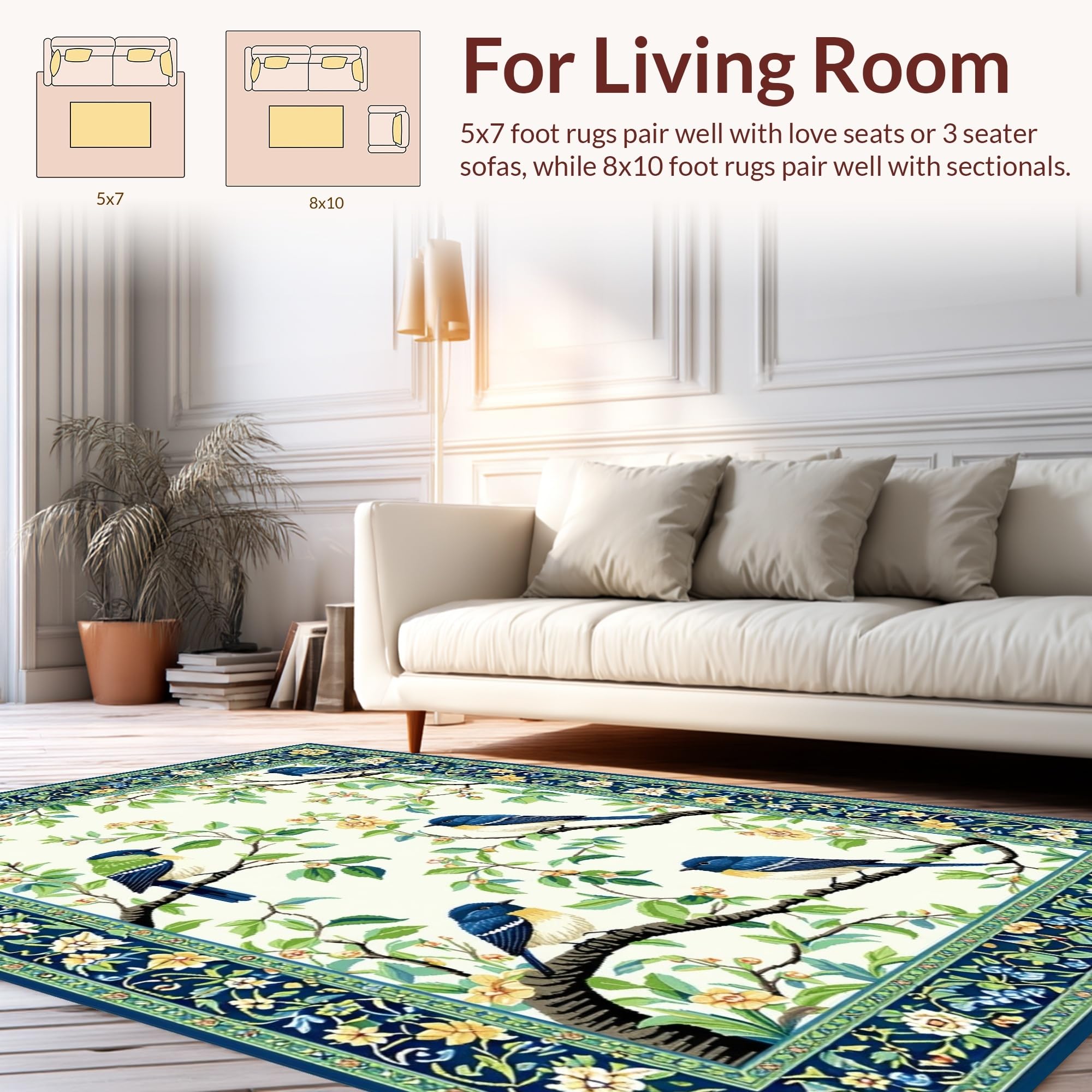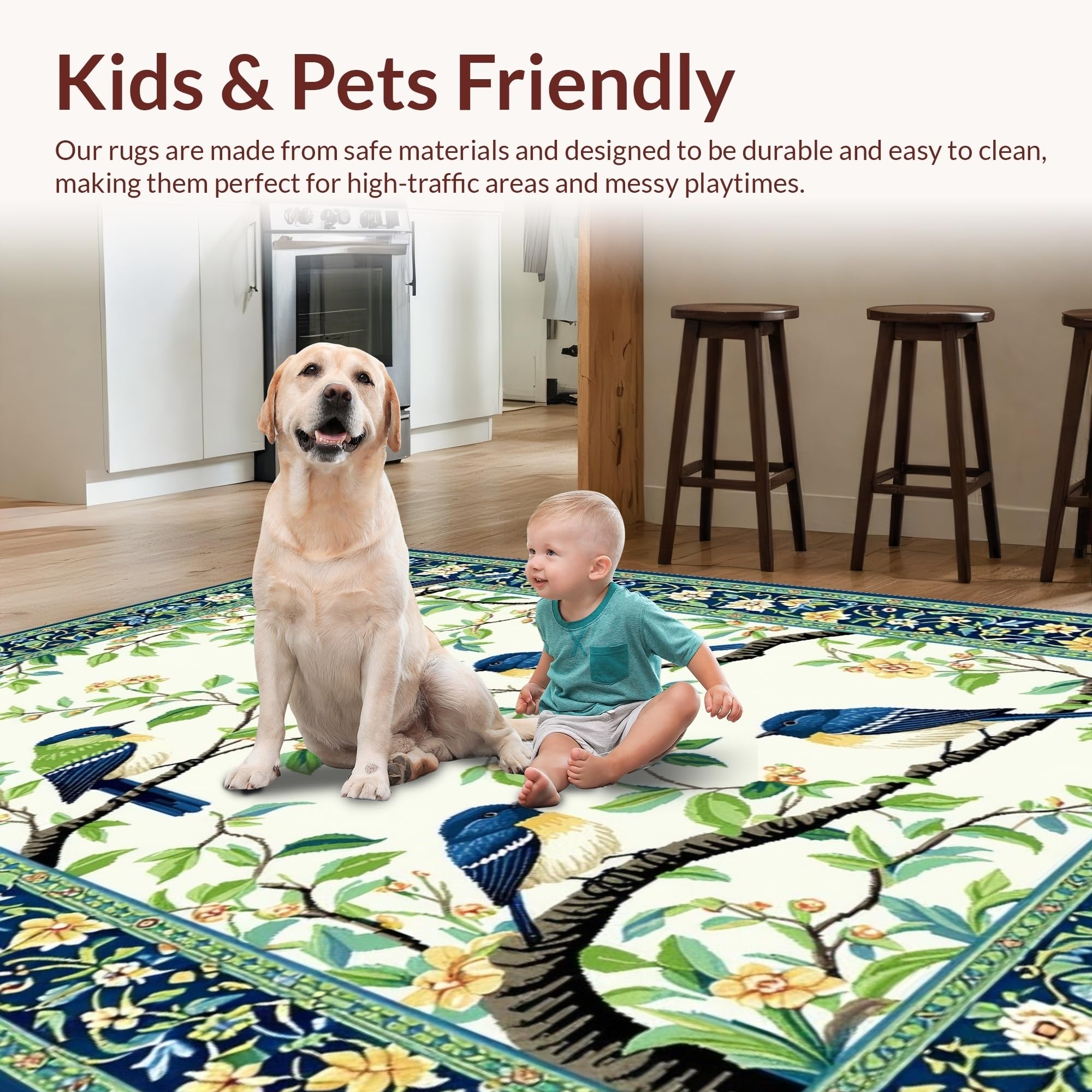 Ultra Soft Area Rug, Non Slip, Stain Resistant, Washable Area Rugs for Living Room, Bedroom, Dynamic Nature Pattern in Bright Tones(Ivory) Overview: