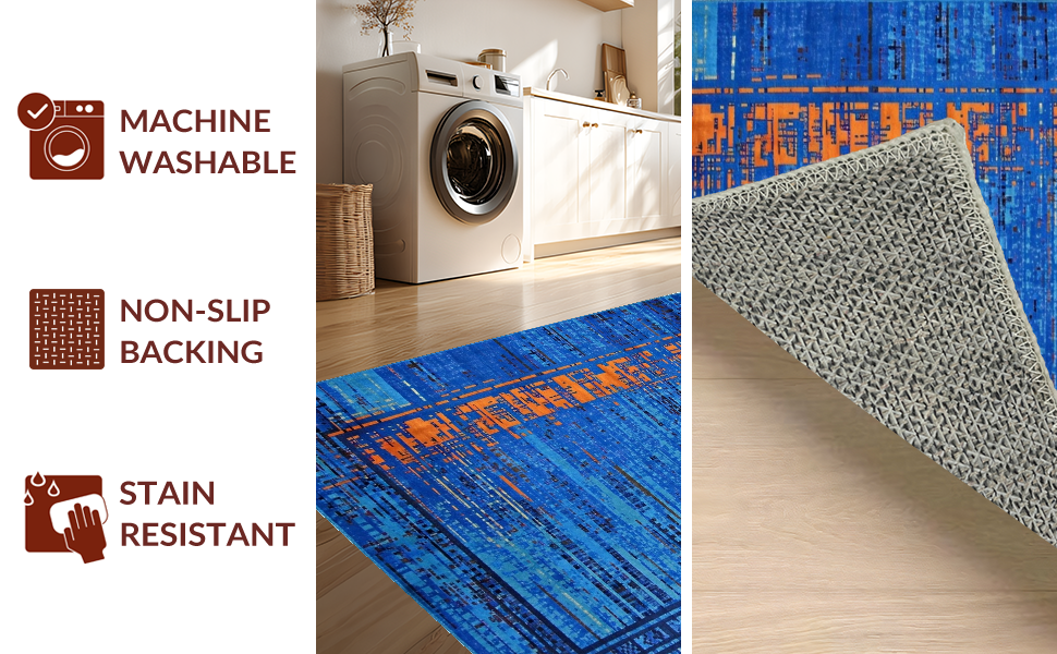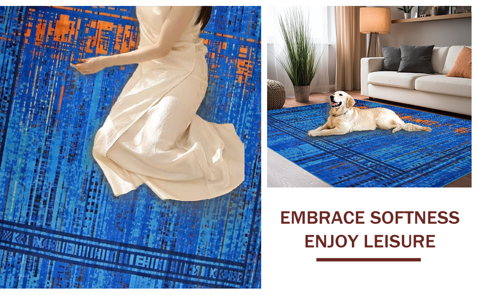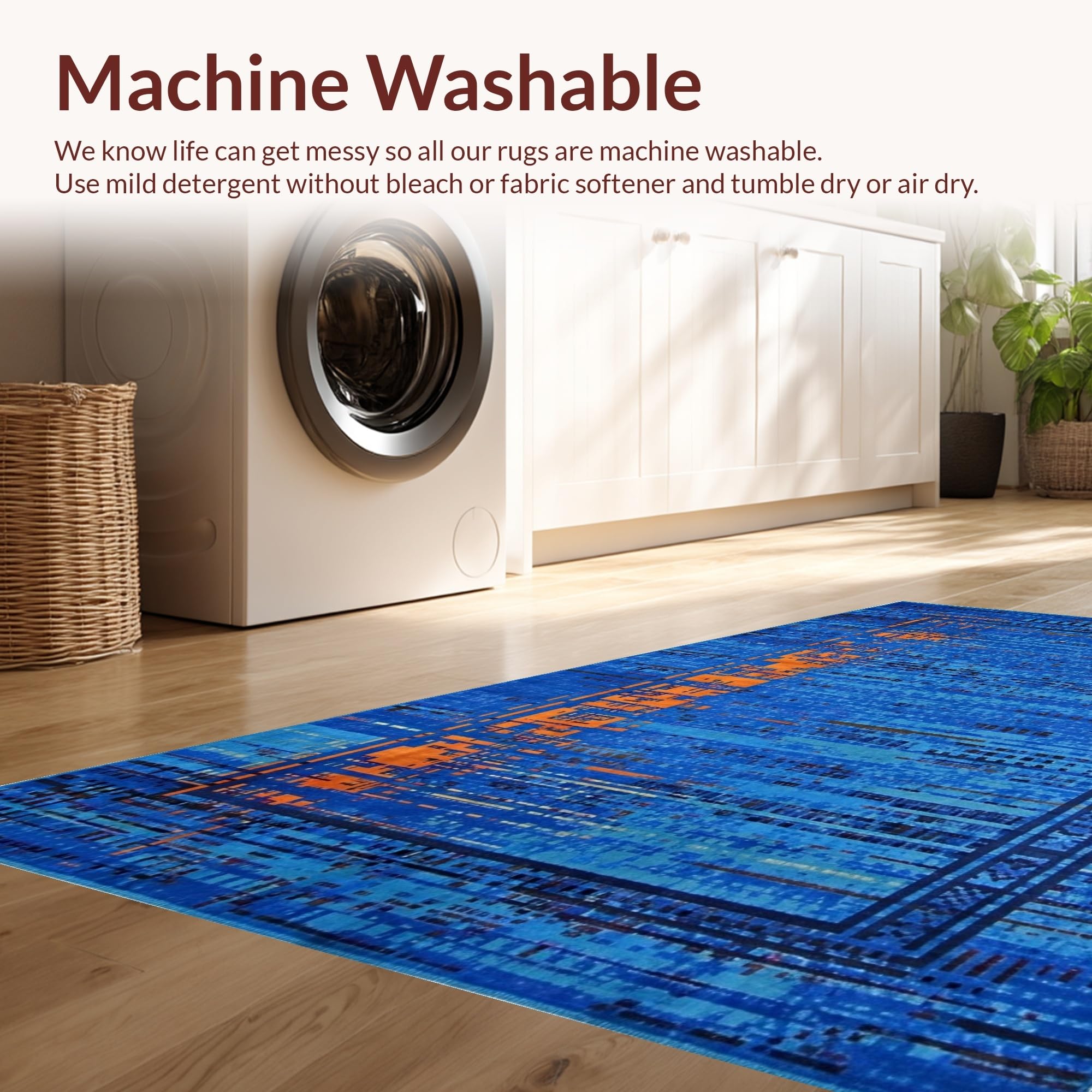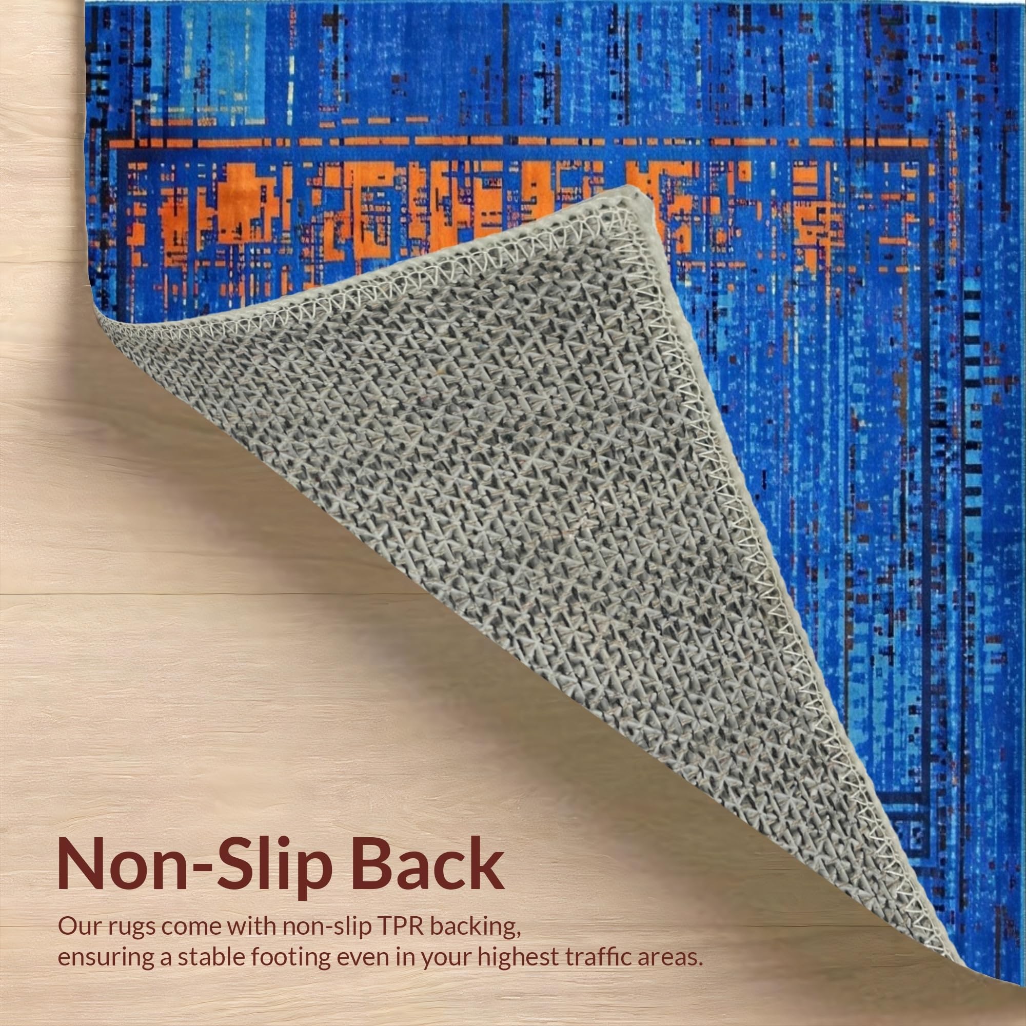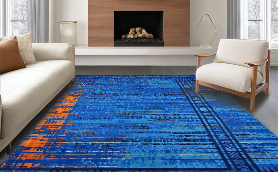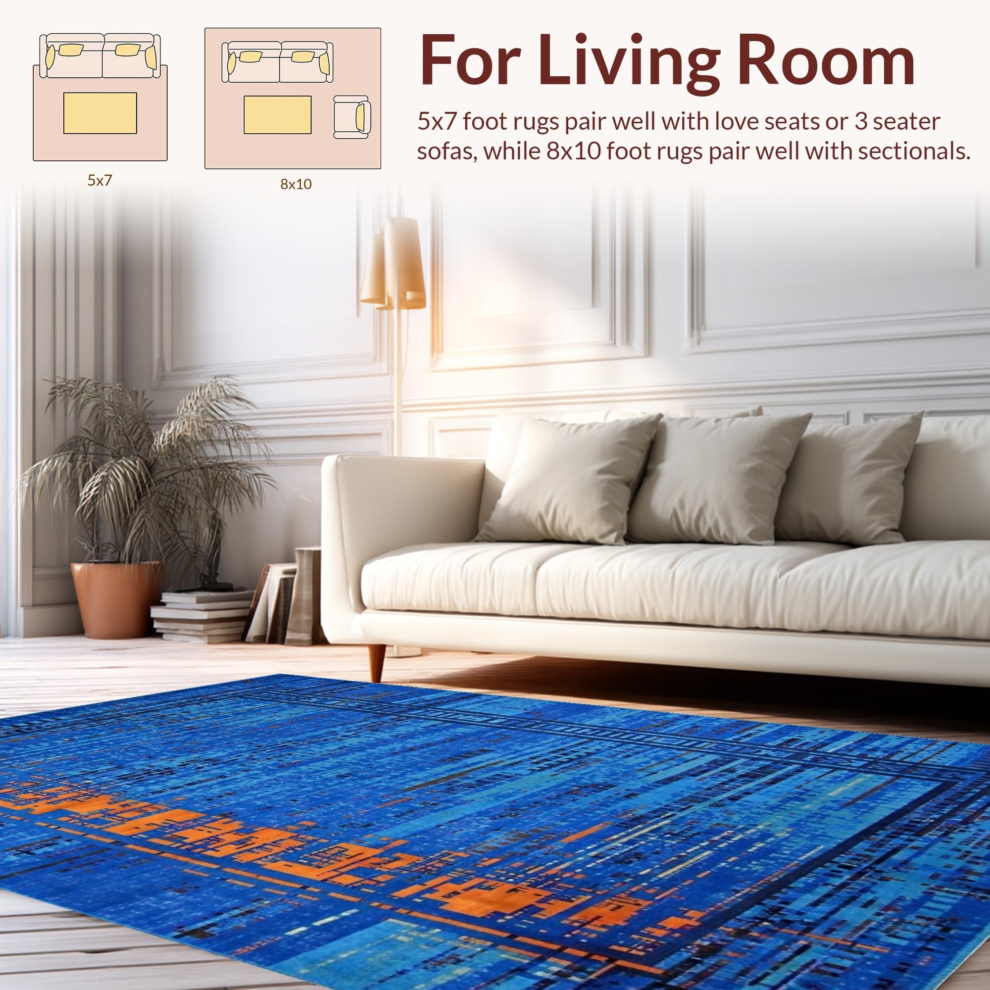 Ultra Soft Area Rug, Non Slip, Stain Resistant, Washable Area Rugs for Living Room, Bedroom, Dynamic Orange Blue Abstract(Blue) Overview: