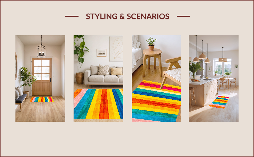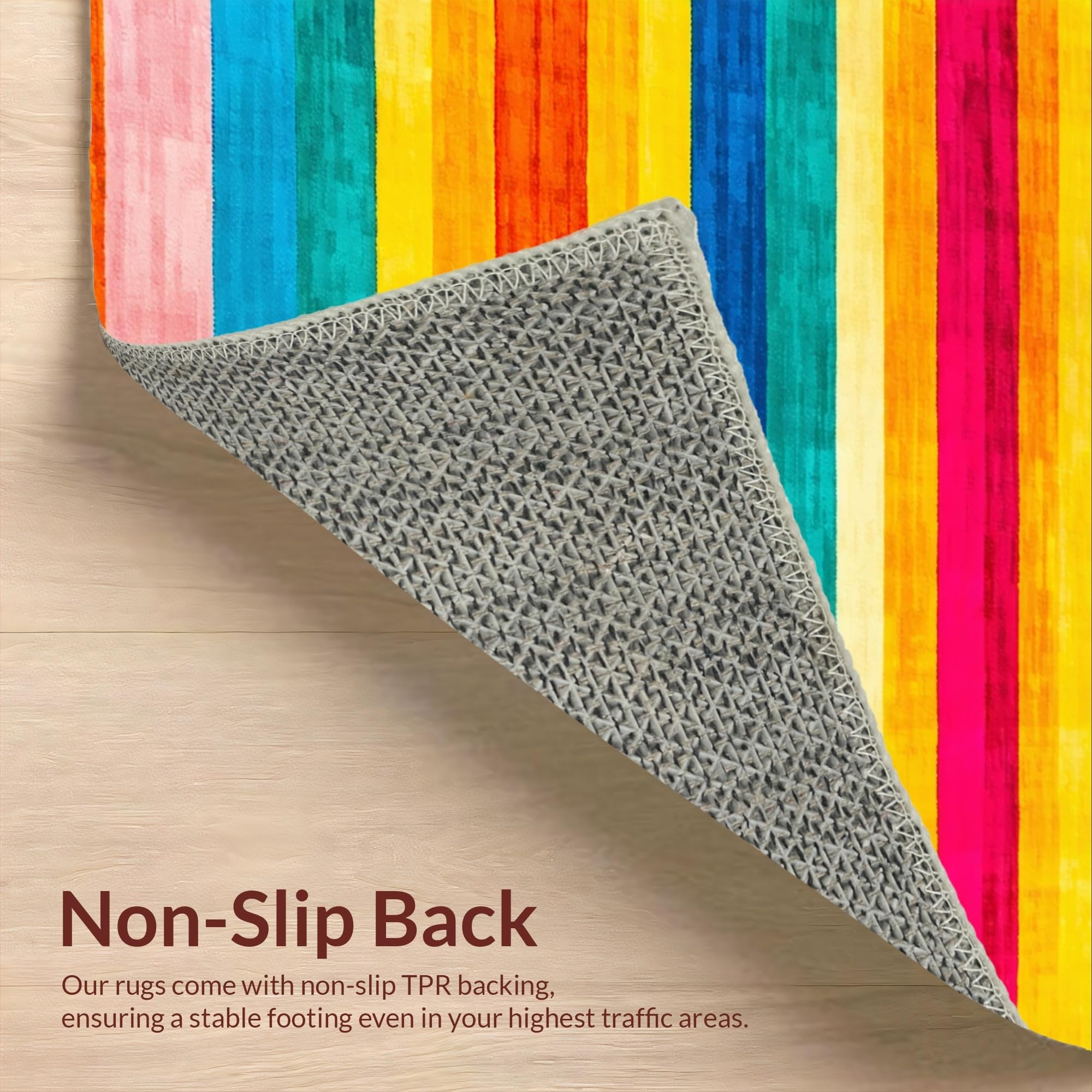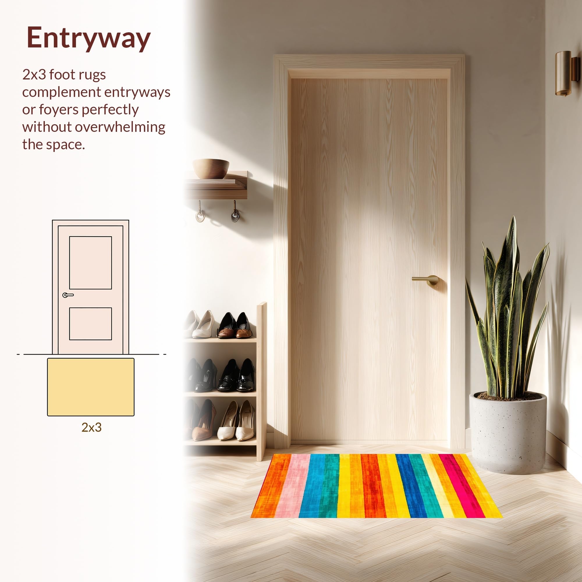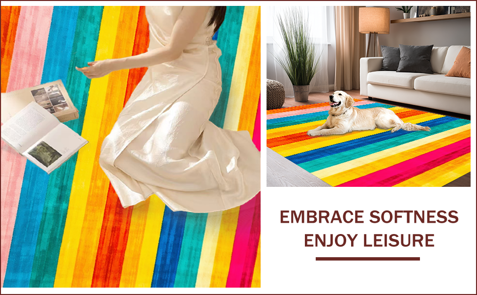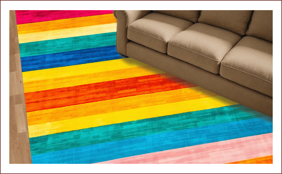 Ultra Soft Area Rug, Non Slip, Stain Resistant, Washable Area Rugs for Living Room, Bedroom, Dynamic Rainbow-Toned Aesthetic(Yellow) Overview: