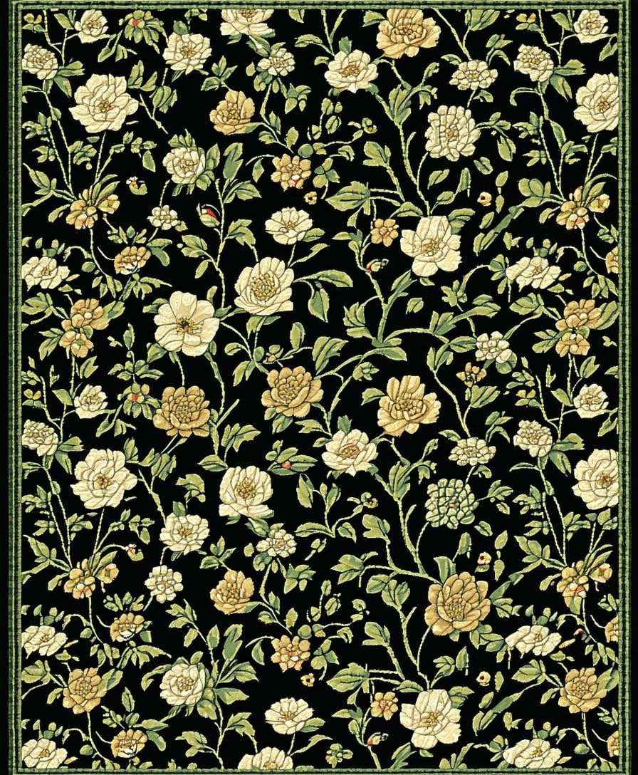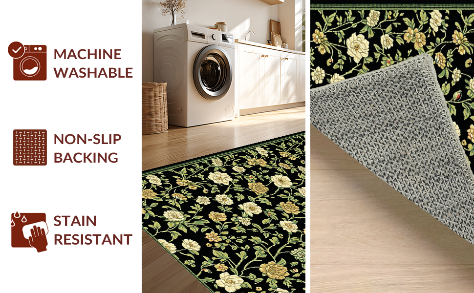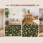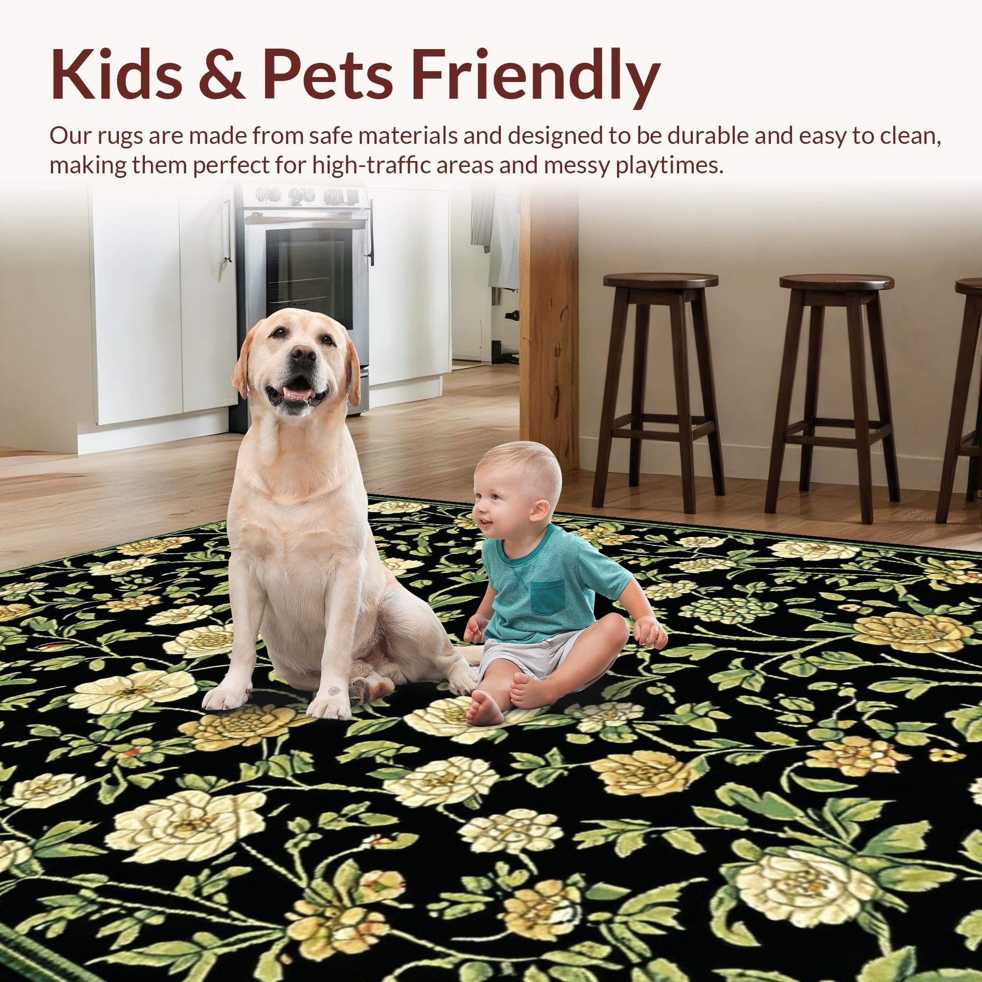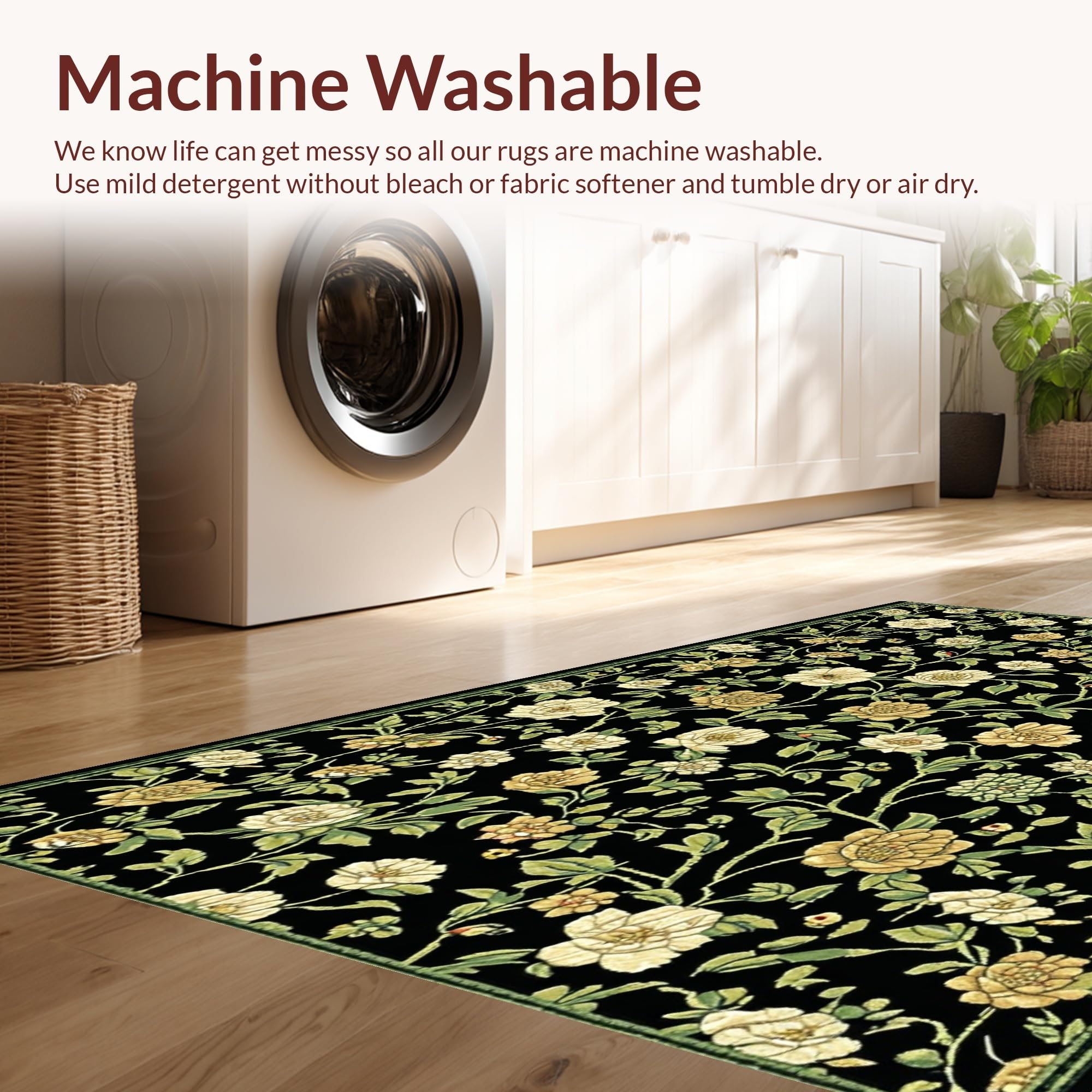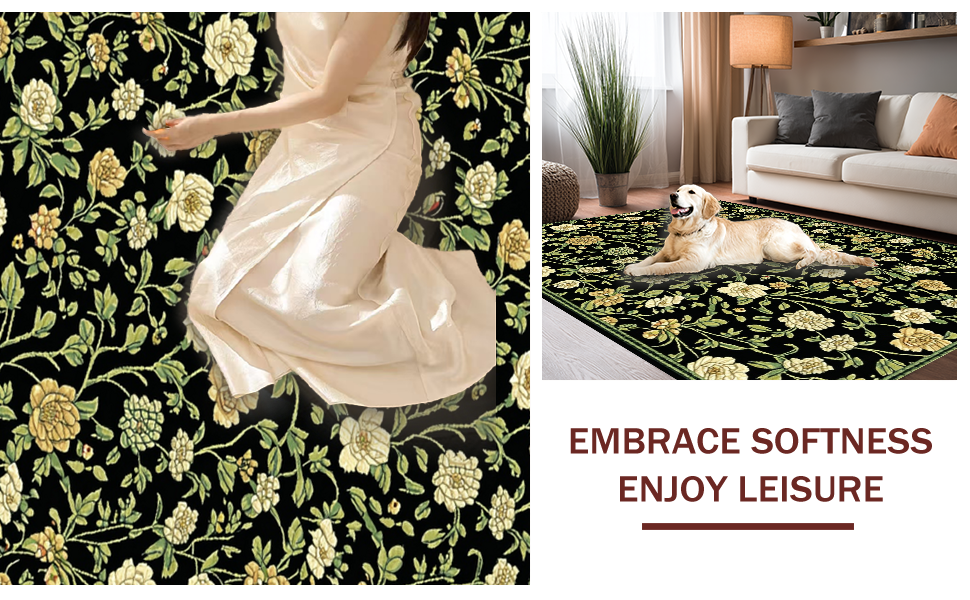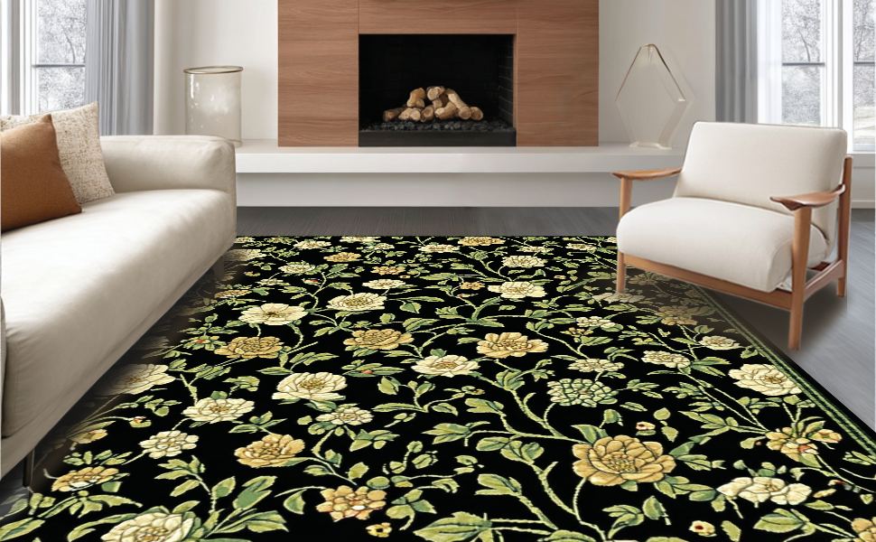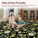 Ultra Soft Area Rug, Non Slip, Stain Resistant, Washable Area Rugs for Living Room, Bedroom, Dynamic Retro Flower Aesthetic(Black) Overview: