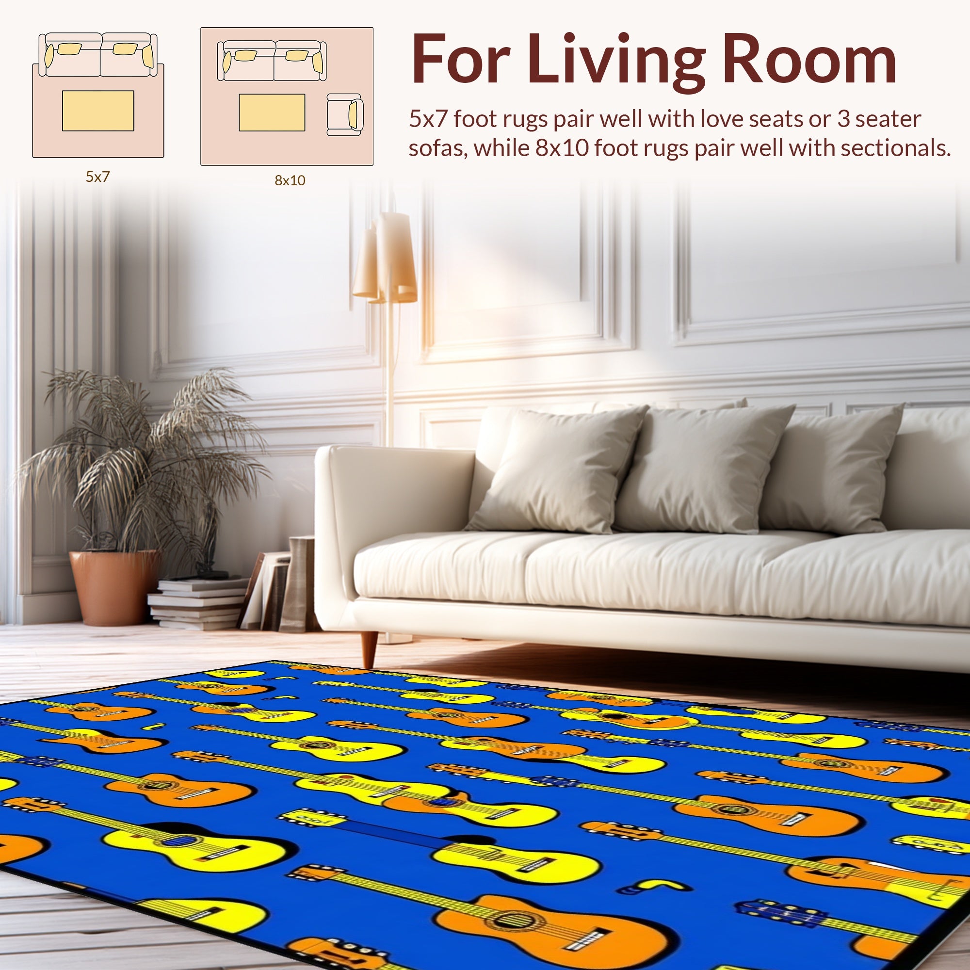 Flatwoven High Traffic Area Rug, Dynamic Strumming Inspiration, Non Slip, Stain Resistant, Washable Area Rugs for Living Room, Bedroom (Blue) Overview: