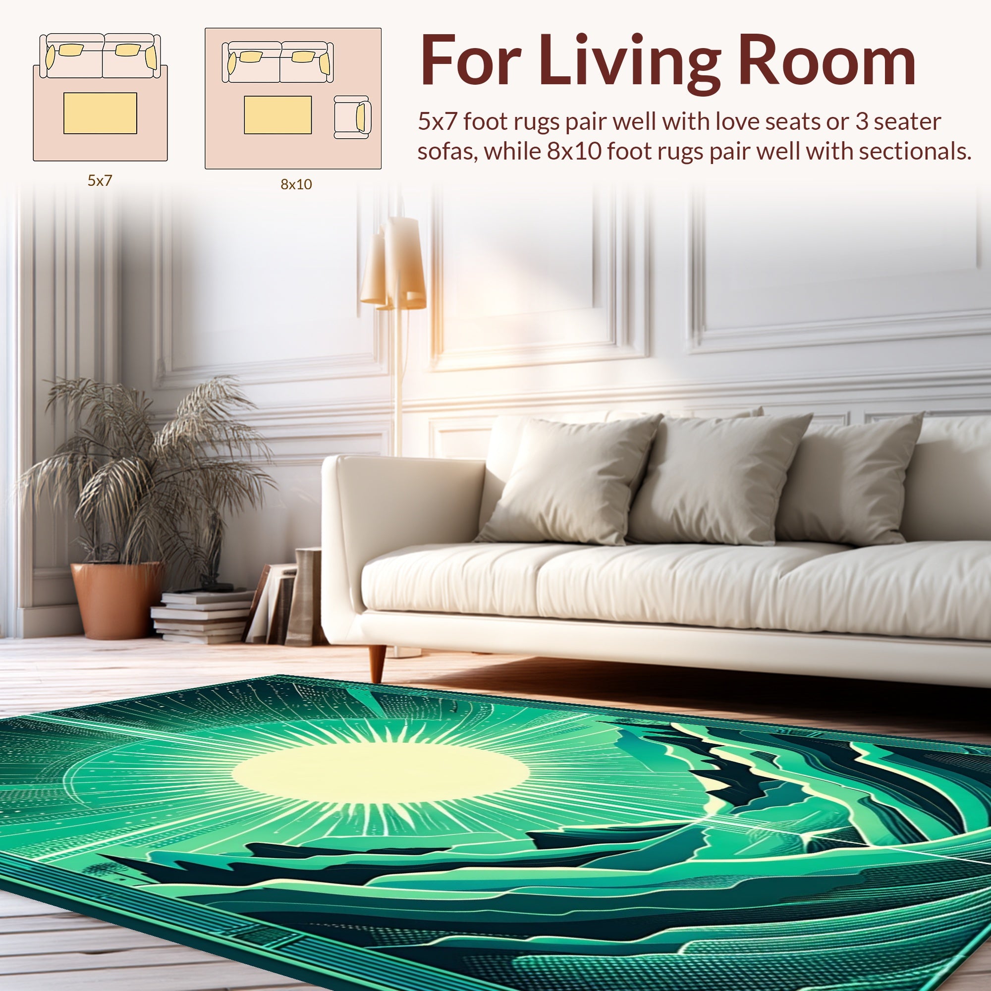 Flatwoven High Traffic Area Rug, Dynamic Teal and Green, Non Slip, Stain Resistant, Washable Area Rugs for Living Room, Bedroom (Green) Overview: