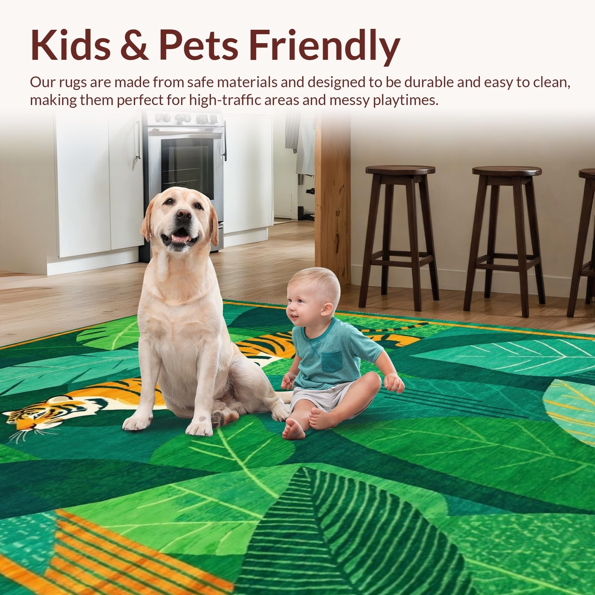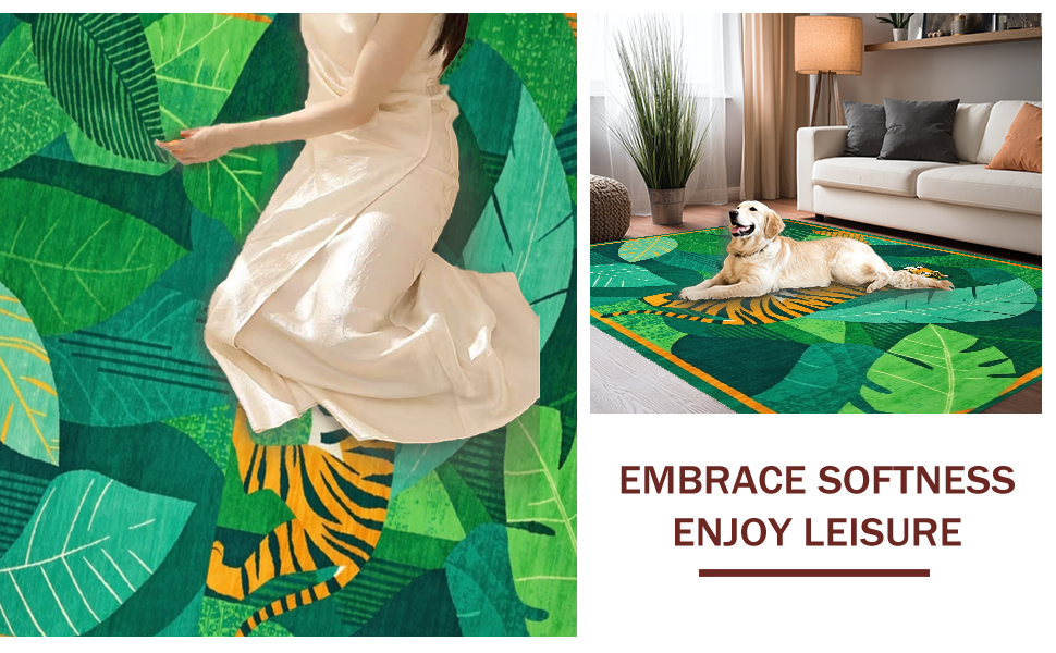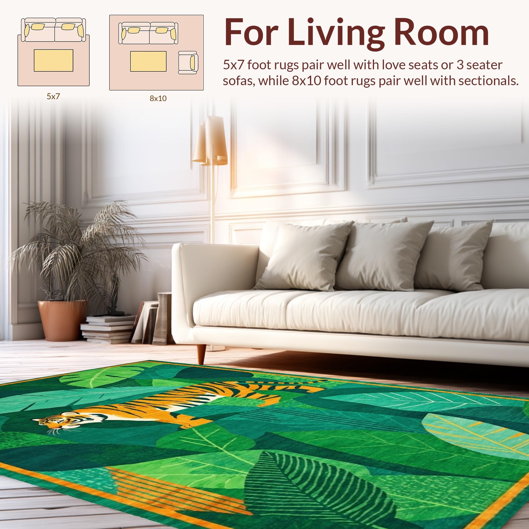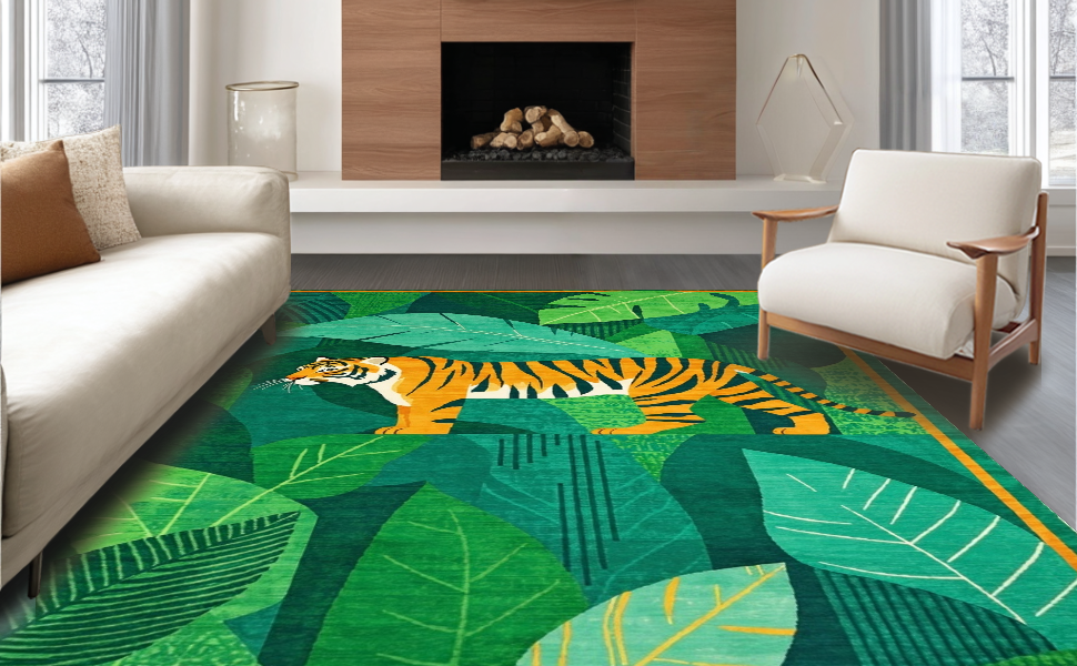 Ultra Soft Area Rug, Non Slip, Stain Resistant, Washable Area Rugs for Living Room, Bedroom, Dynamic Teal and Orange Fusion(Green) Overview: