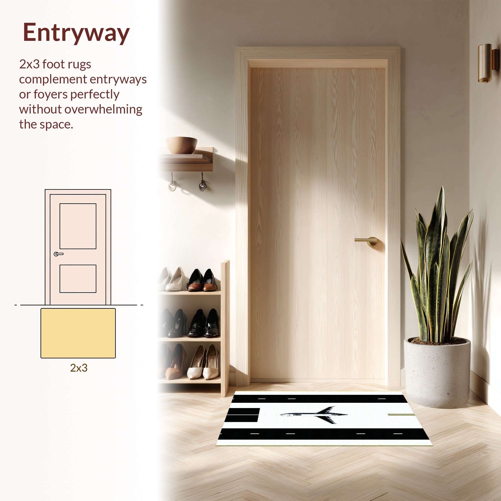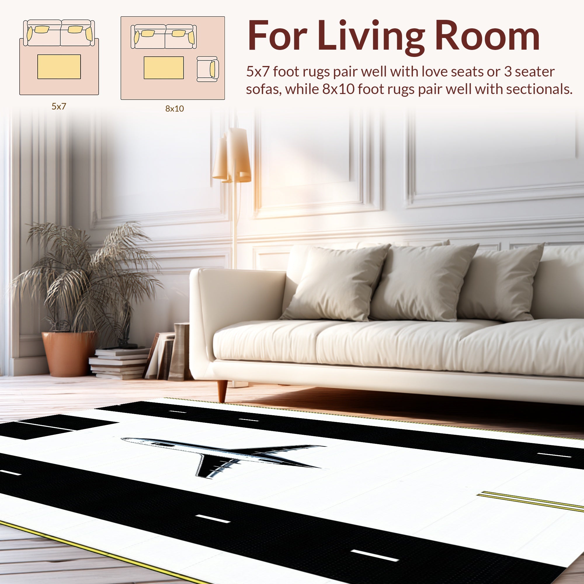 Flatwoven High Traffic Area Rug, Dynamic Track Art, Non Slip, Stain Resistant, Washable Area Rugs for Living Room, Bedroom (Black) Overview: