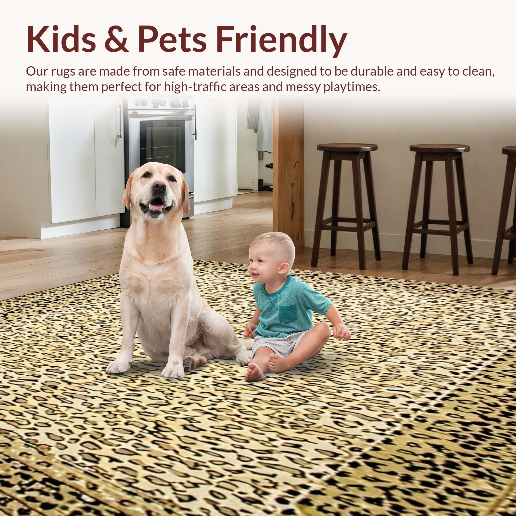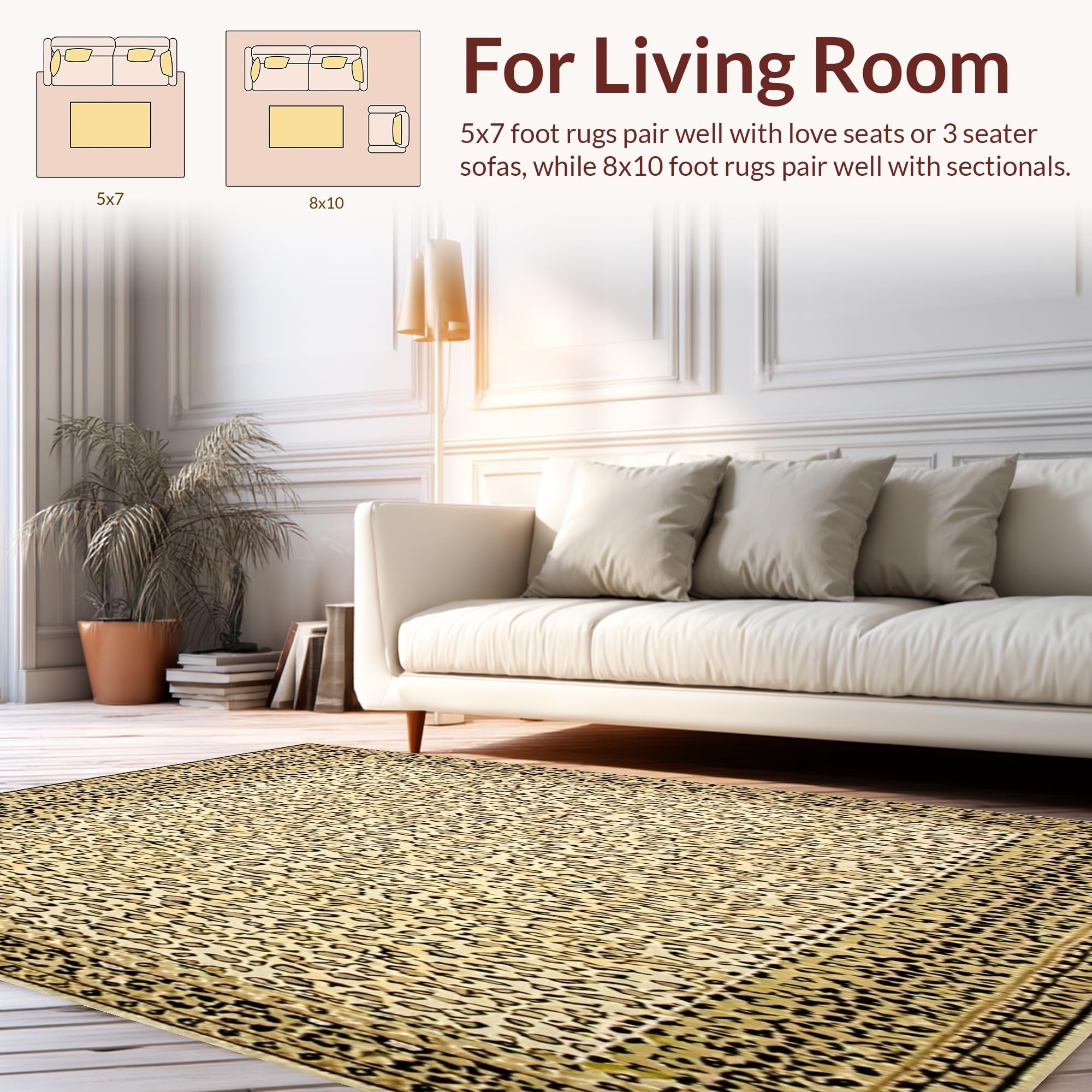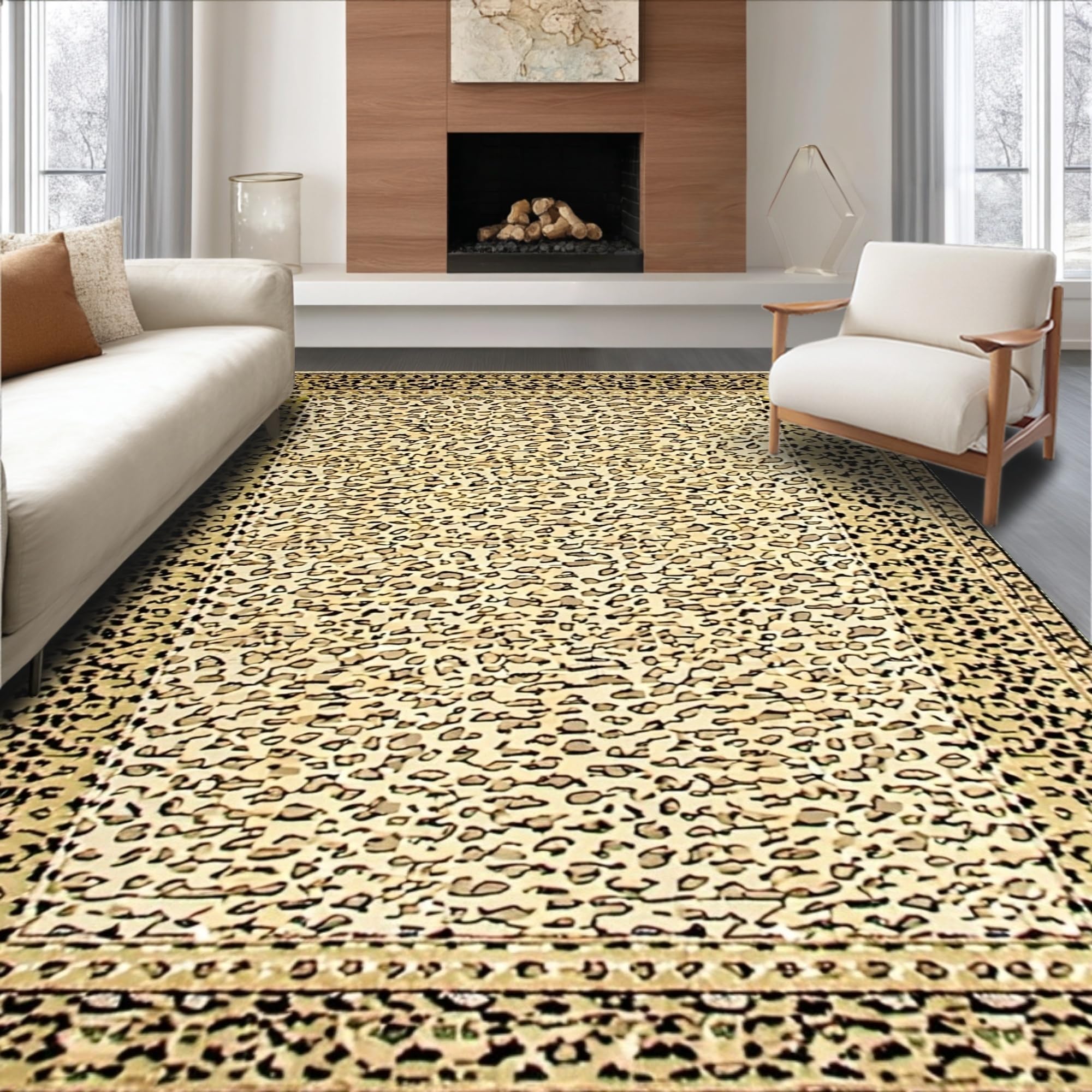 Ultra Soft Area Rug, Non Slip, Stain Resistant, Washable Area Rugs for Living Room, Bedroom, Dynamic Wild Animal Fabric Be Strong Beige Leopard Print Area(Beige) Overview: