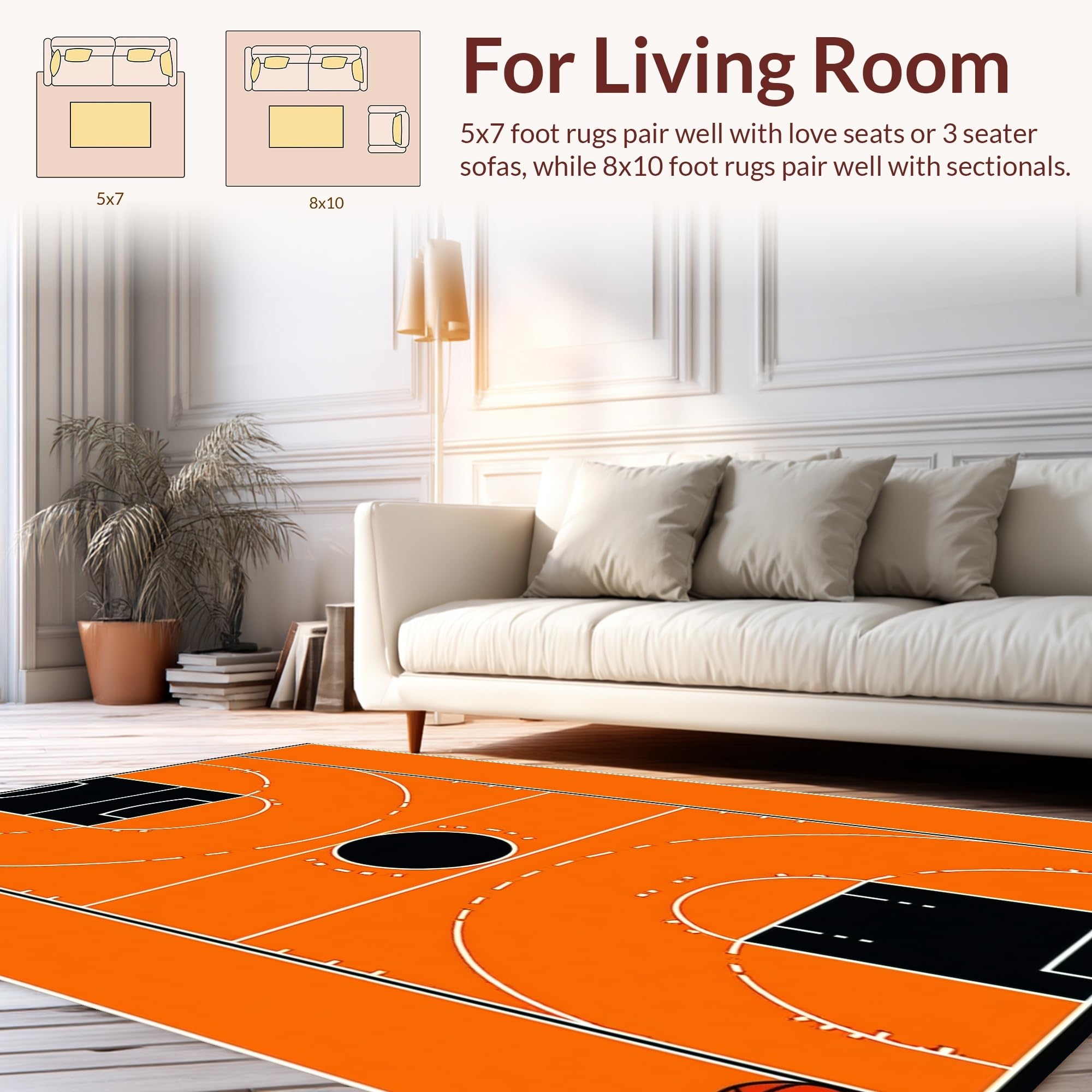 Ultra Soft Area Rug, Non Slip, Stain Resistant, Washable Area Rugs for Living Room, Bedroom, Dynamic Youthful Athletic Aesthetic(Orange) Overview: