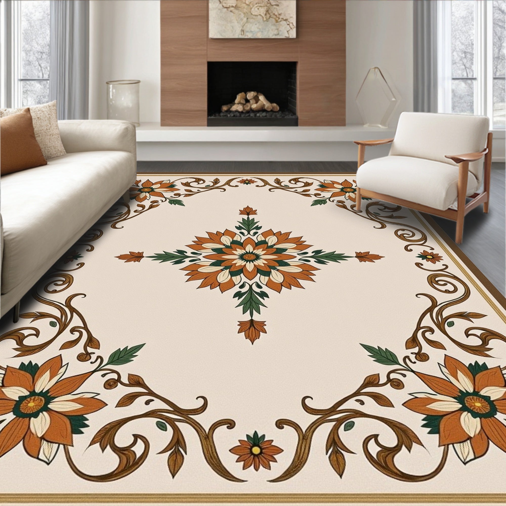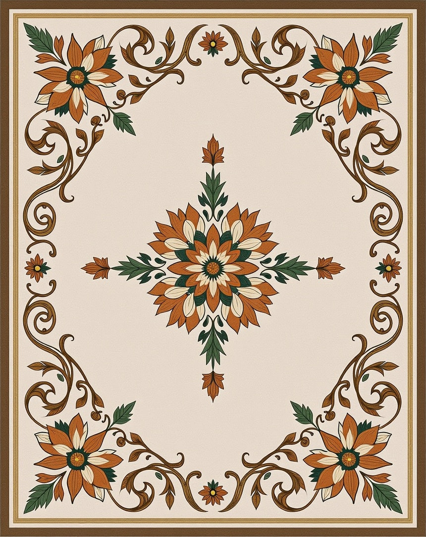 Flatwoven High Traffic Area Rug, Dynasty Floral Blossom, Non Slip, Stain Resistant, Washable Area Rugs for Living Room, Bedroom (Brown) Overview: