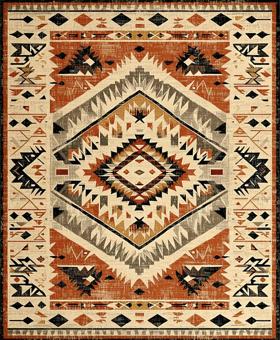 Earth Tone Southwestern With Interlocking And Angular Shapes(Brown)