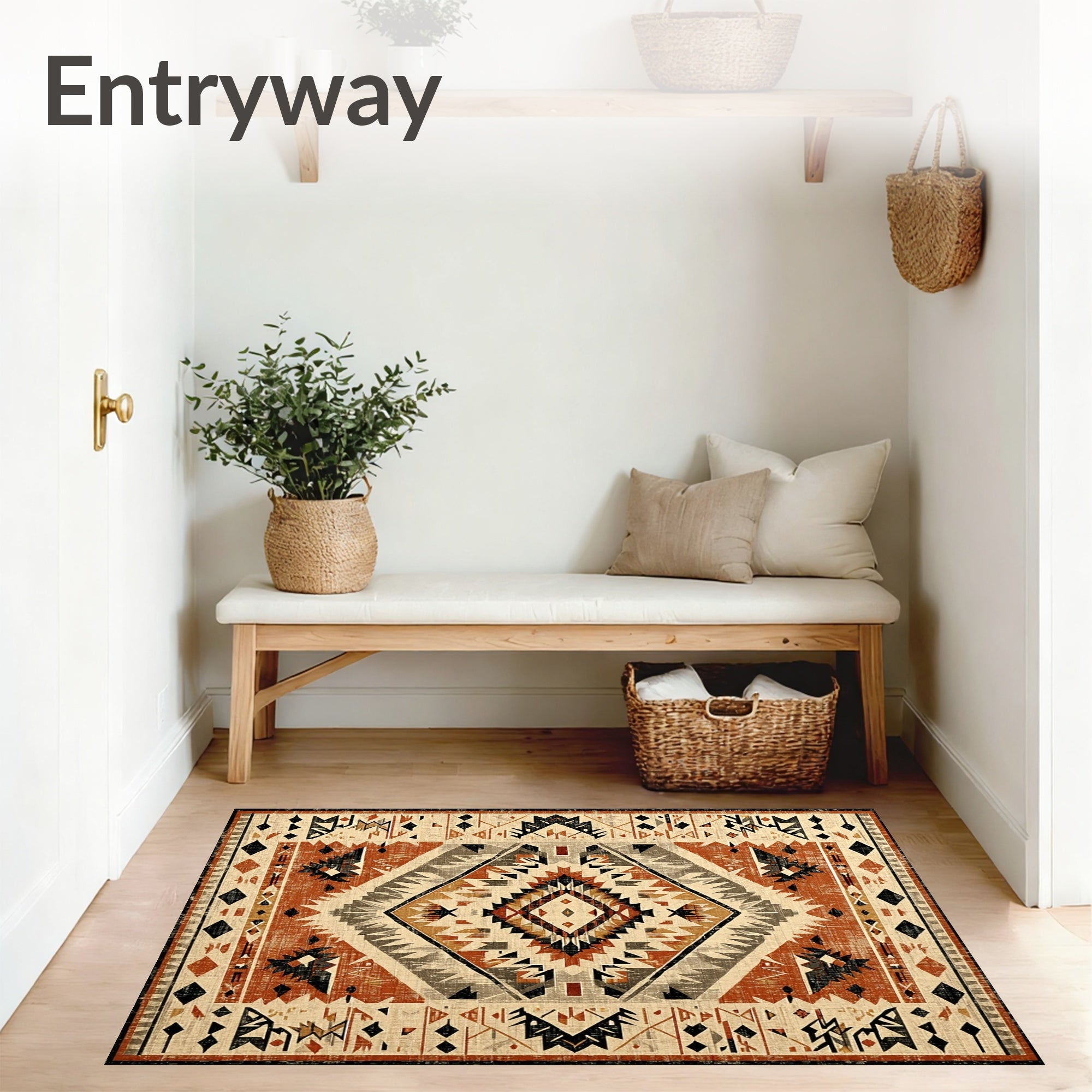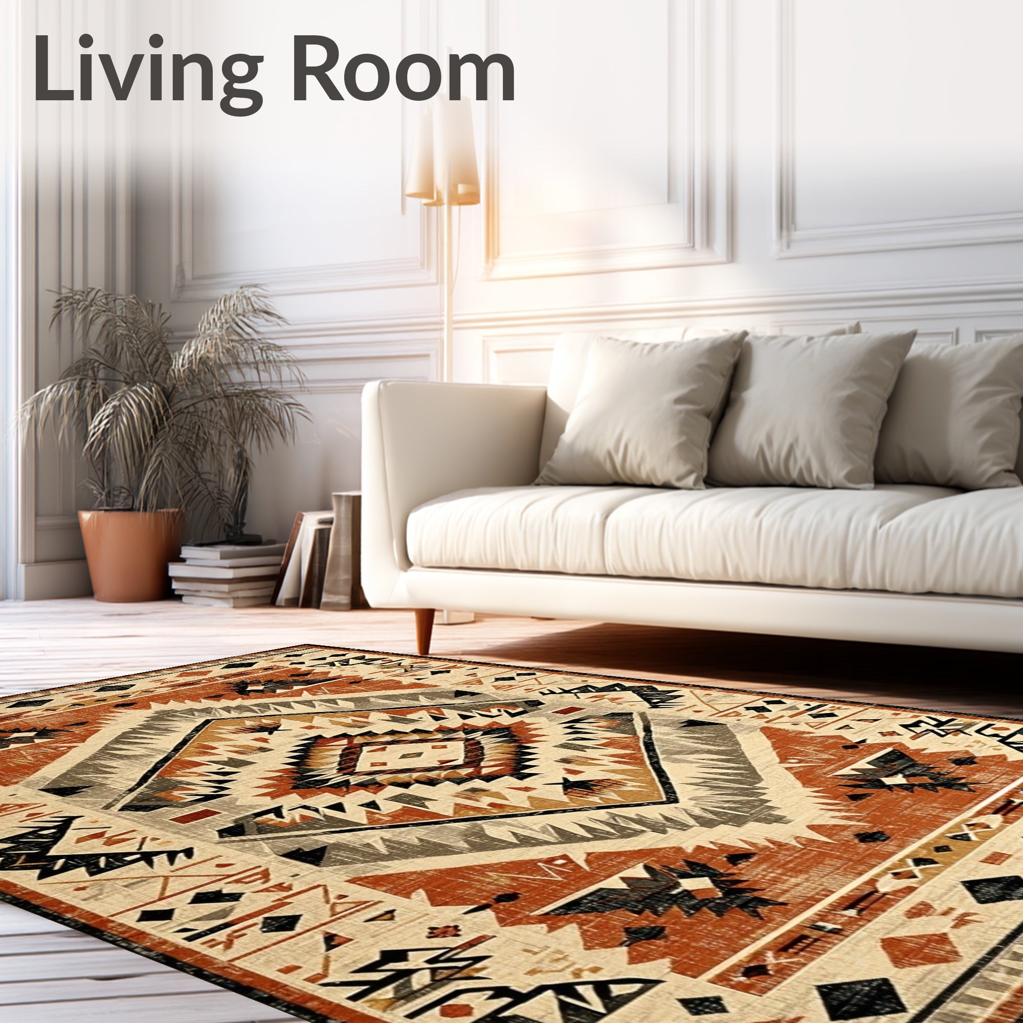 Flatwoven High Traffic Area Rug, Earth Tone Southwestern With Interlocking And Angular Shapes, Non Slip, Stain Resistant, Washable Area Rugs for Living Room, Bedroom (Brown) Overview: