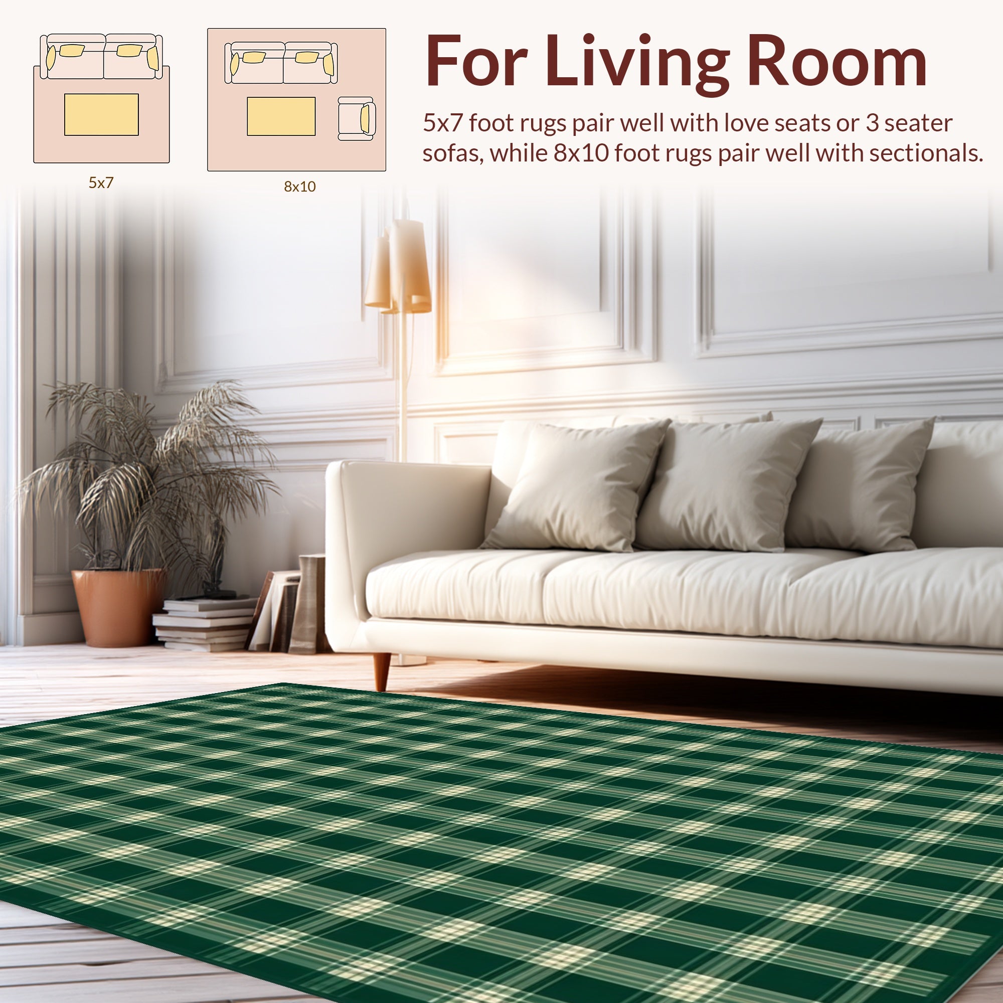 Flatwoven High Traffic Area Rug, Earthy Multi Tonal Design, Non Slip, Stain Resistant, Washable Area Rugs for Living Room, Bedroom (Green) Overview: