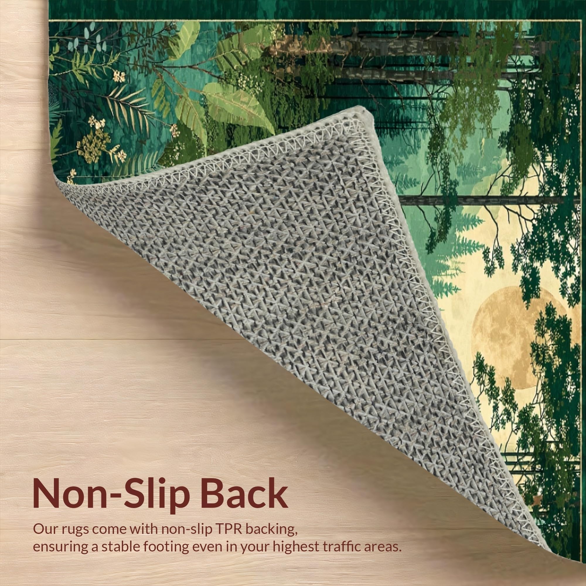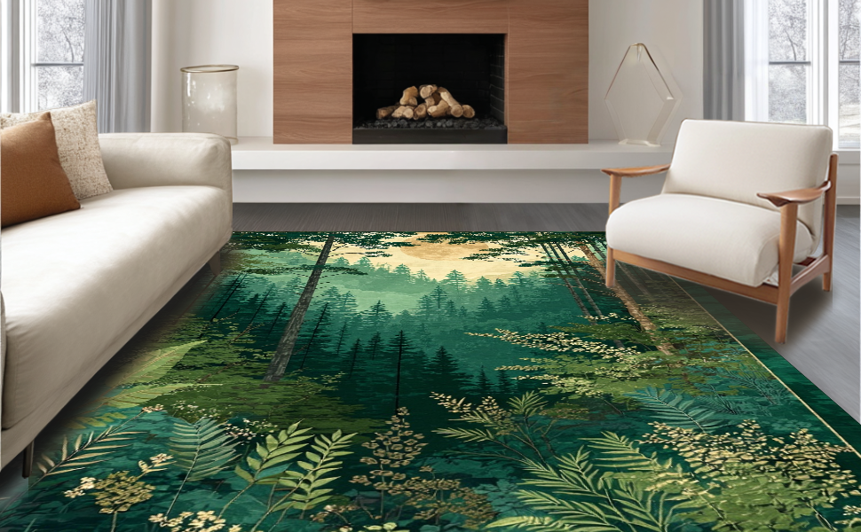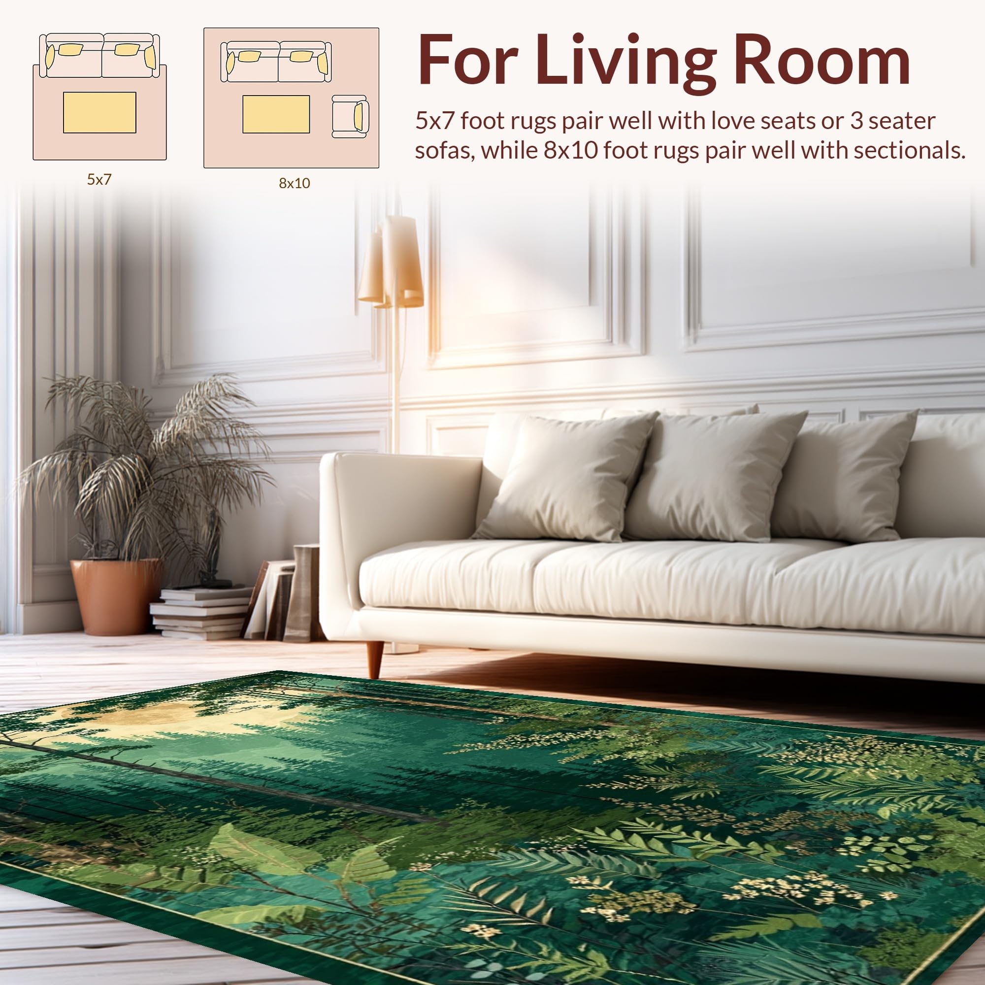 Ultra Soft Area Rug, Non Slip, Stain Resistant, Washable Area Rugs for Living Room, Bedroom, Earthy Rustic Symmetrical Elements(Green) Overview: