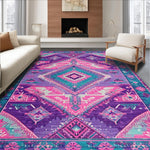 Ultra Soft Area Rug, Non Slip, Stain Resistant, Washable Area Rugs for Living Room, Bedroom, Eclectic Aztec Colorful Motif(Purple) Overview: