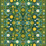 Eclectic Boho Area in Emerald Green with Golden Yellow Swirls(Green)