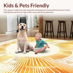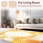 Ultra Soft Area Rug, Non Slip, Stain Resistant, Washable Area Rugs for Living Room, Bedroom, Eclectic Boho Area with Radiant Sunburst Design and Gentle Beige Gradients(Yellow) Overview: