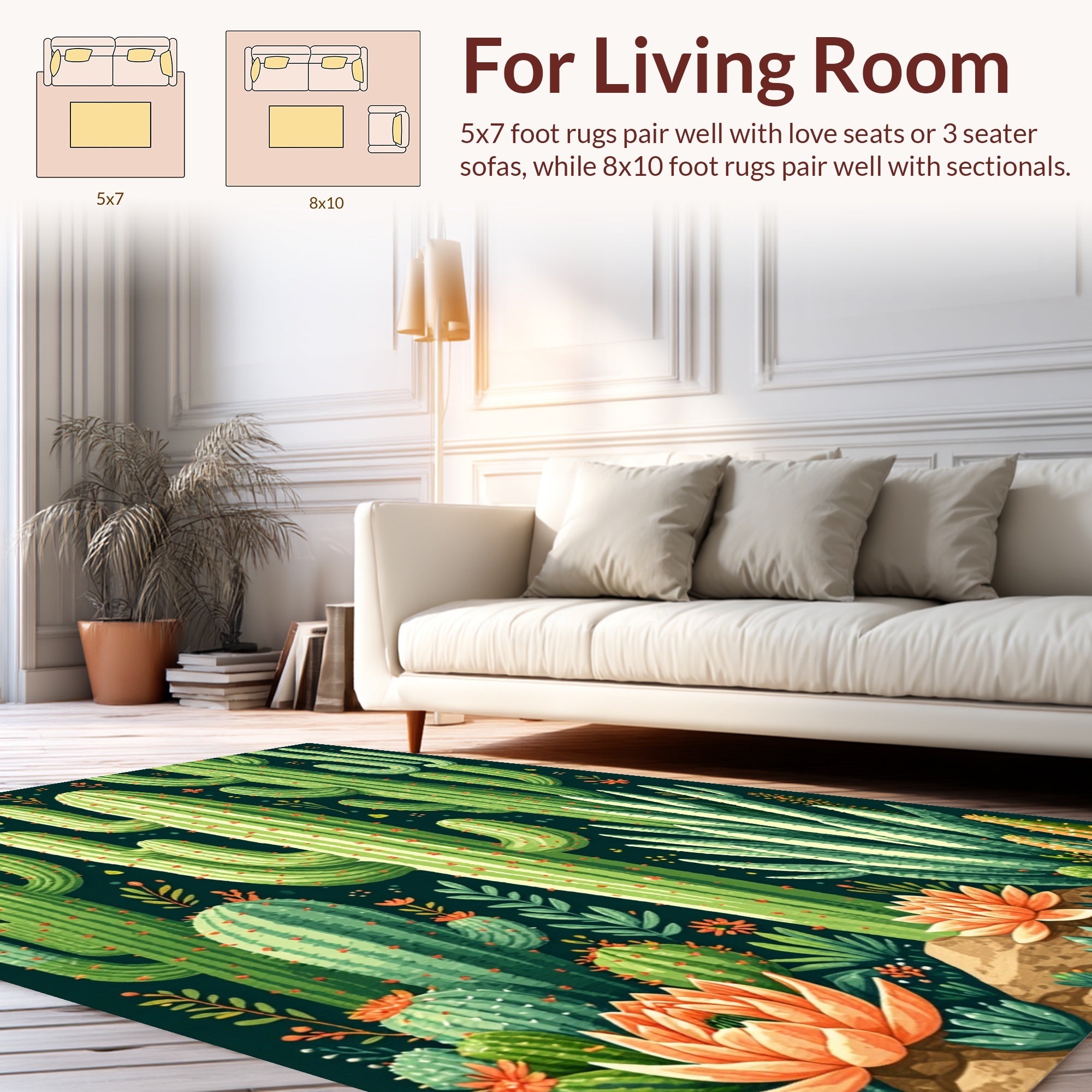 Flatwoven High Traffic Area Rug, Eclectic Bright Oasis Theme, Non Slip, Stain Resistant, Washable Area Rugs for Living Room, Bedroom (Green) Overview: