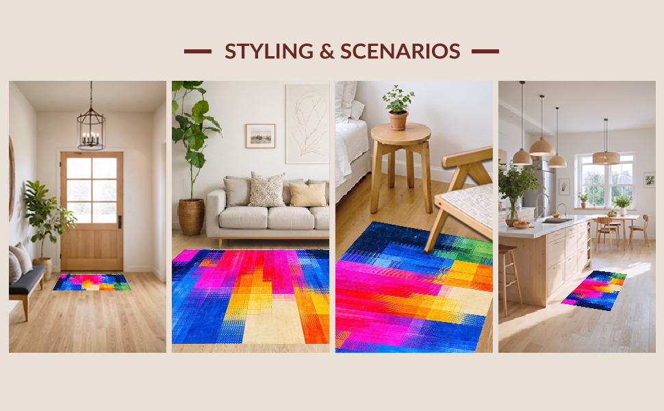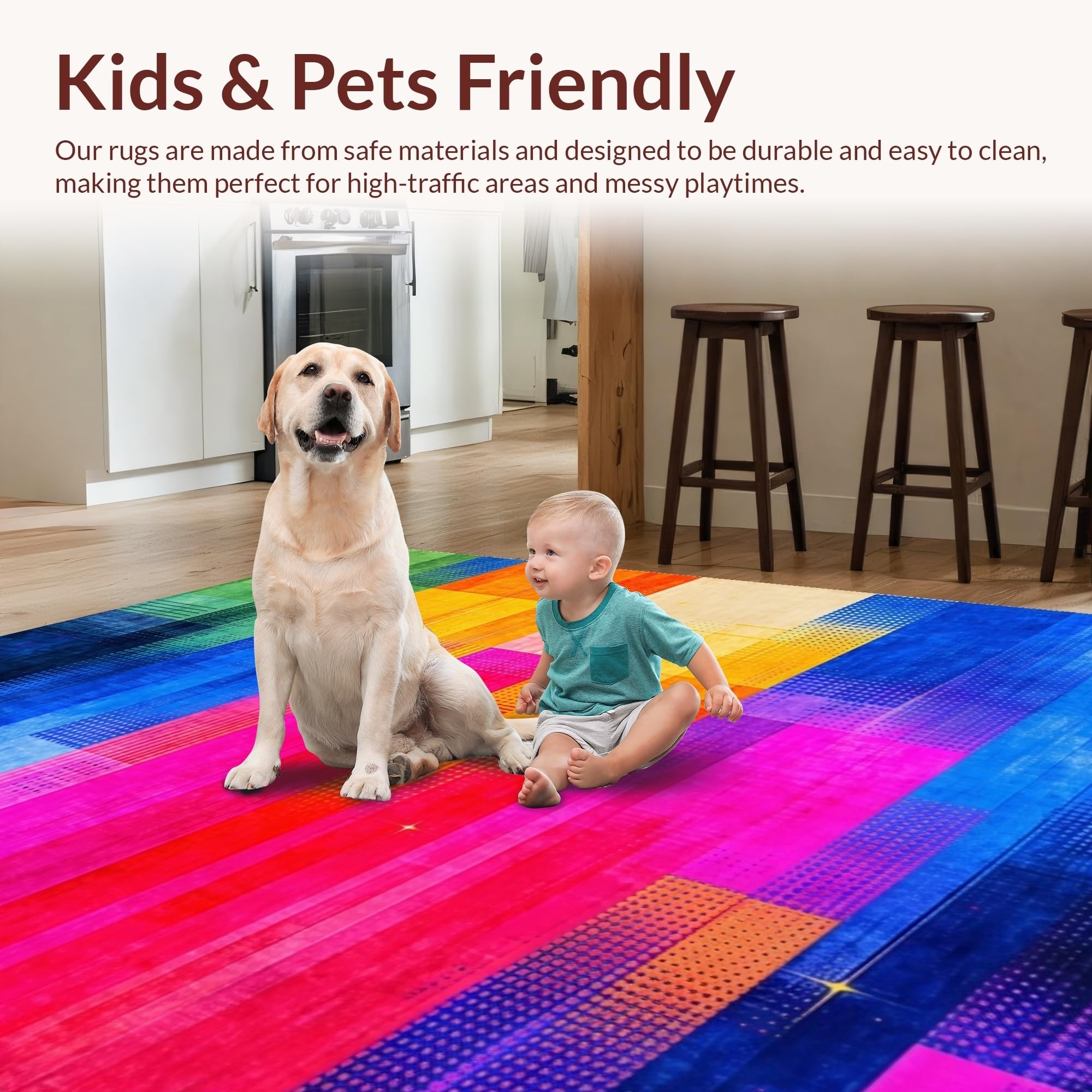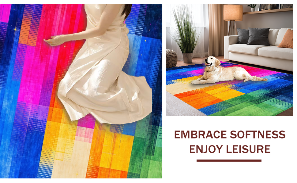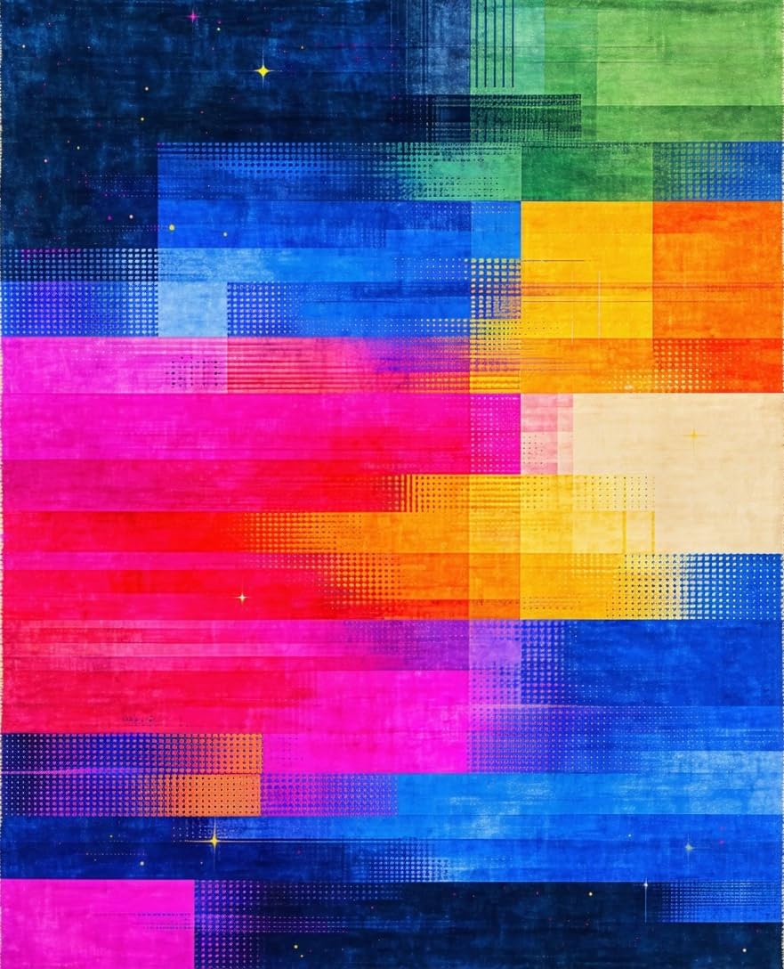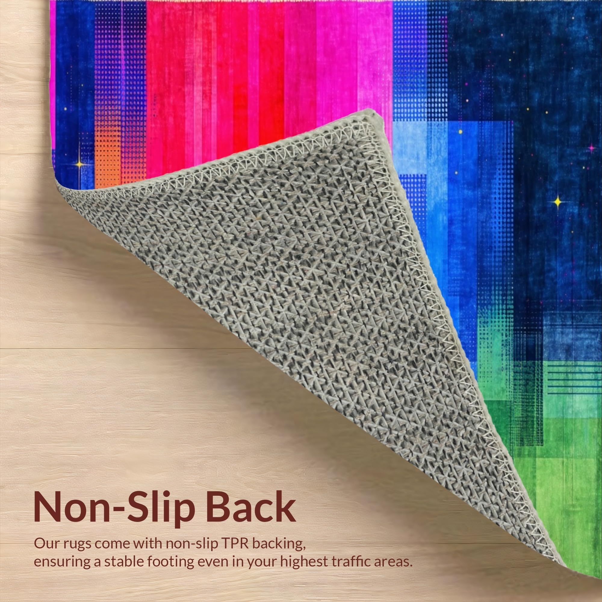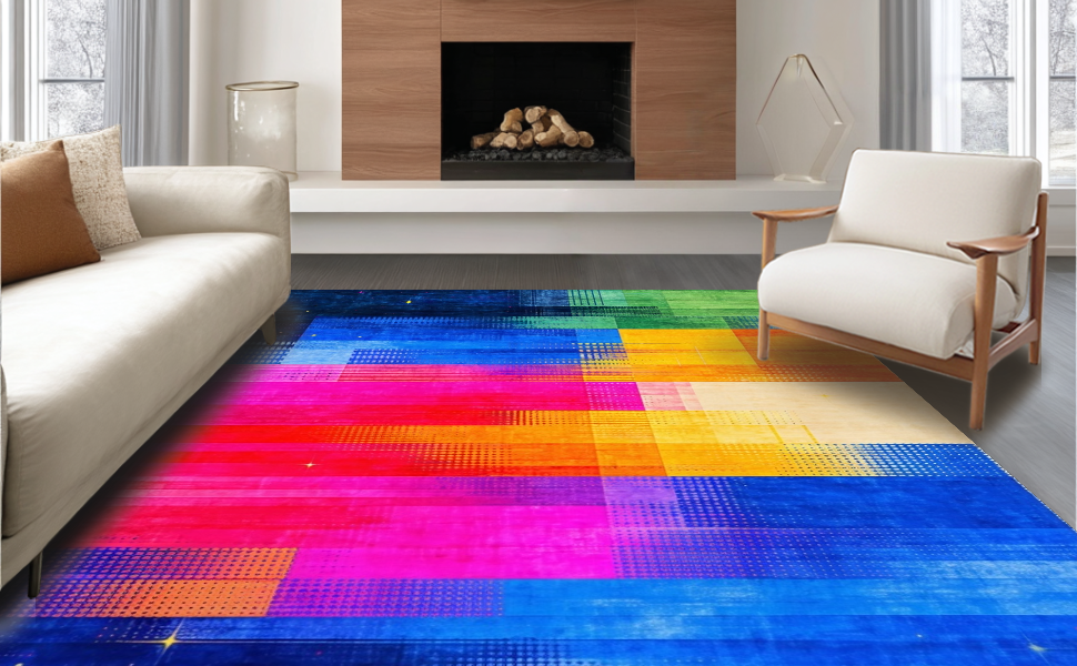 Ultra Soft Area Rug, Non Slip, Stain Resistant, Washable Area Rugs for Living Room, Bedroom, Eclectic Bright Palette Arrangement(Blue) Overview: