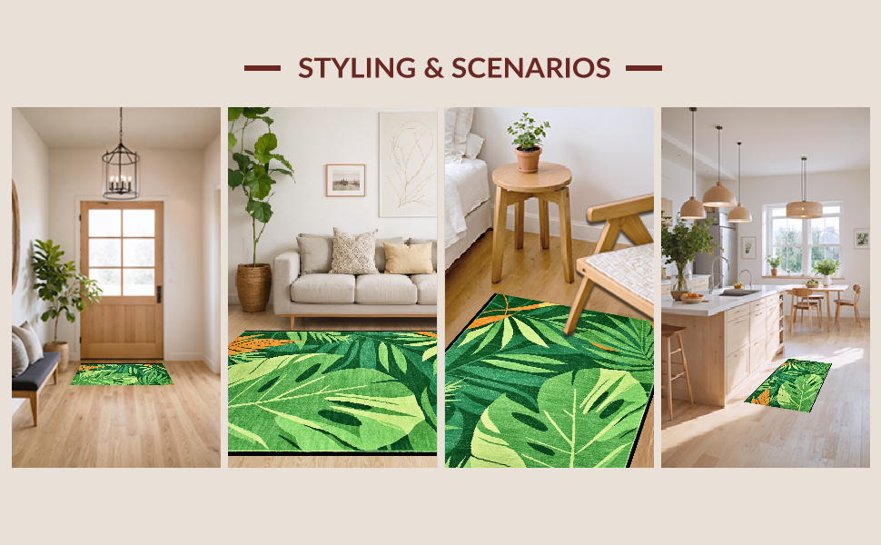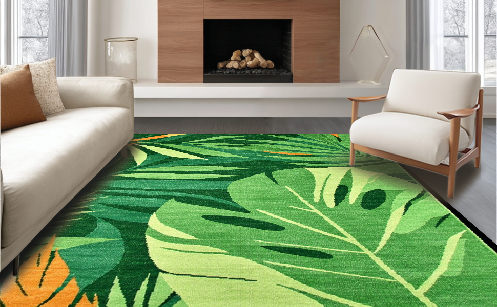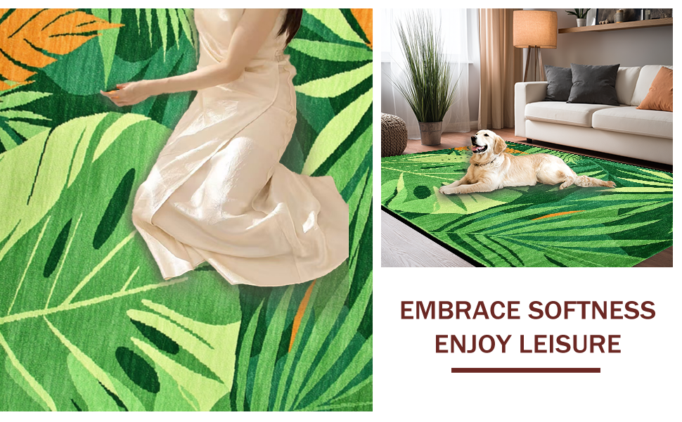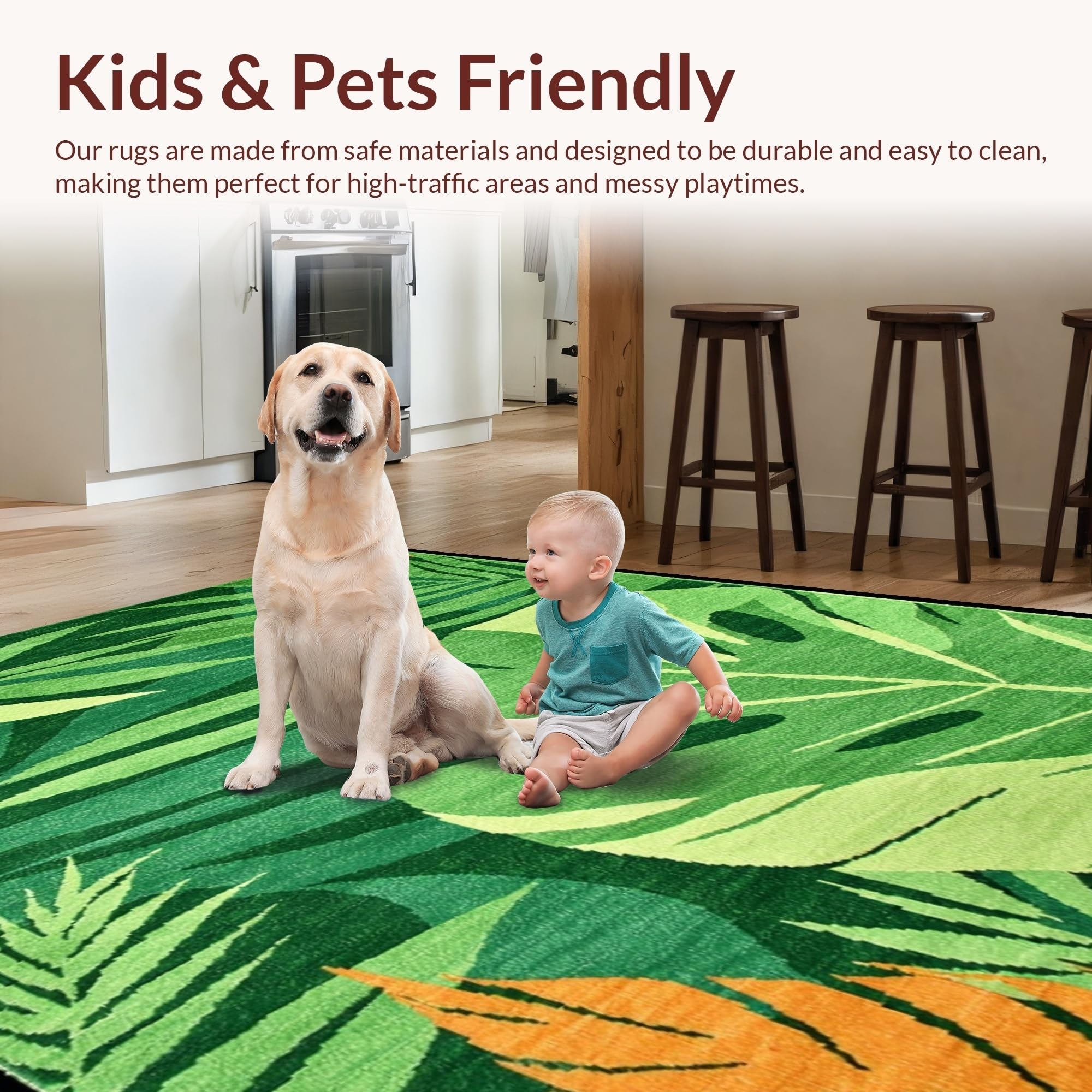 Ultra Soft Area Rug, Non Slip, Stain Resistant, Washable Area Rugs for Living Room, Bedroom, Eclectic Coastal Playful Aesthetic(Green) Overview: