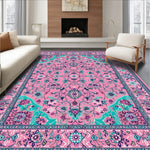 Flatwoven High Traffic Area Rug, Eclectic Colorful Bloom, Non Slip, Stain Resistant, Washable Area Rugs for Living Room, Bedroom (Pink) Overview:
