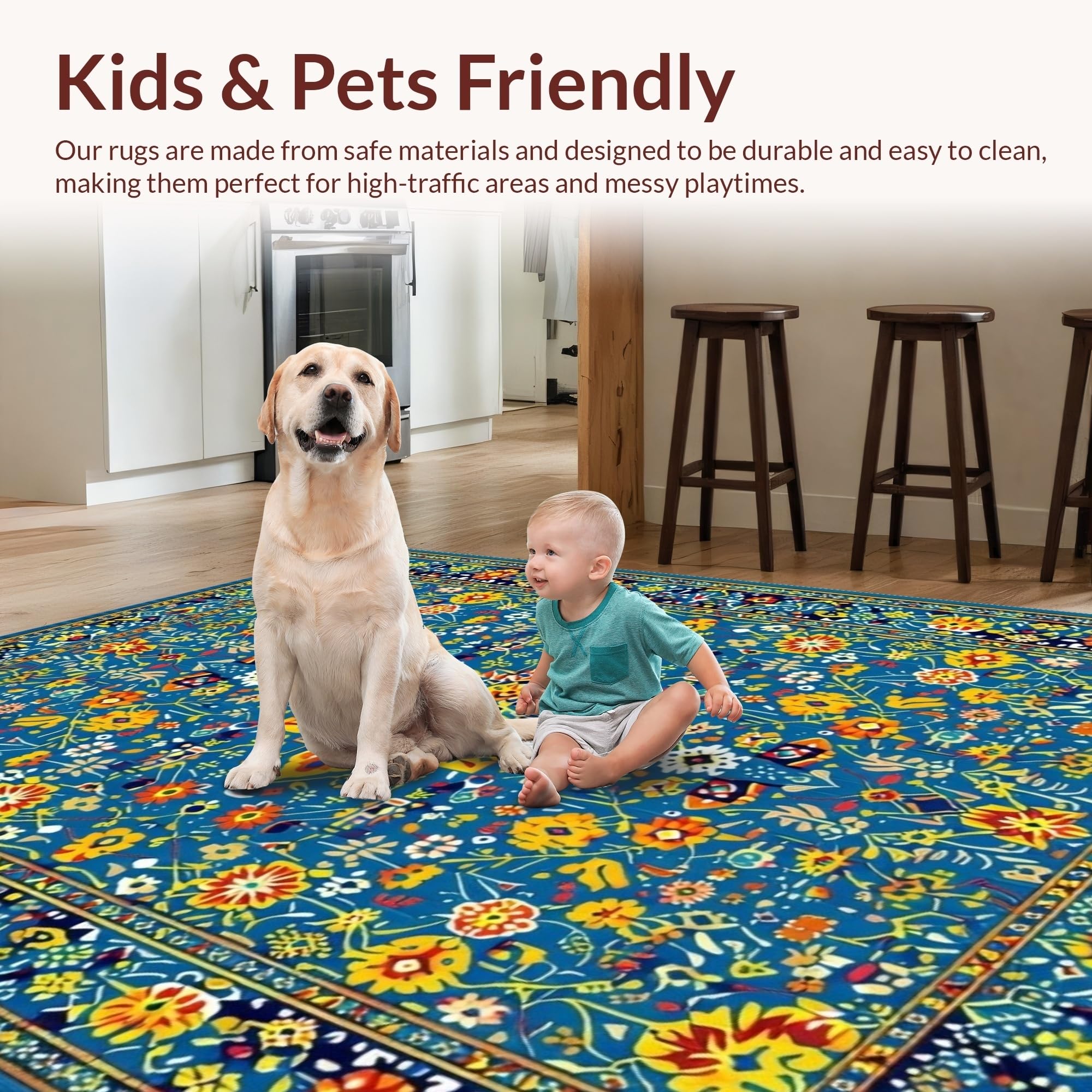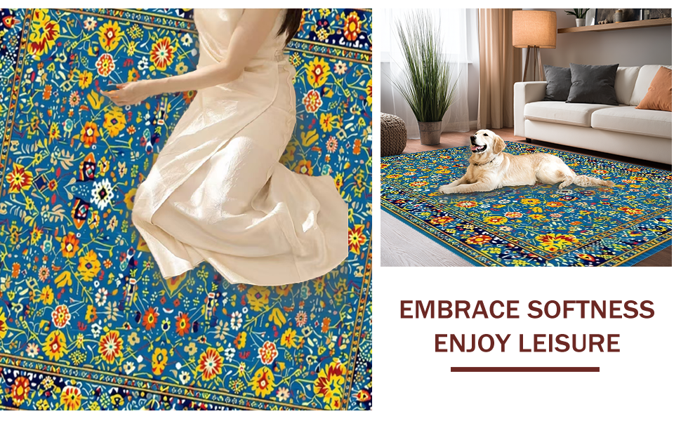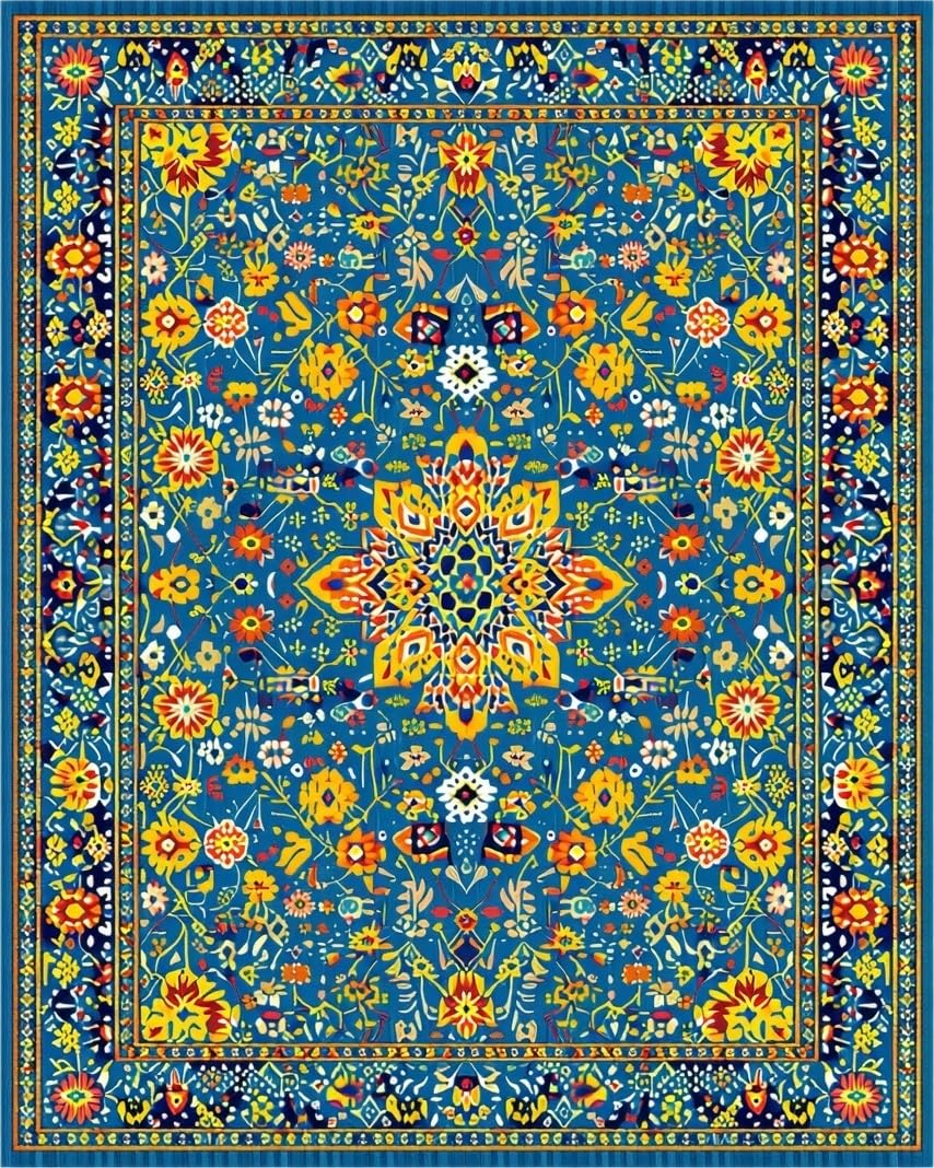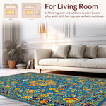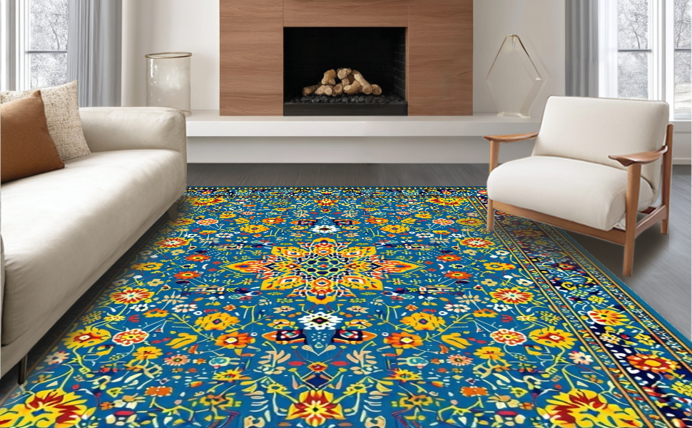 Ultra Soft Area Rug, Non Slip, Stain Resistant, Washable Area Rugs for Living Room, Bedroom, Eclectic Colorful Medallion Motif(Blue) Overview: