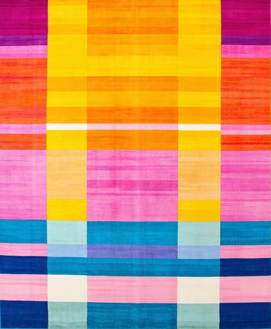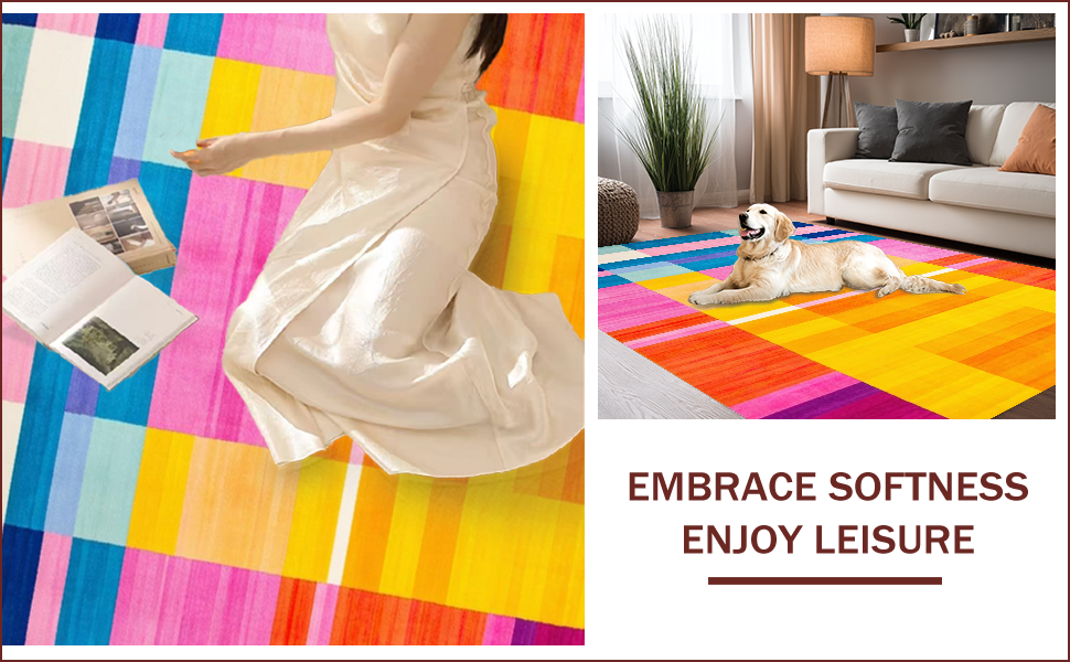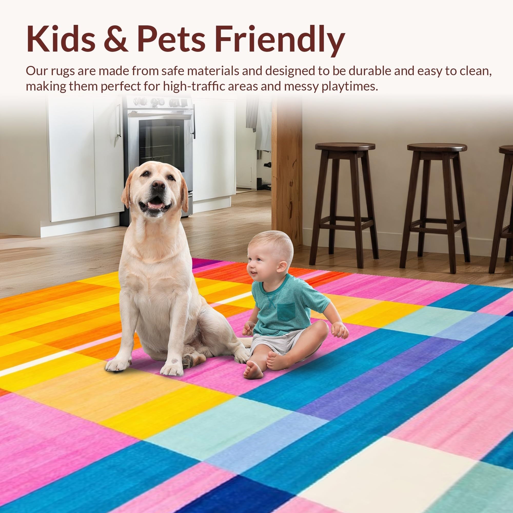 Ultra Soft Area Rug, Non Slip, Stain Resistant, Washable Area Rugs for Living Room, Bedroom, Eclectic Colorful Stripe Motif(Yellow) Overview: