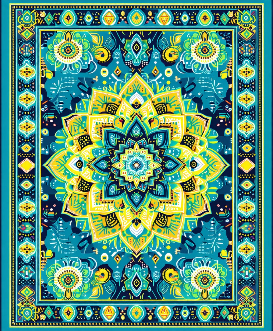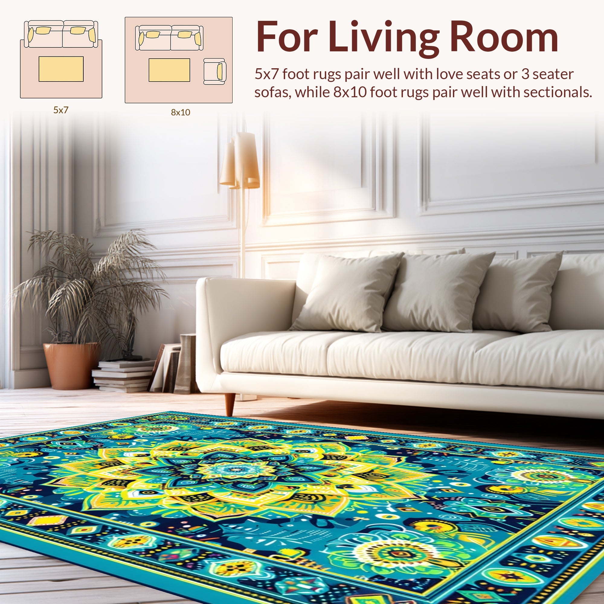 Flatwoven High Traffic Area Rug, Eclectic Colorful Tiled Motif, Non Slip, Stain Resistant, Washable Area Rugs for Living Room, Bedroom (Blue) Overview: