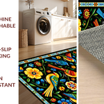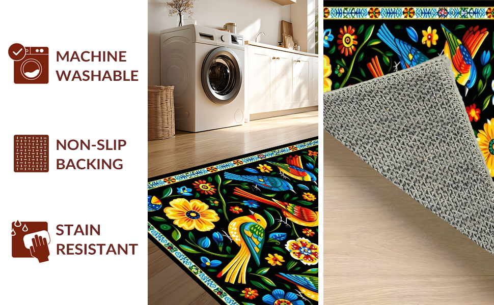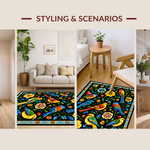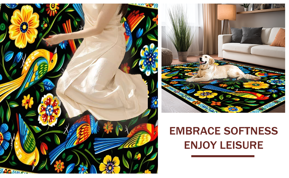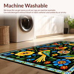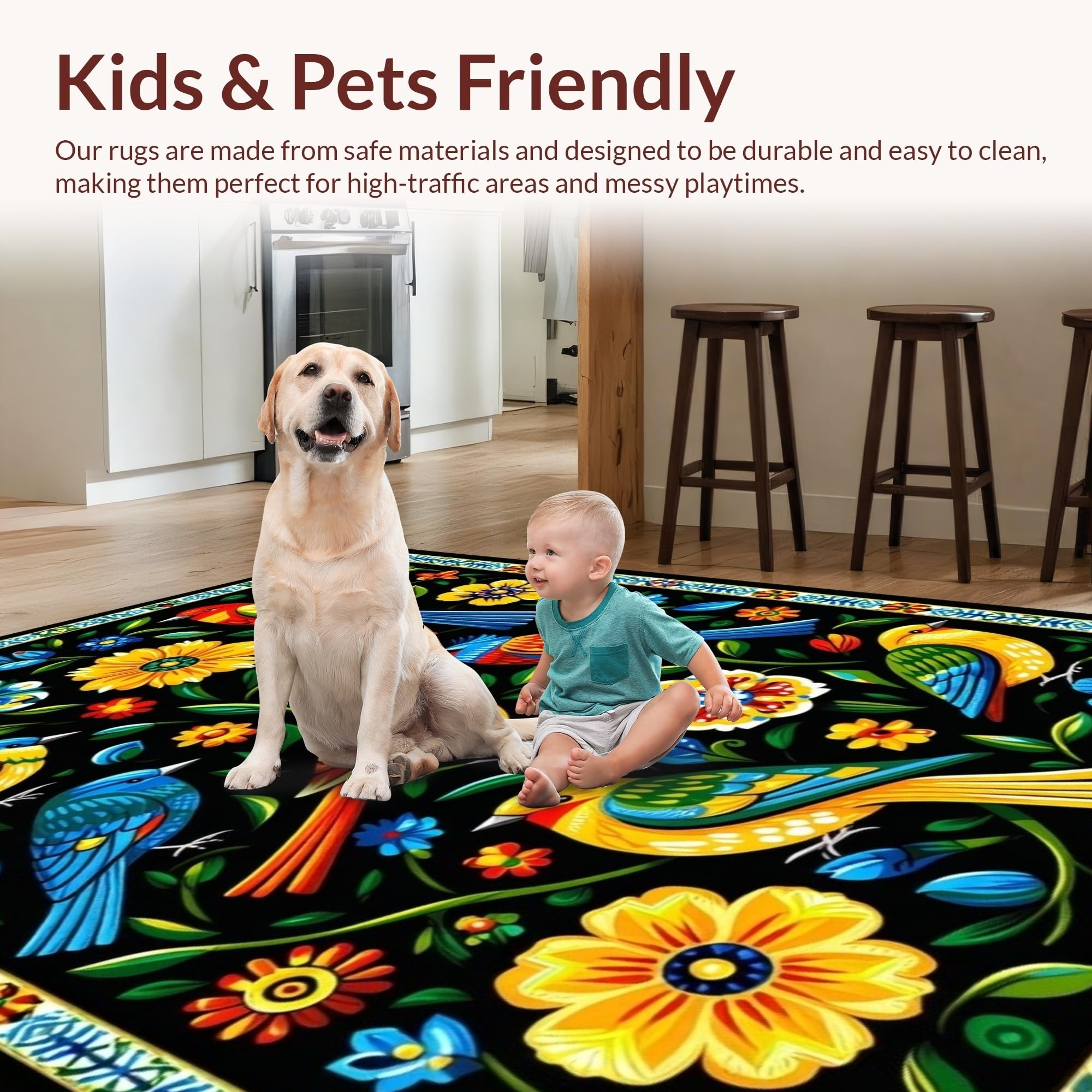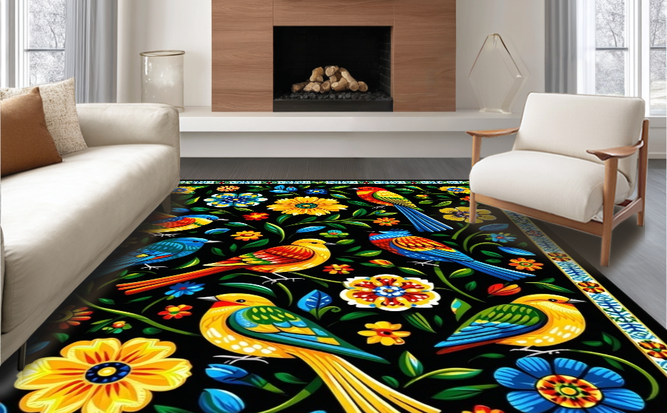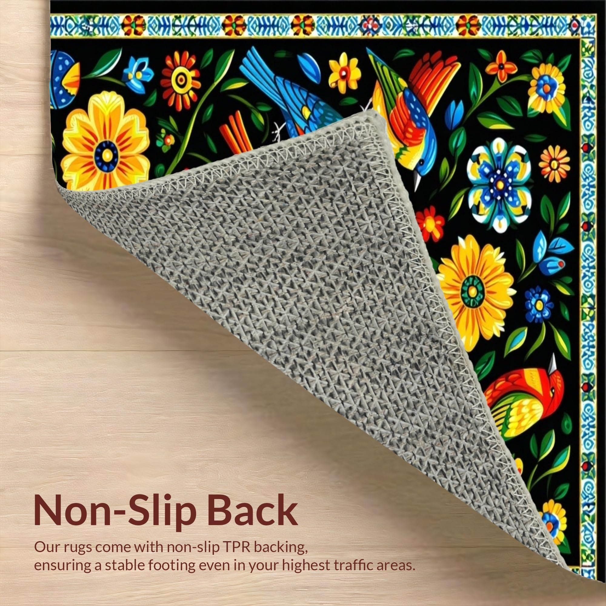 Ultra Soft Area Rug, Non Slip, Stain Resistant, Washable Area Rugs for Living Room, Bedroom, Eclectic Cultural Floral Fusion(Black) Overview: