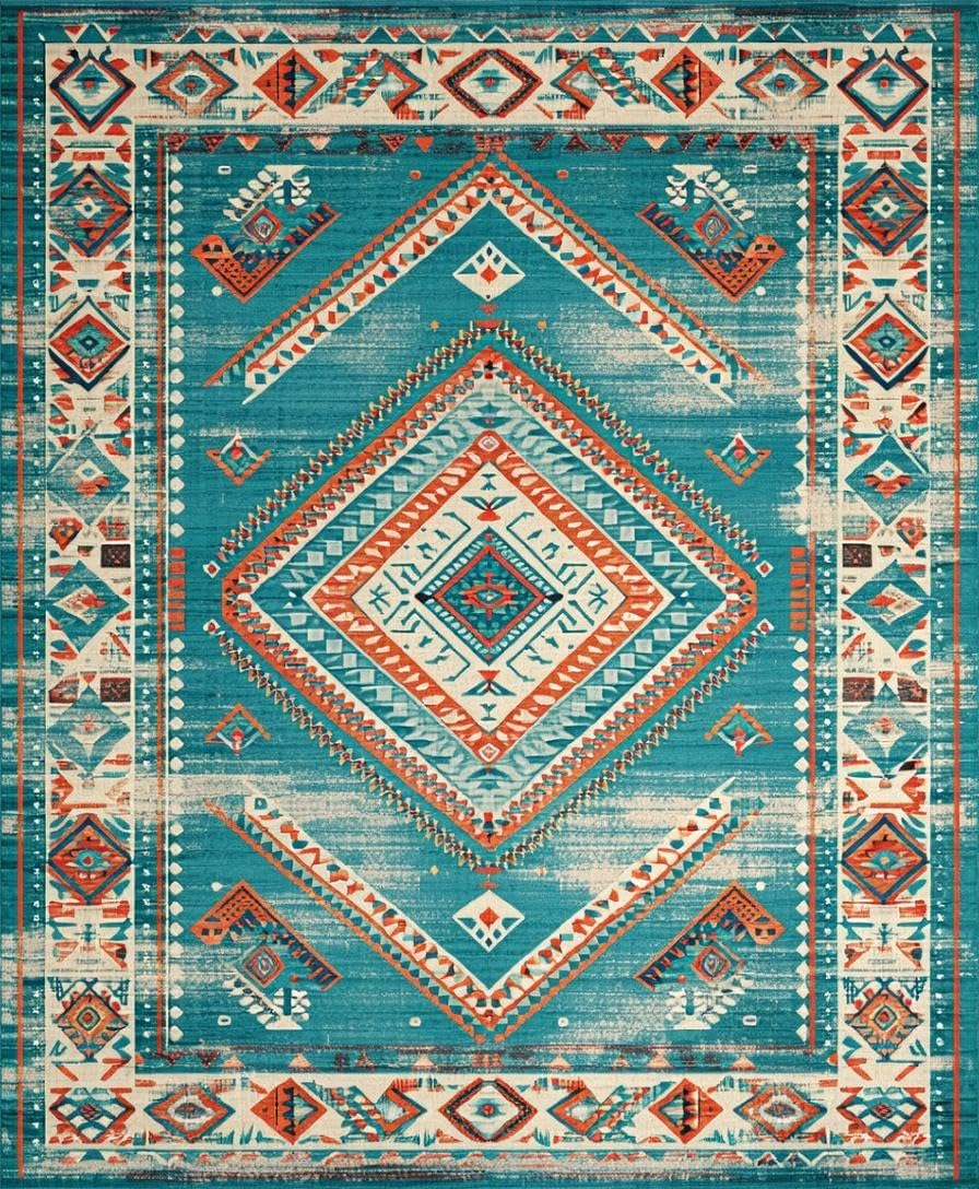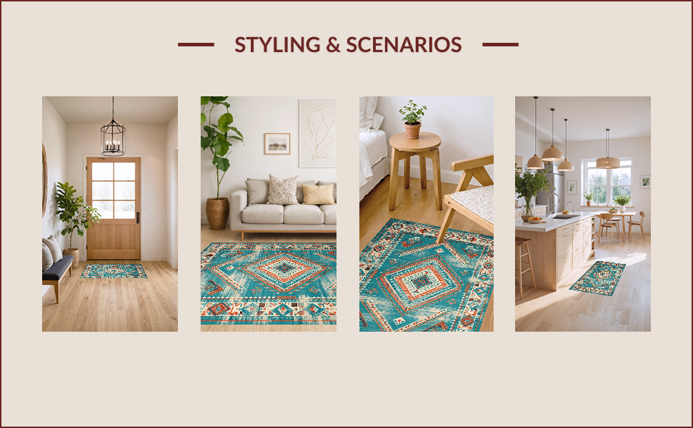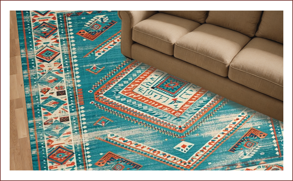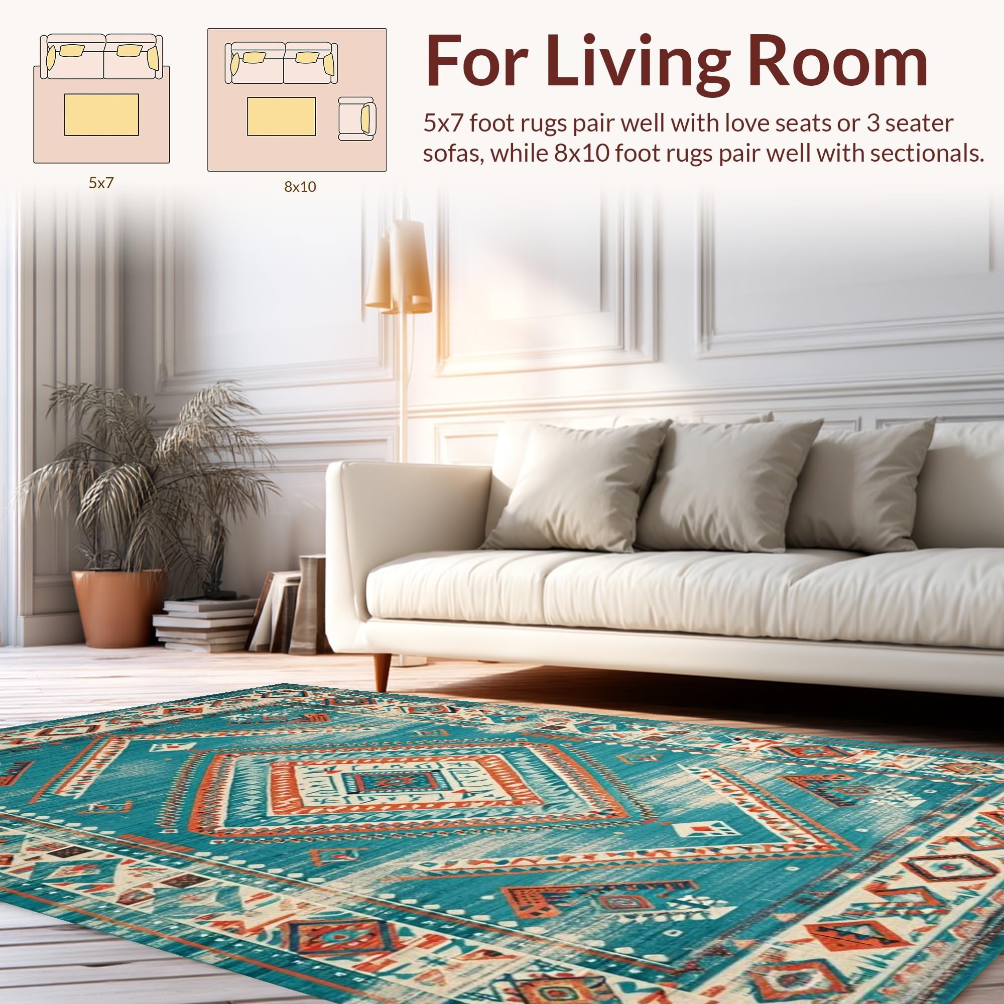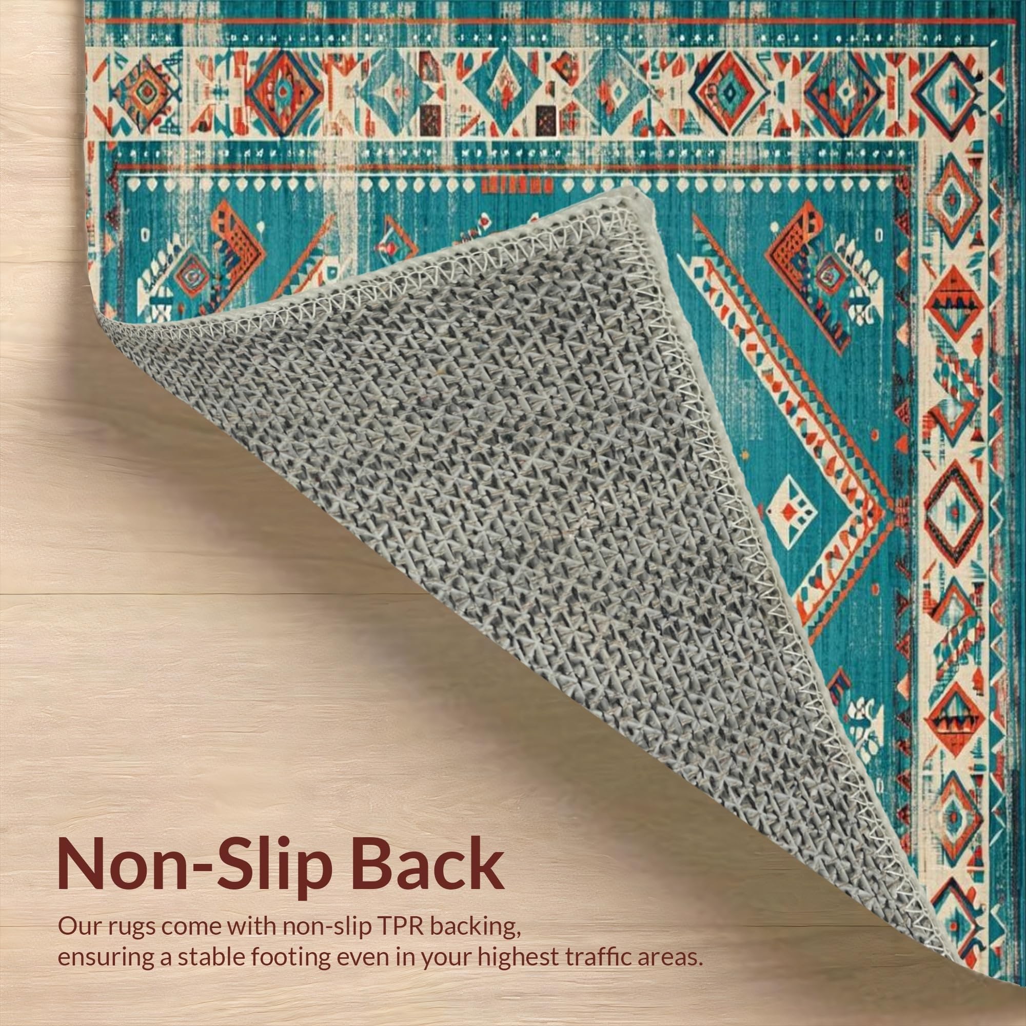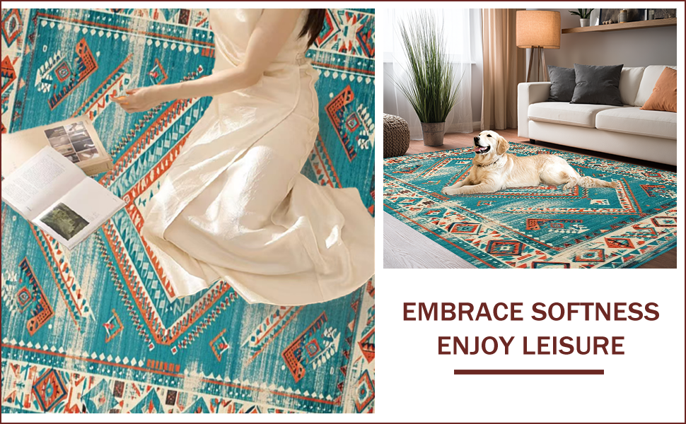 Ultra Soft Area Rug, Non Slip, Stain Resistant, Washable Area Rugs for Living Room, Bedroom, Eclectic Earthy Geometric Arrangement(Blue) Overview:
