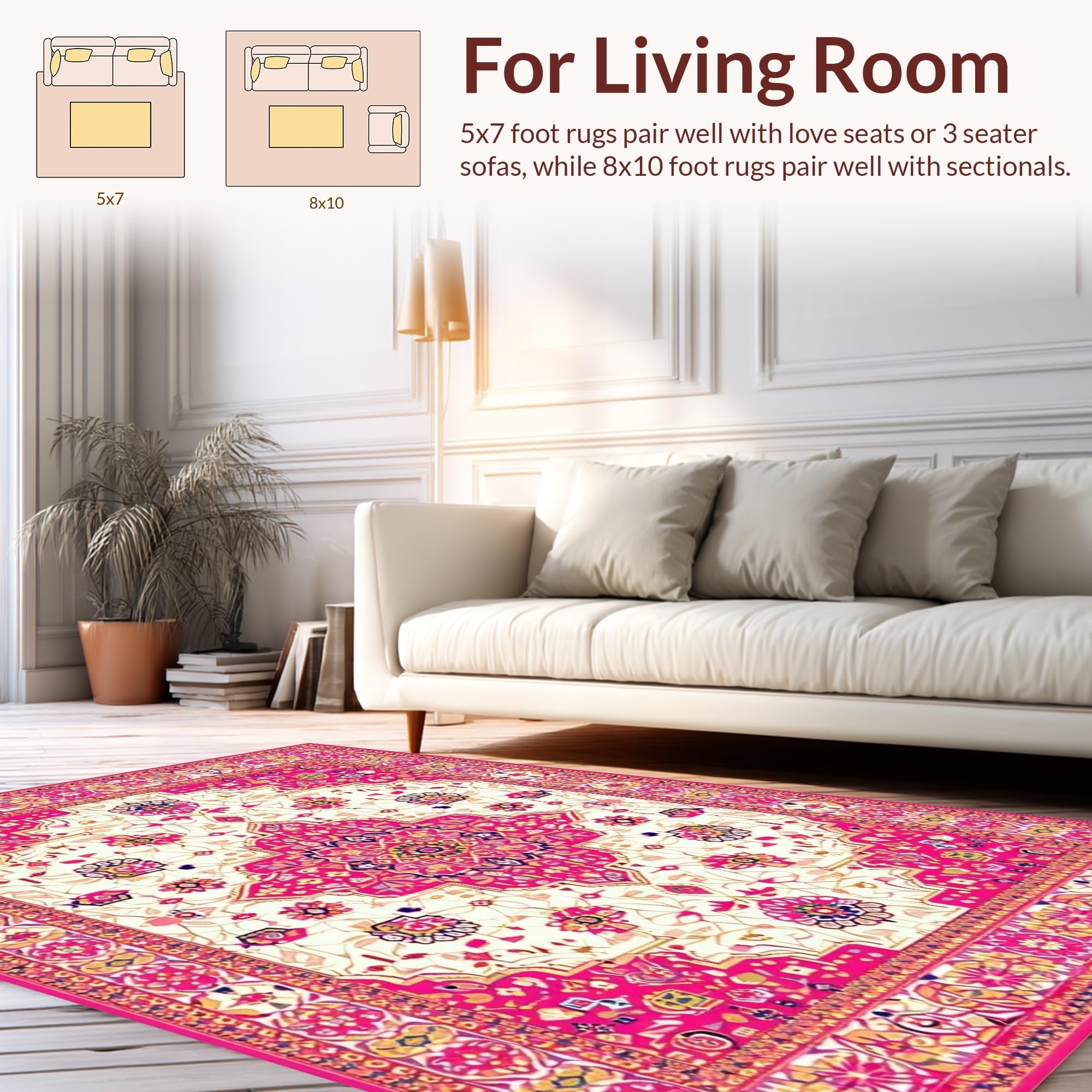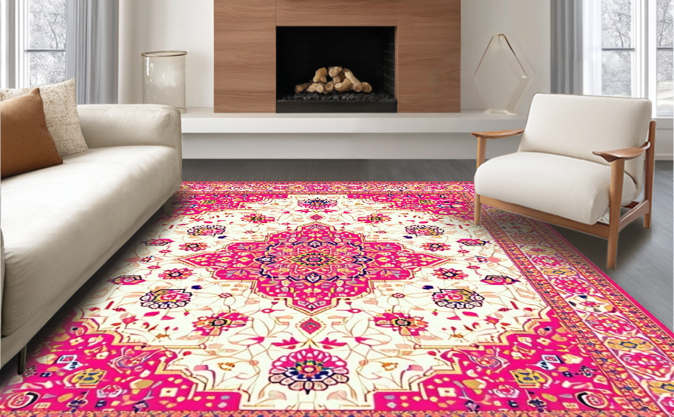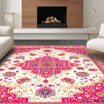Ultra Soft Area Rug, Non Slip, Stain Resistant, Washable Area Rugs for Living Room, Bedroom, Eclectic Floral Medallion Aesthetic(White) Overview: