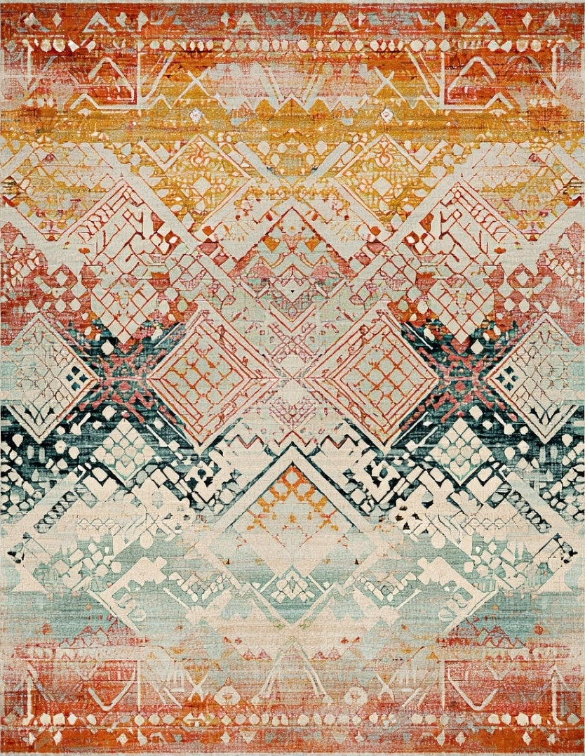 Flatwoven High Traffic Area Rug, Eclectic Geometric with Boho Layers and Subtle Botanical Details, Non Slip, Stain Resistant, Washable Area Rugs for Living Room, Bedroom (Orange) Overview: