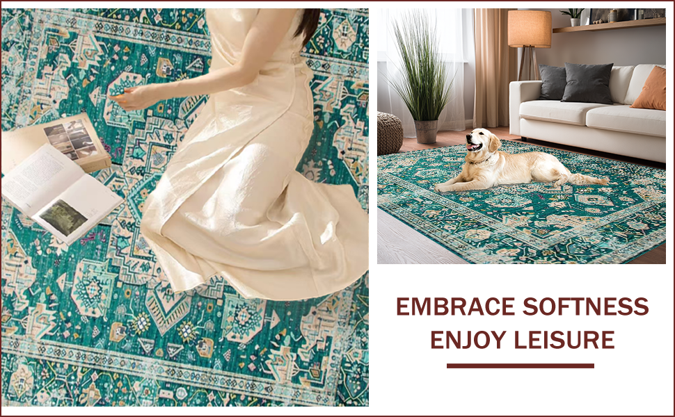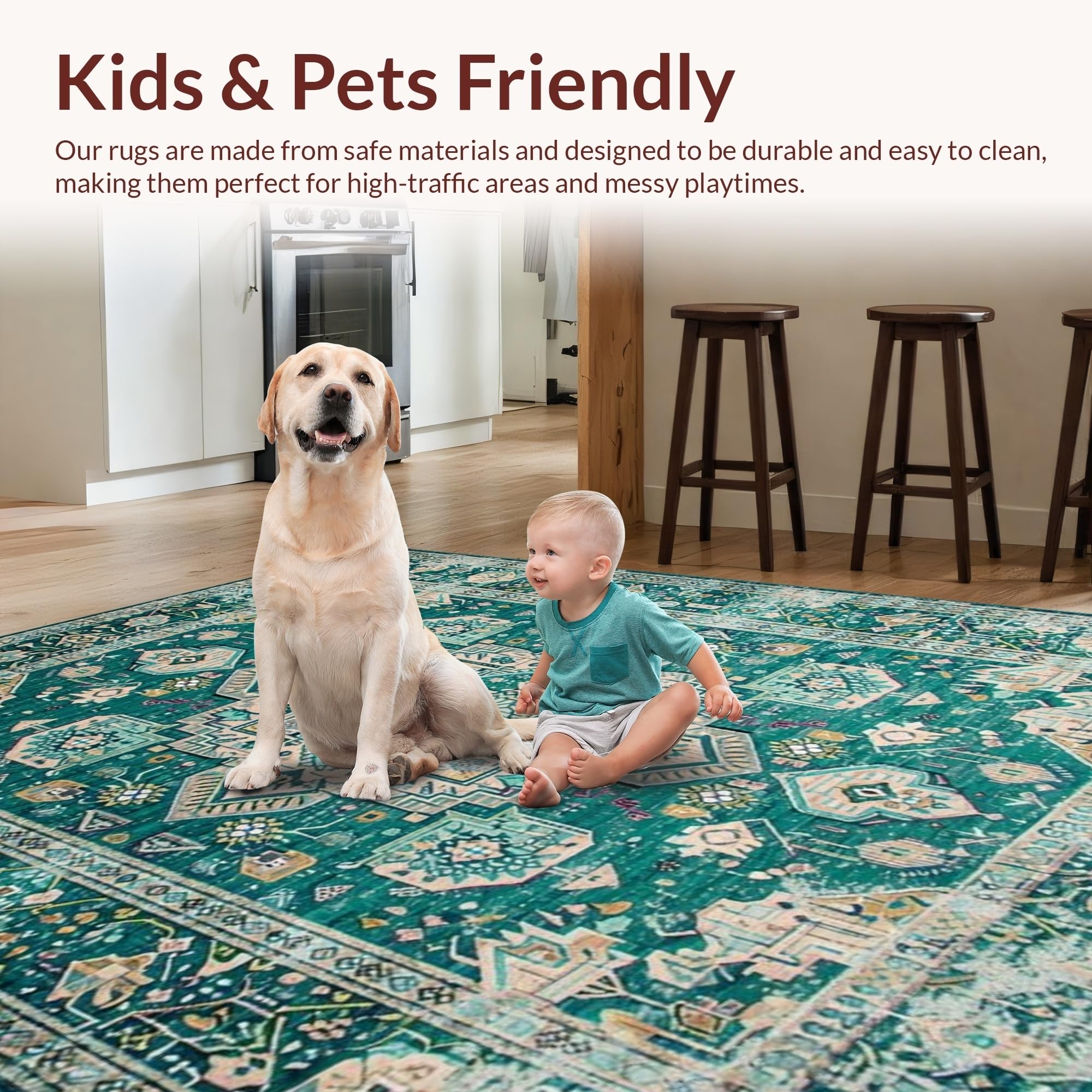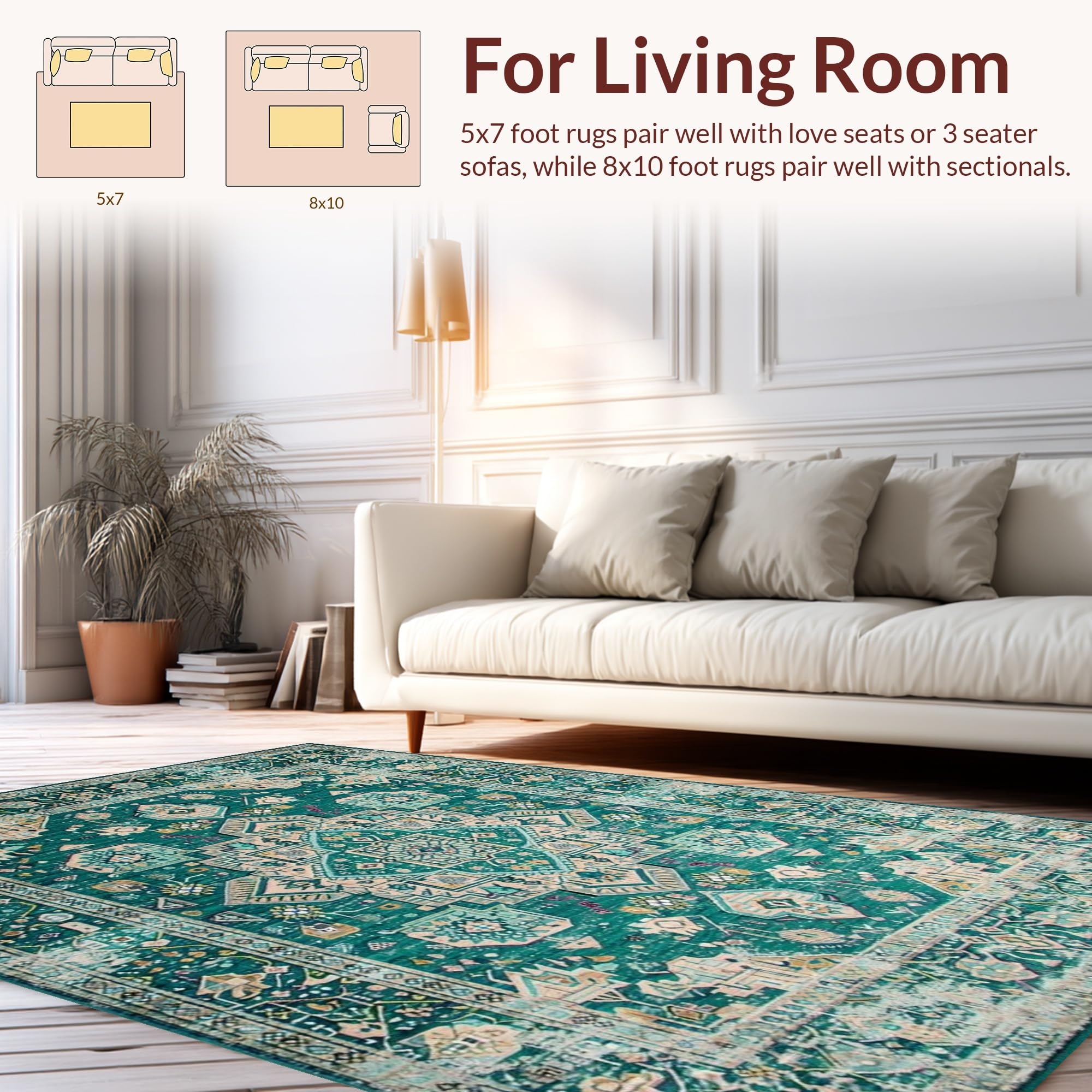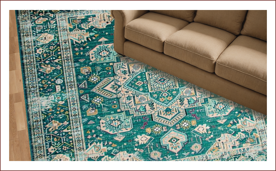 Ultra Soft Area Rug, Non Slip, Stain Resistant, Washable Area Rugs for Living Room, Bedroom, Eclectic Medallion Tapestry Vibes(Green) Overview: