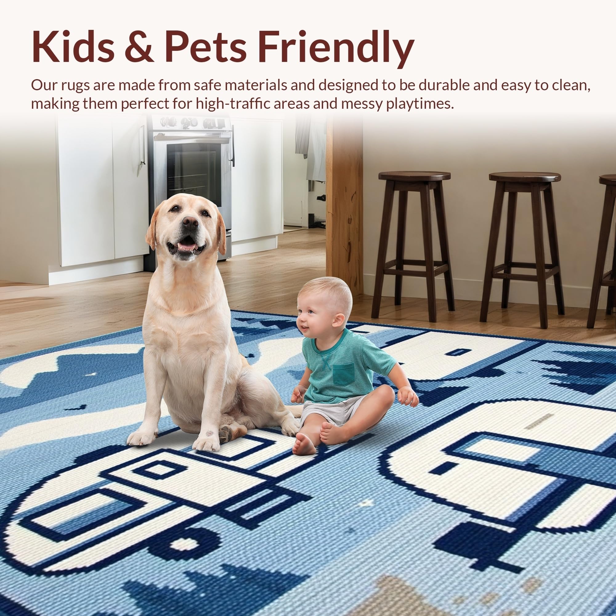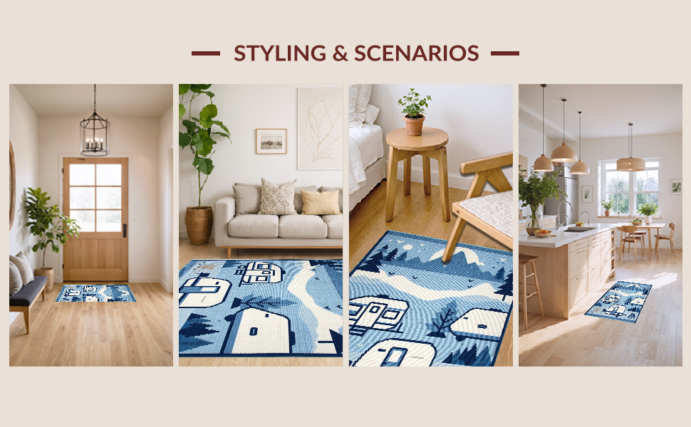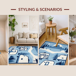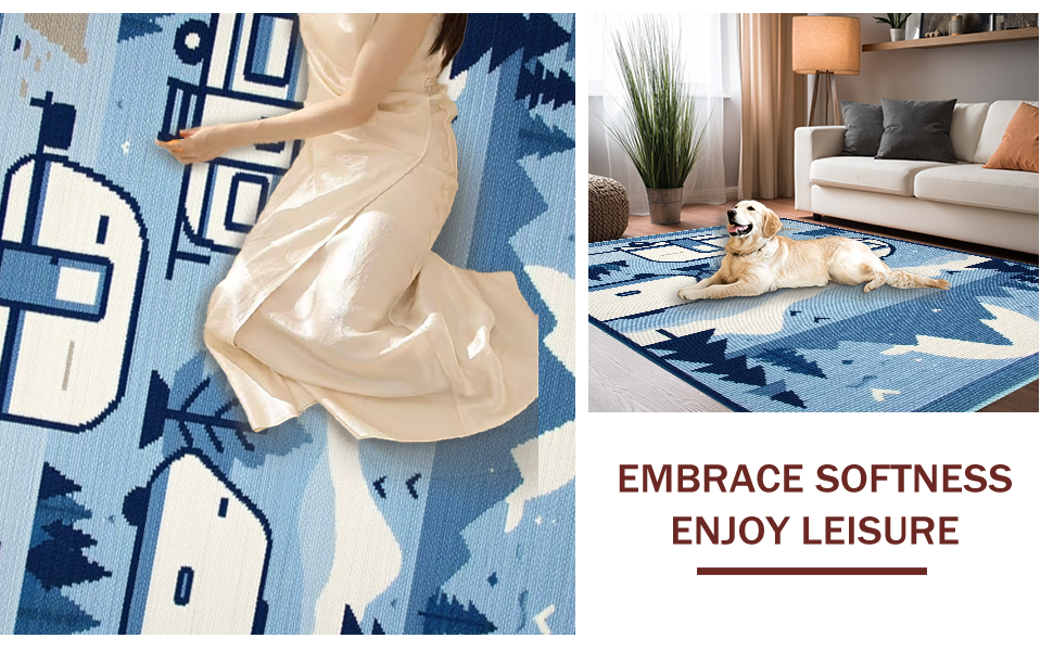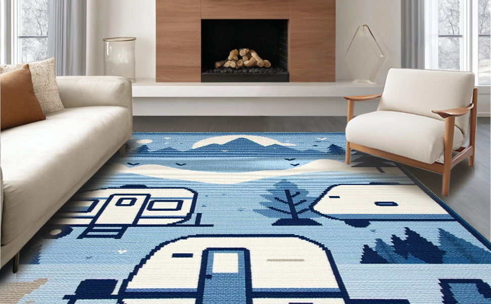 Ultra Soft Area Rug, Non Slip, Stain Resistant, Washable Area Rugs for Living Room, Bedroom, Eclectic Minimalist Campfire Vibes(Blue) Overview: