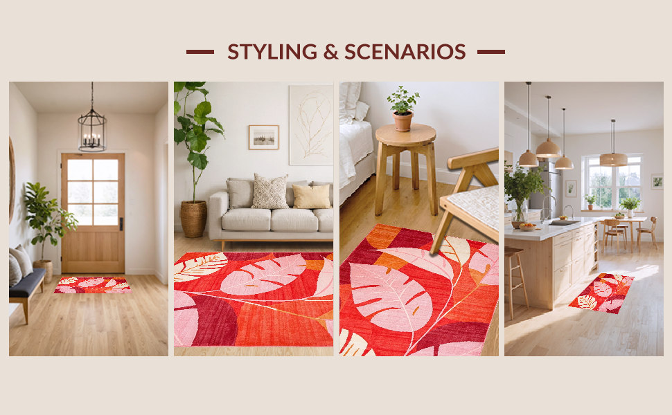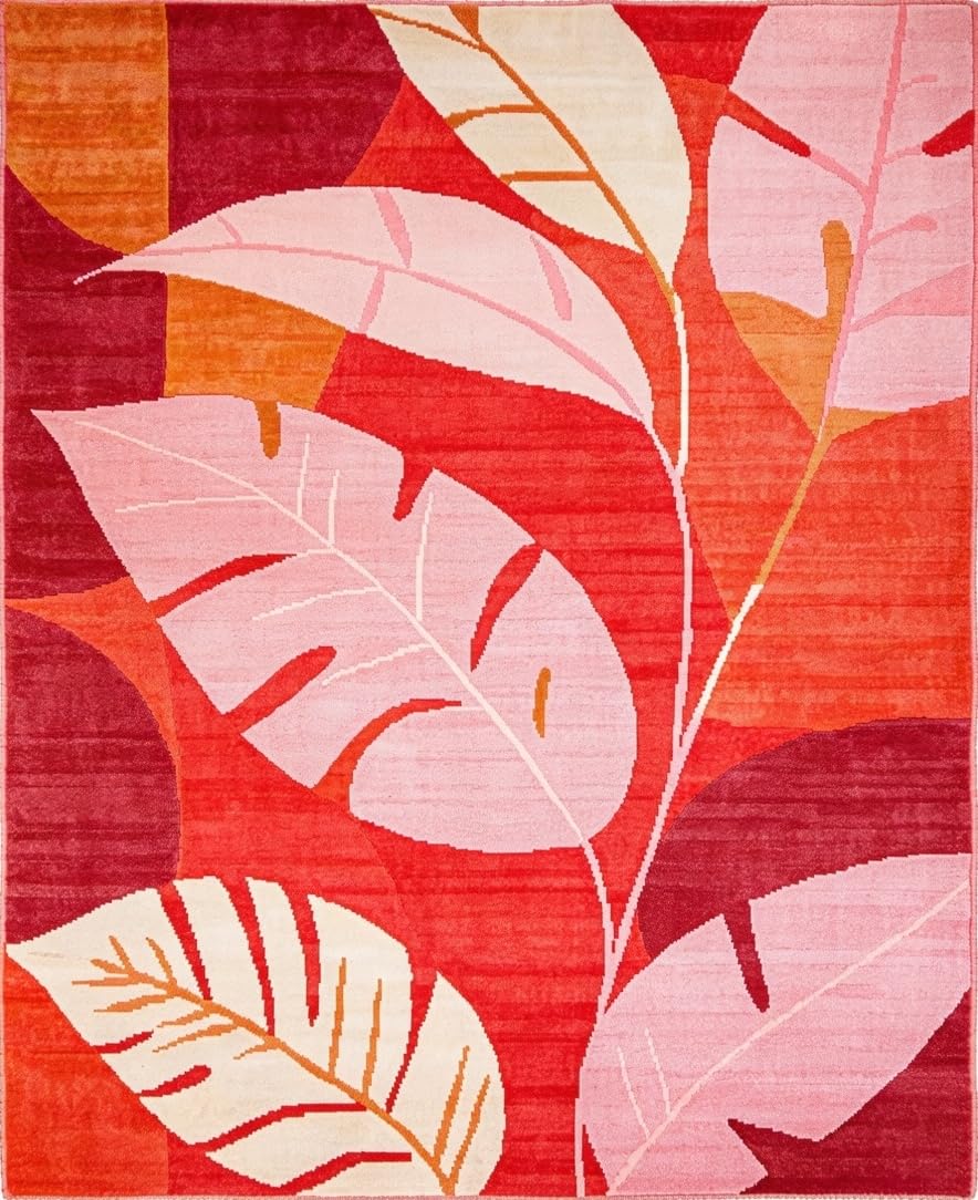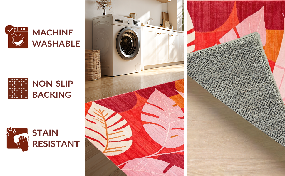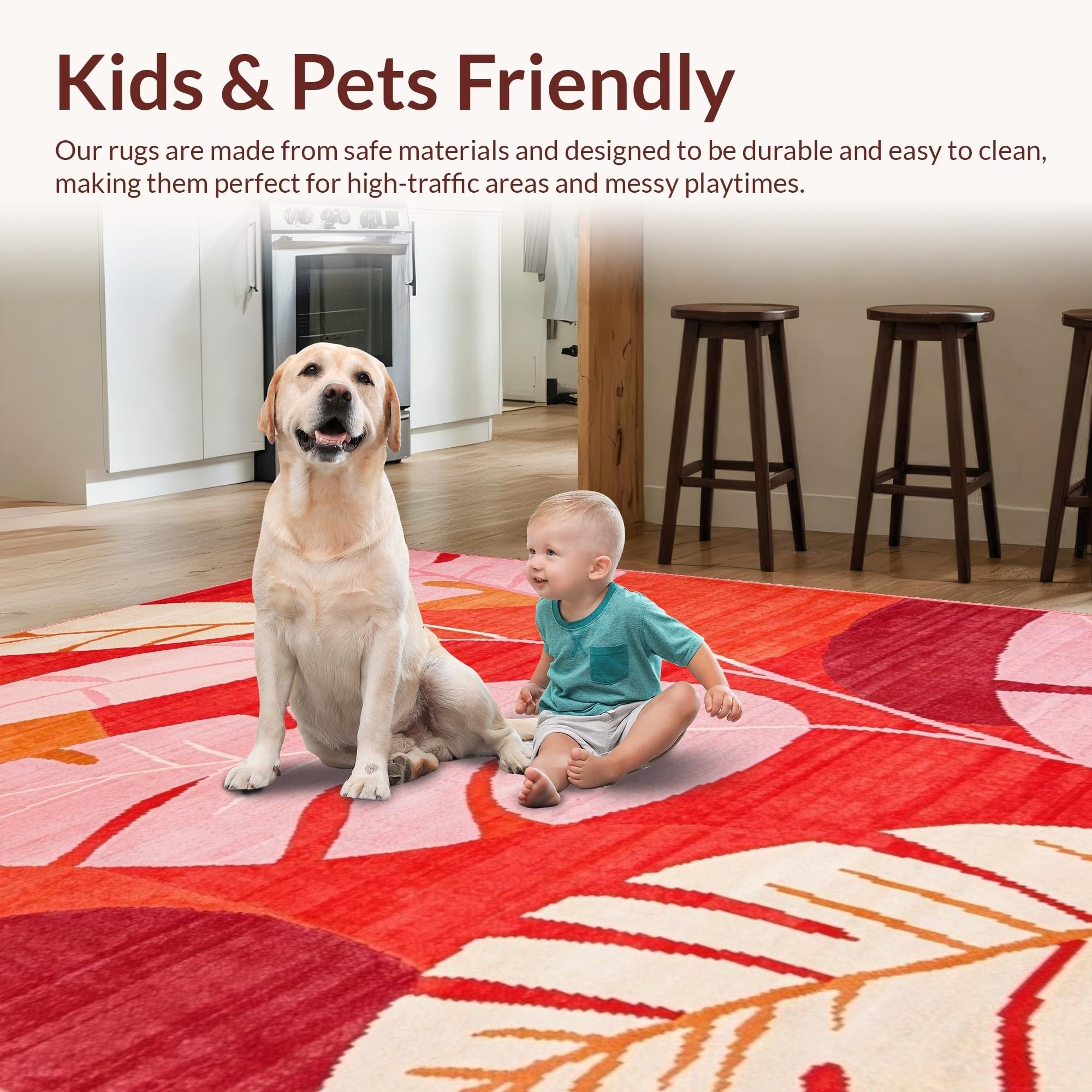 Ultra Soft Area Rug, Non Slip, Stain Resistant, Washable Area Rugs for Living Room, Bedroom, Eclectic Modern Leaf Silhouettes(Red) Overview: