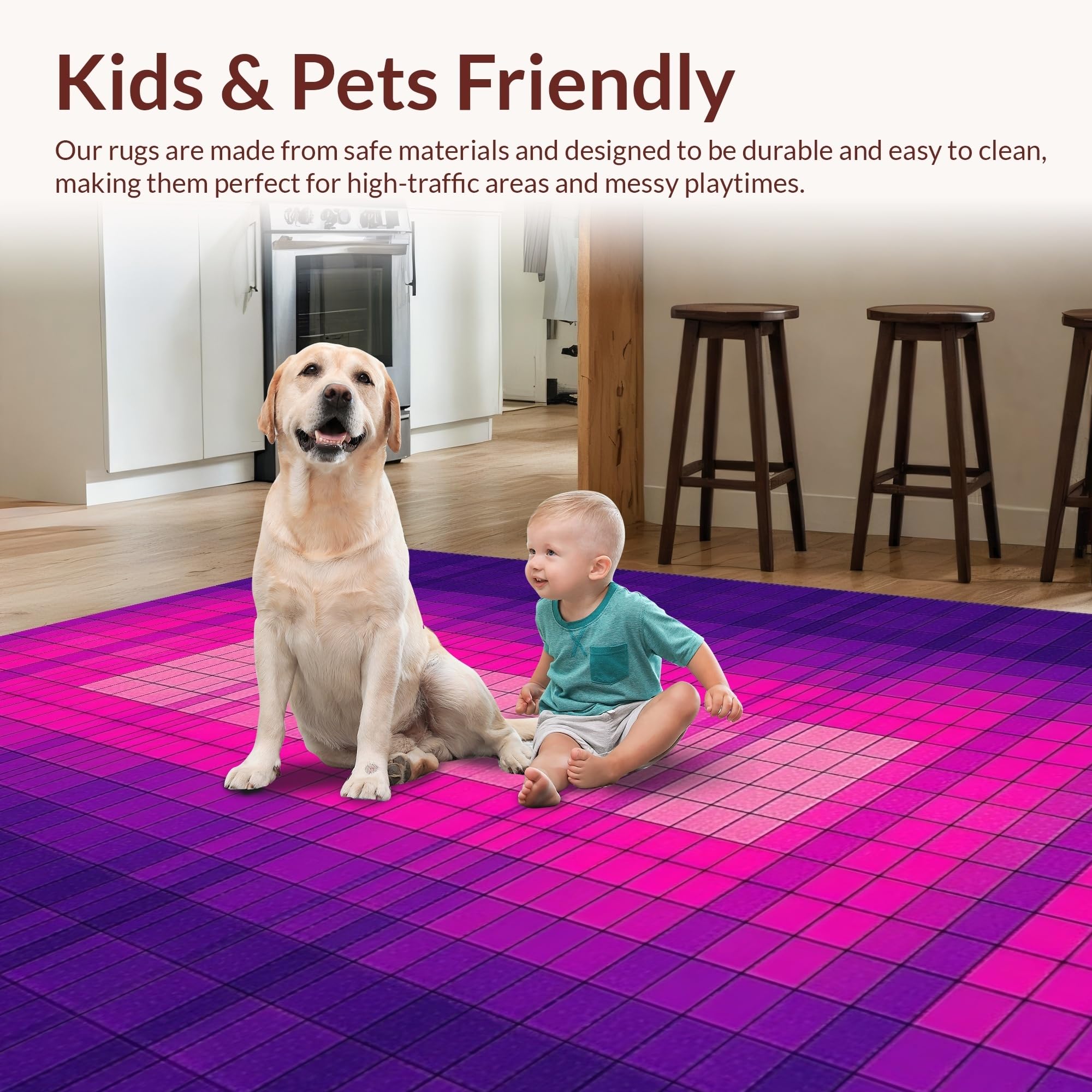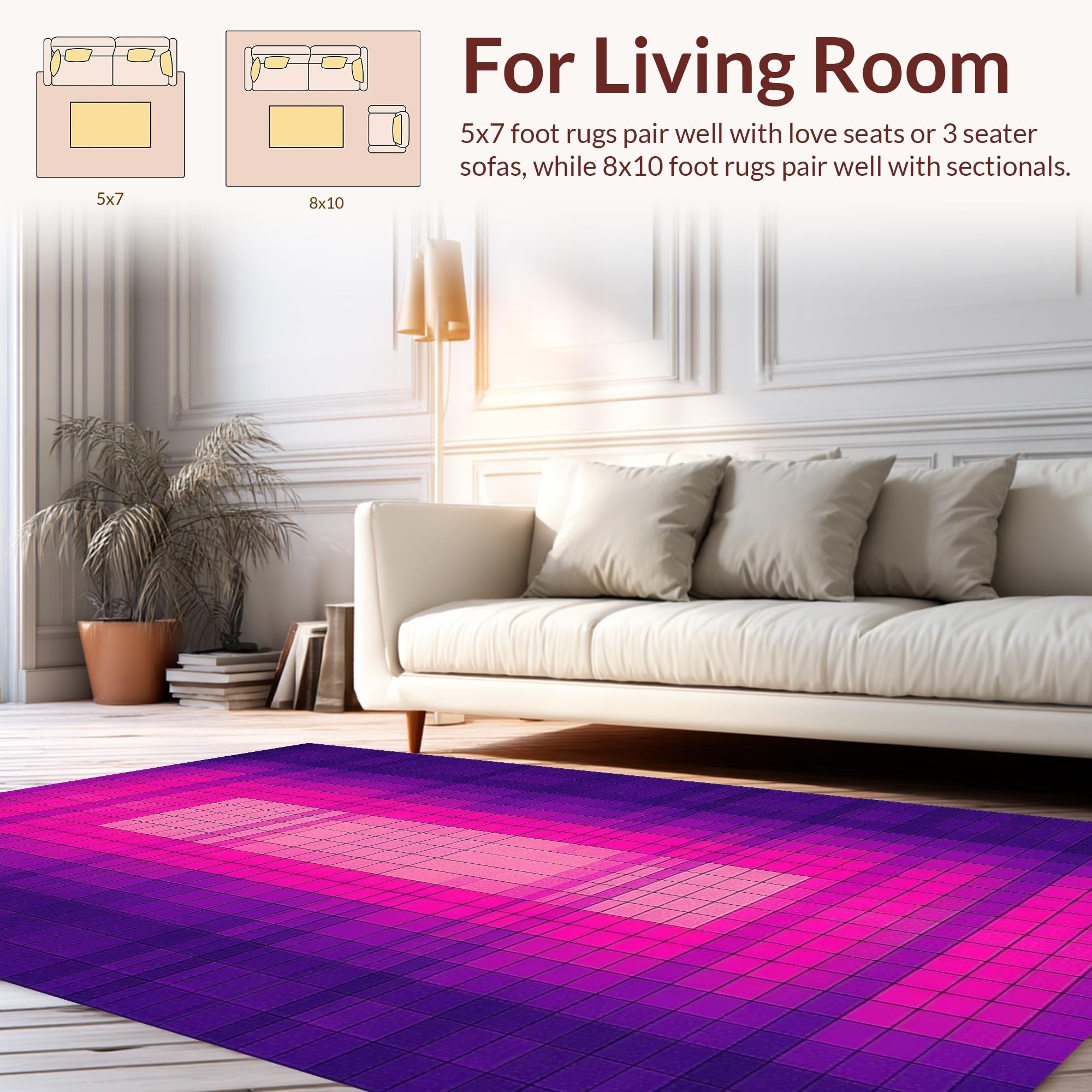 Ultra Soft Area Rug, Non Slip, Stain Resistant, Washable Area Rugs for Living Room, Bedroom, Eclectic Multi-Toned Ethnic Weave(Purple) Overview: