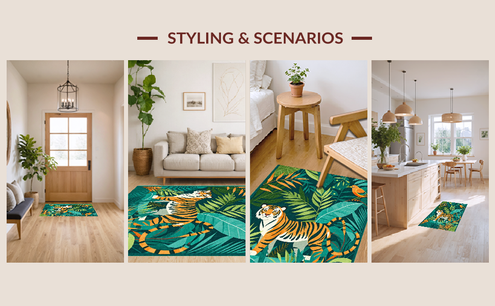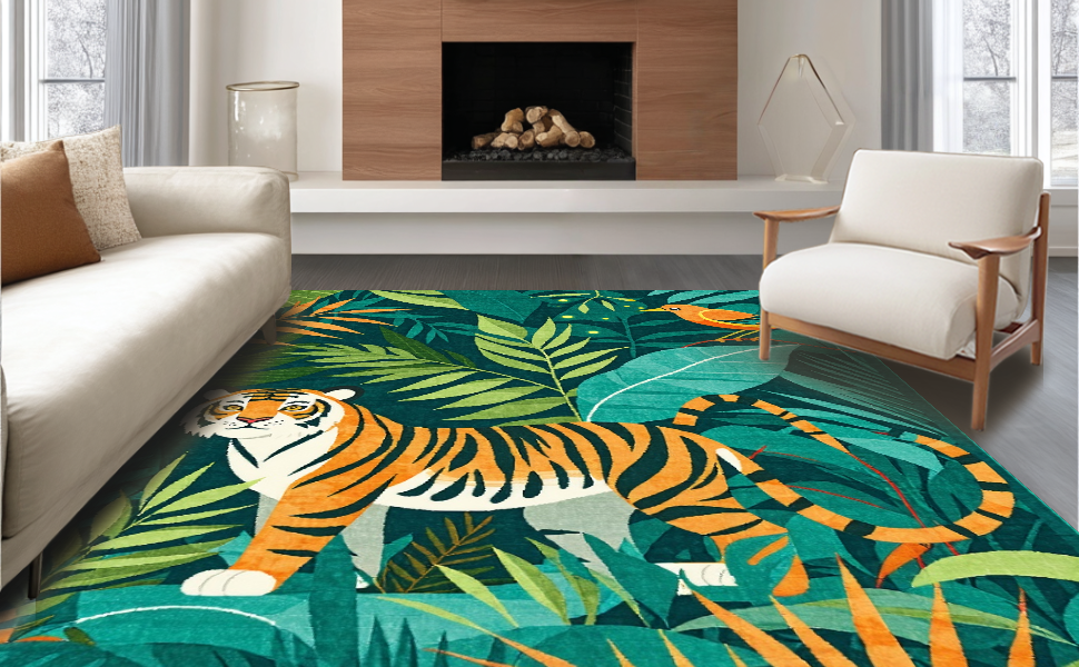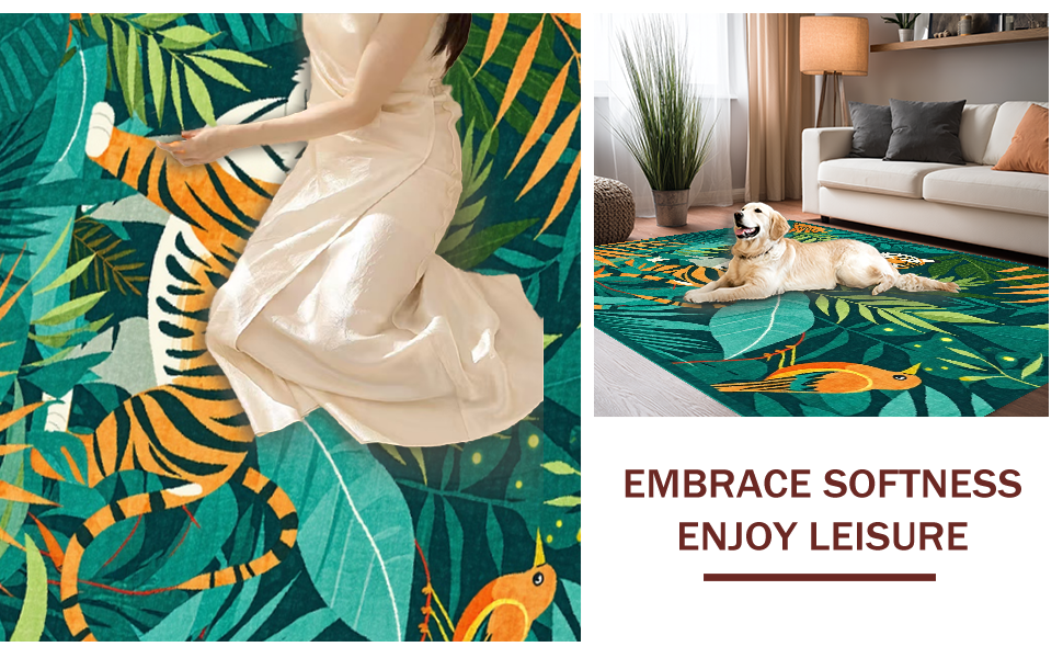 Ultra Soft Area Rug, Non Slip, Stain Resistant, Washable Area Rugs for Living Room, Bedroom, Eclectic Nature Inspired Decor(Green) Overview: