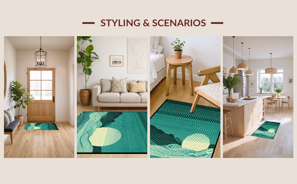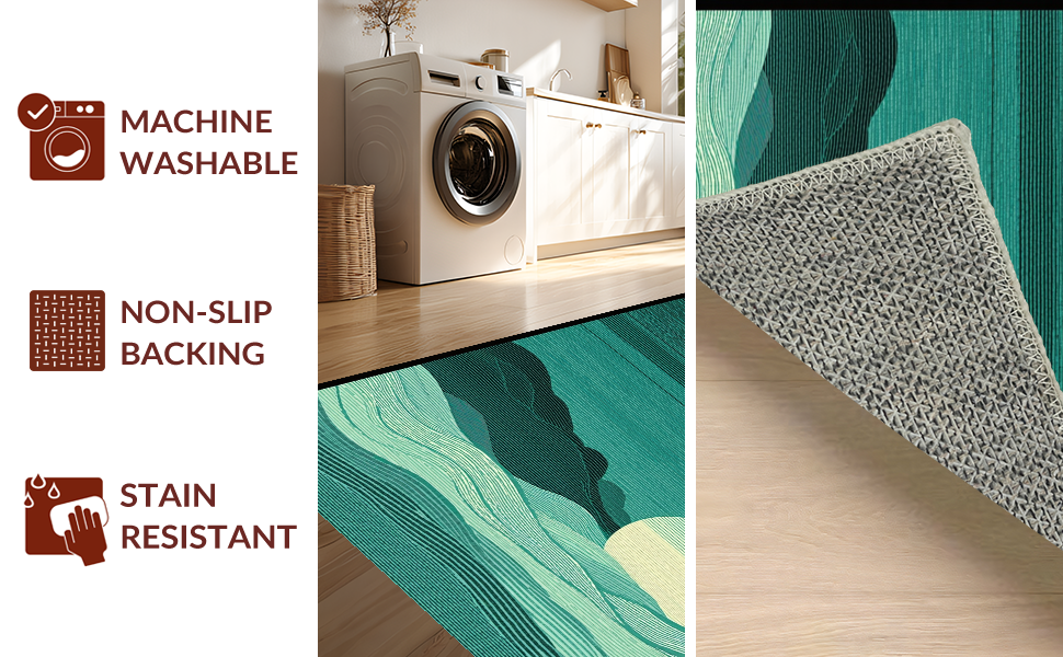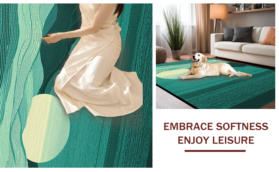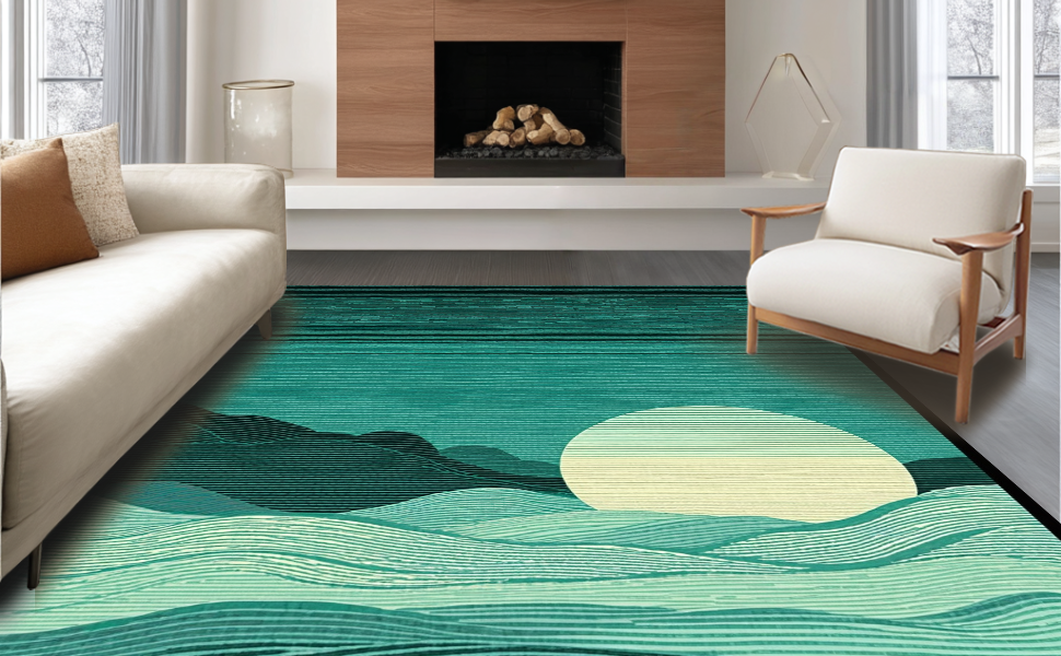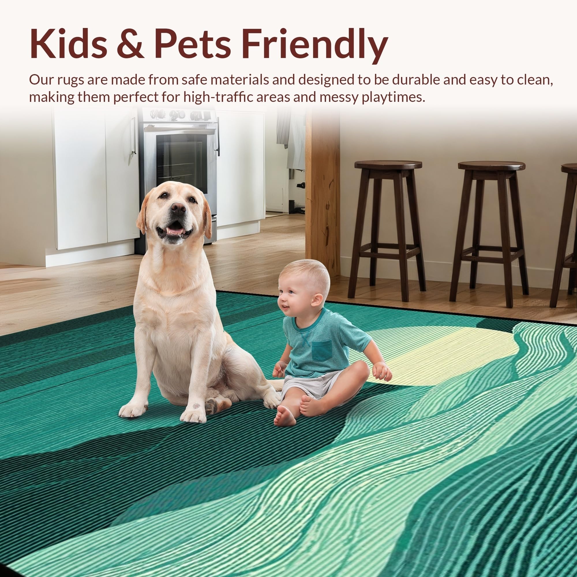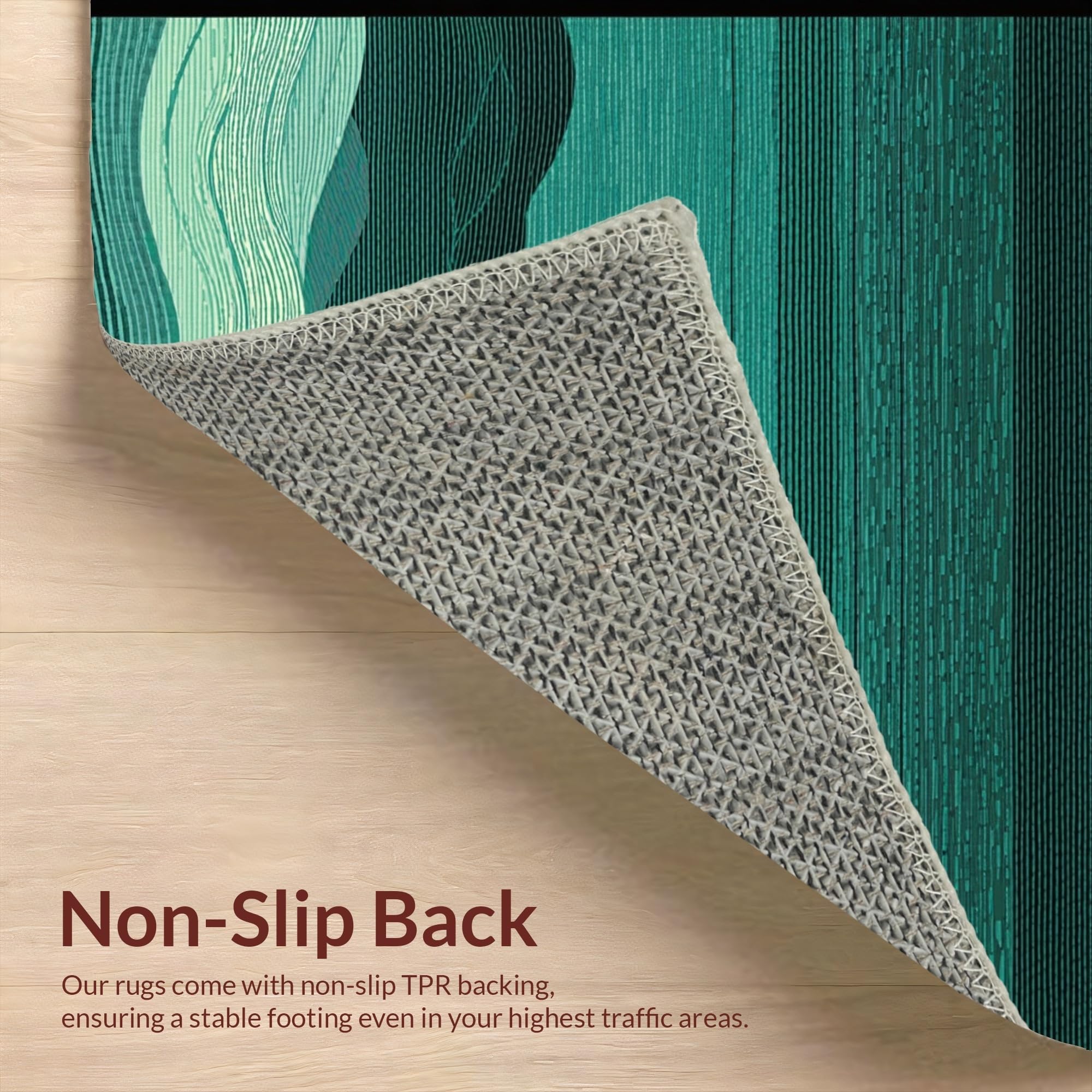 Ultra Soft Area Rug, Non Slip, Stain Resistant, Washable Area Rugs for Living Room, Bedroom, Eclectic Ombre Wave Design(Green) Overview: