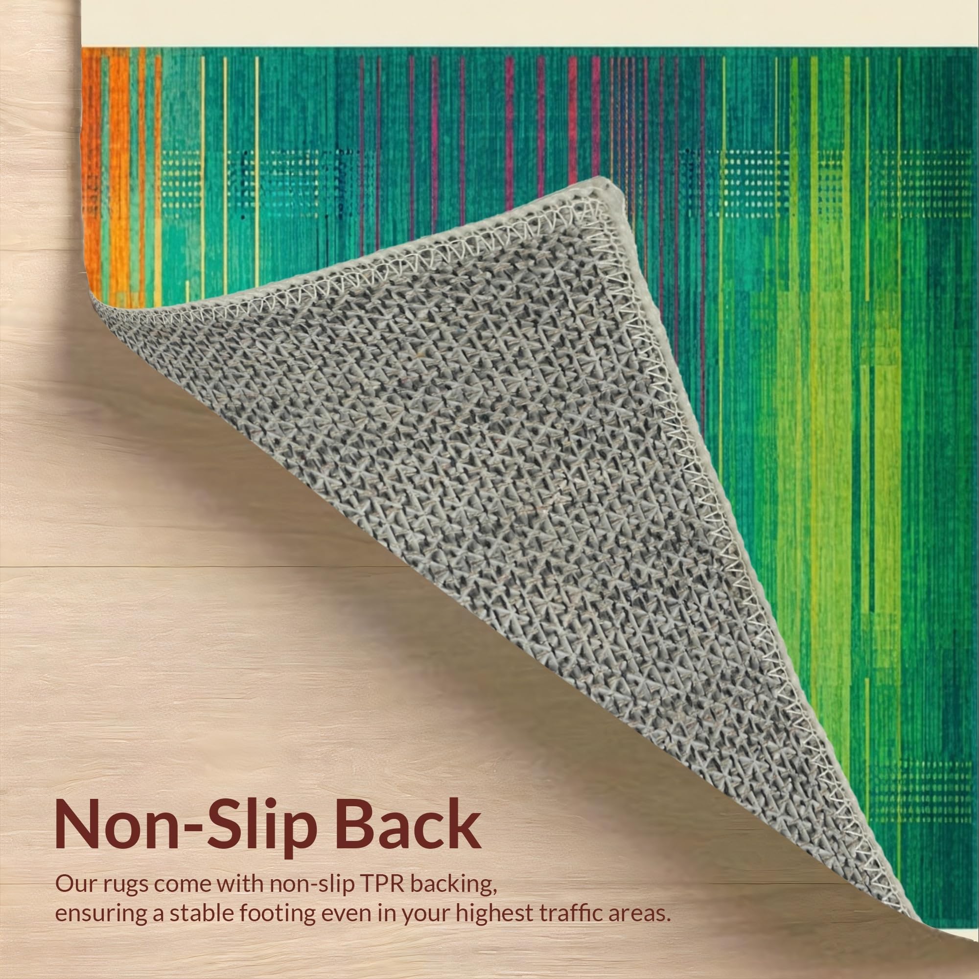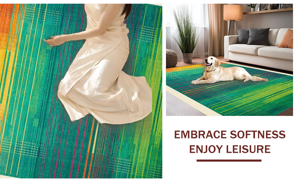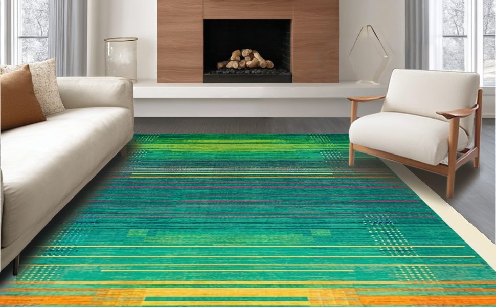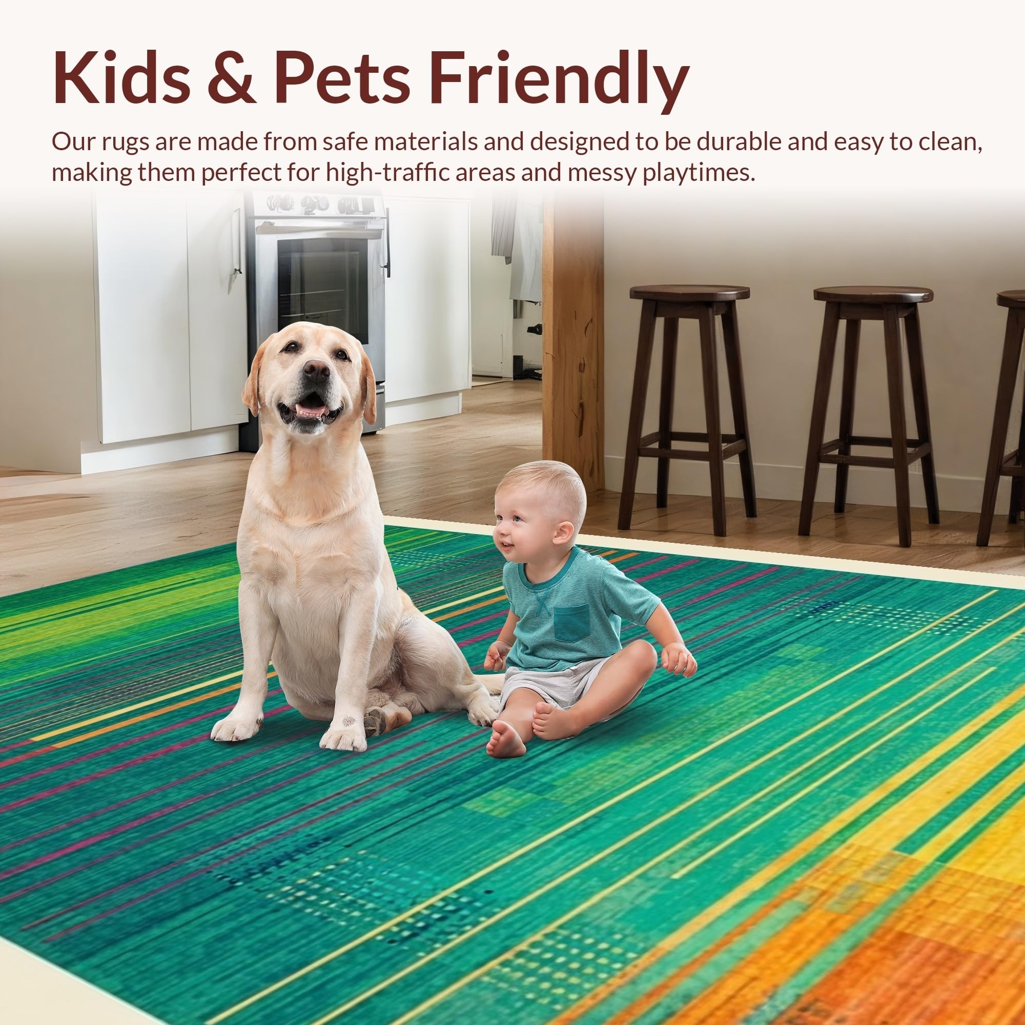 Ultra Soft Area Rug, Non Slip, Stain Resistant, Washable Area Rugs for Living Room, Bedroom, Eclectic Rainbow Abstract Motif(Blue) Overview: