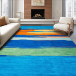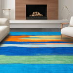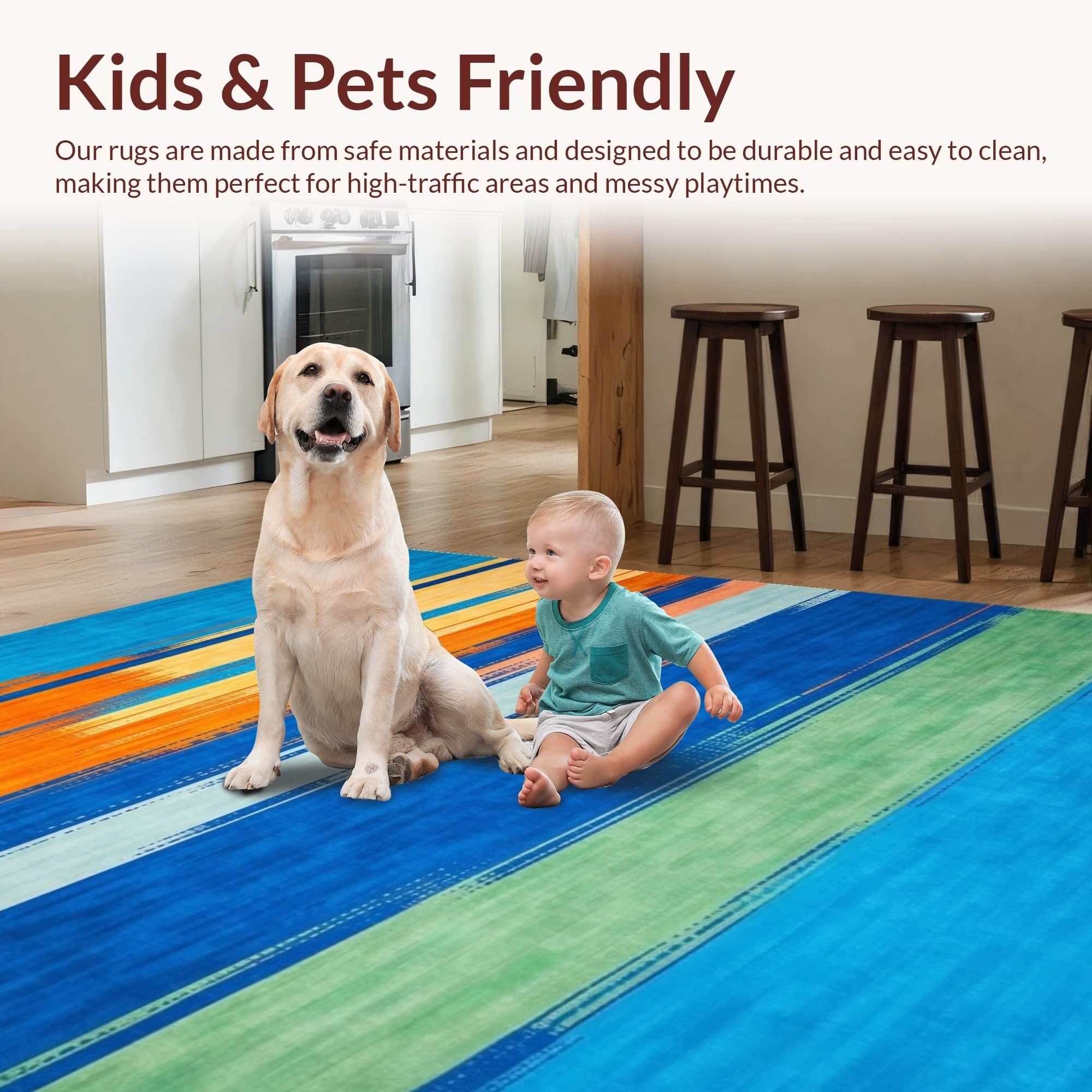 Ultra Soft Area Rug, Non Slip, Stain Resistant, Washable Area Rugs for Living Room, Bedroom, Eclectic Striped Color Fusion(Blue) Overview: