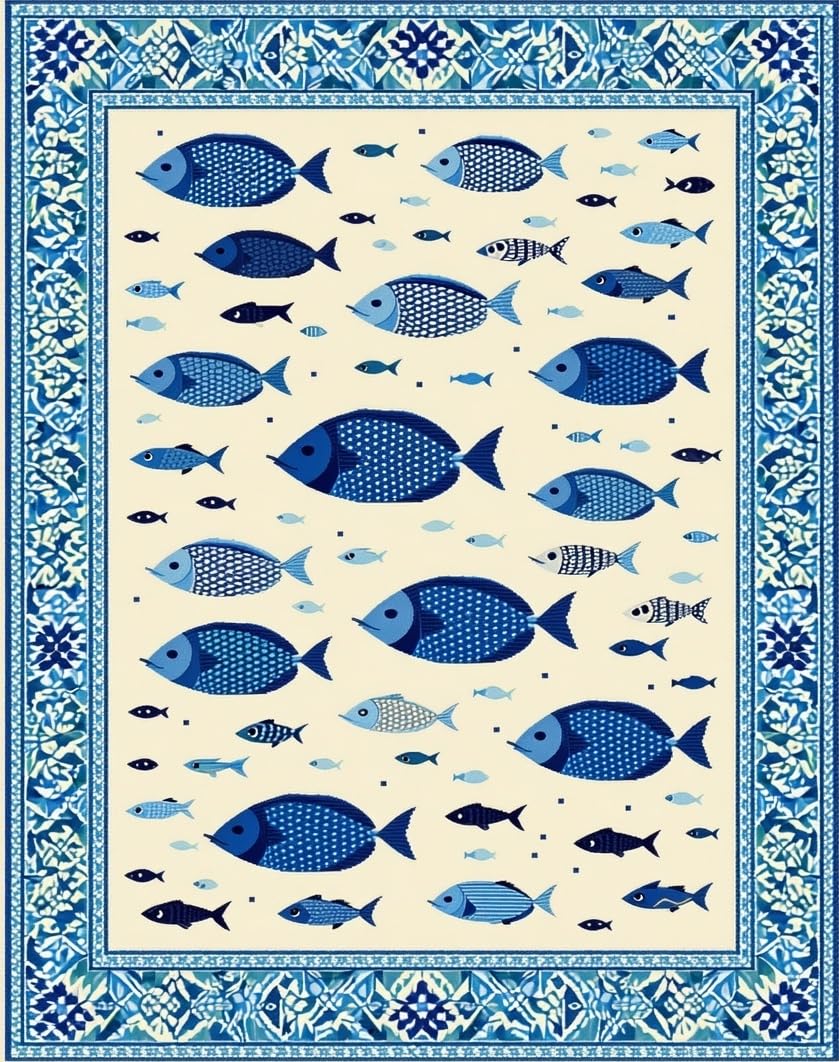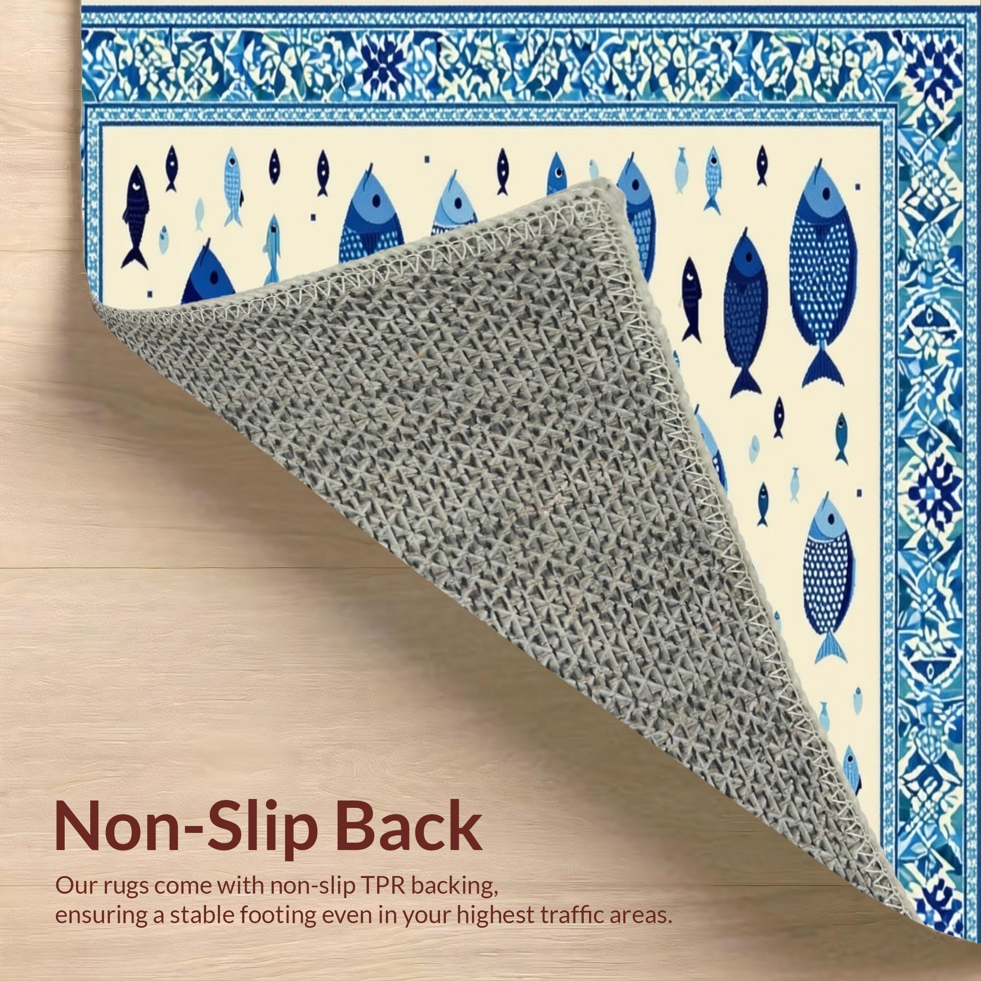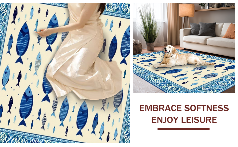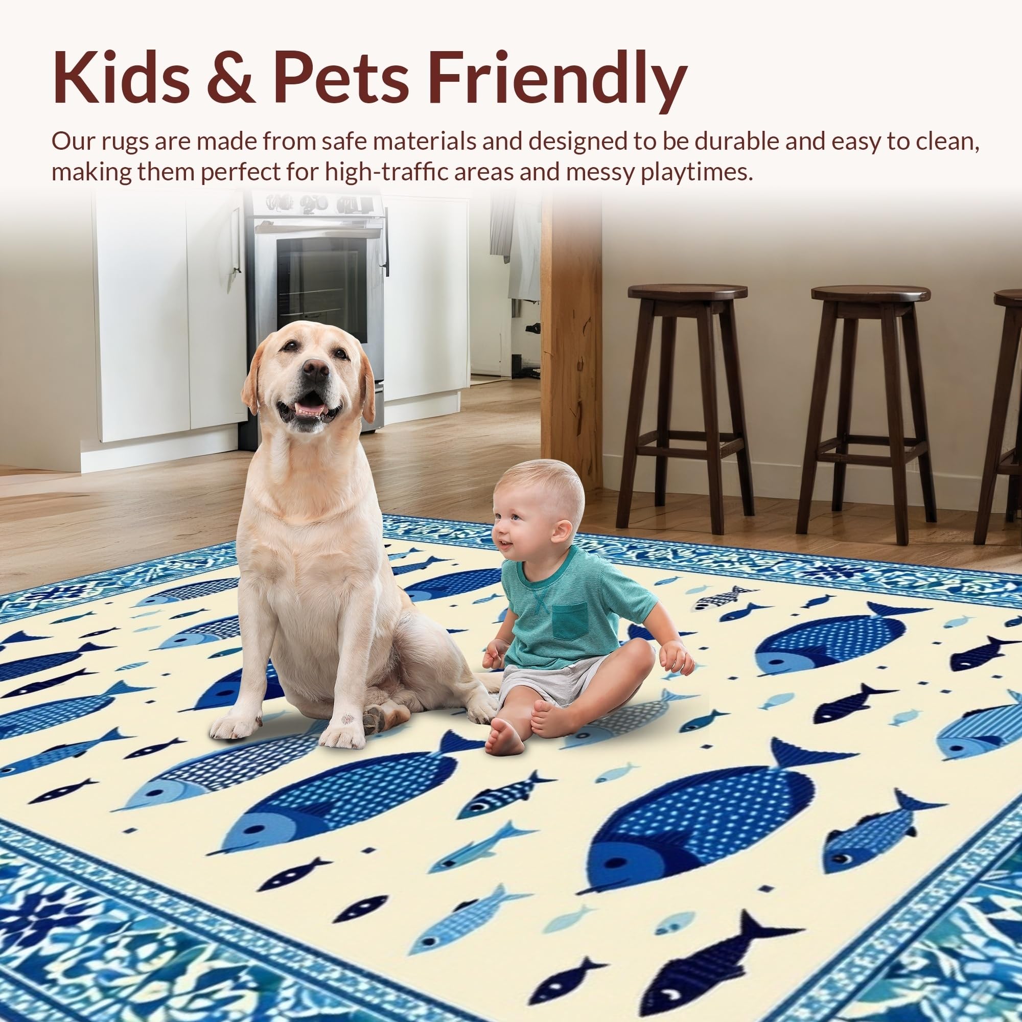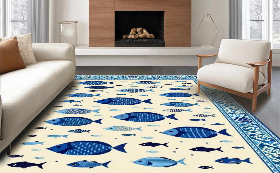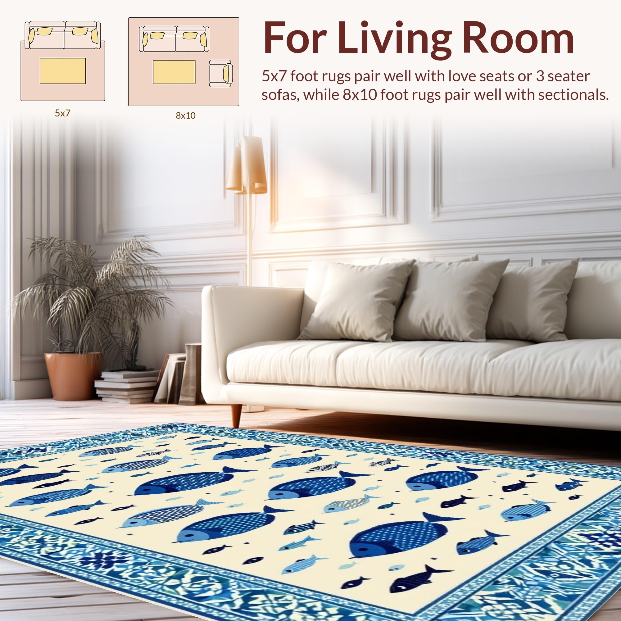 Ultra Soft Area Rug, Non Slip, Stain Resistant, Washable Area Rugs for Living Room, Bedroom, Eclectic Tropical Fish Imagery(White) Overview: