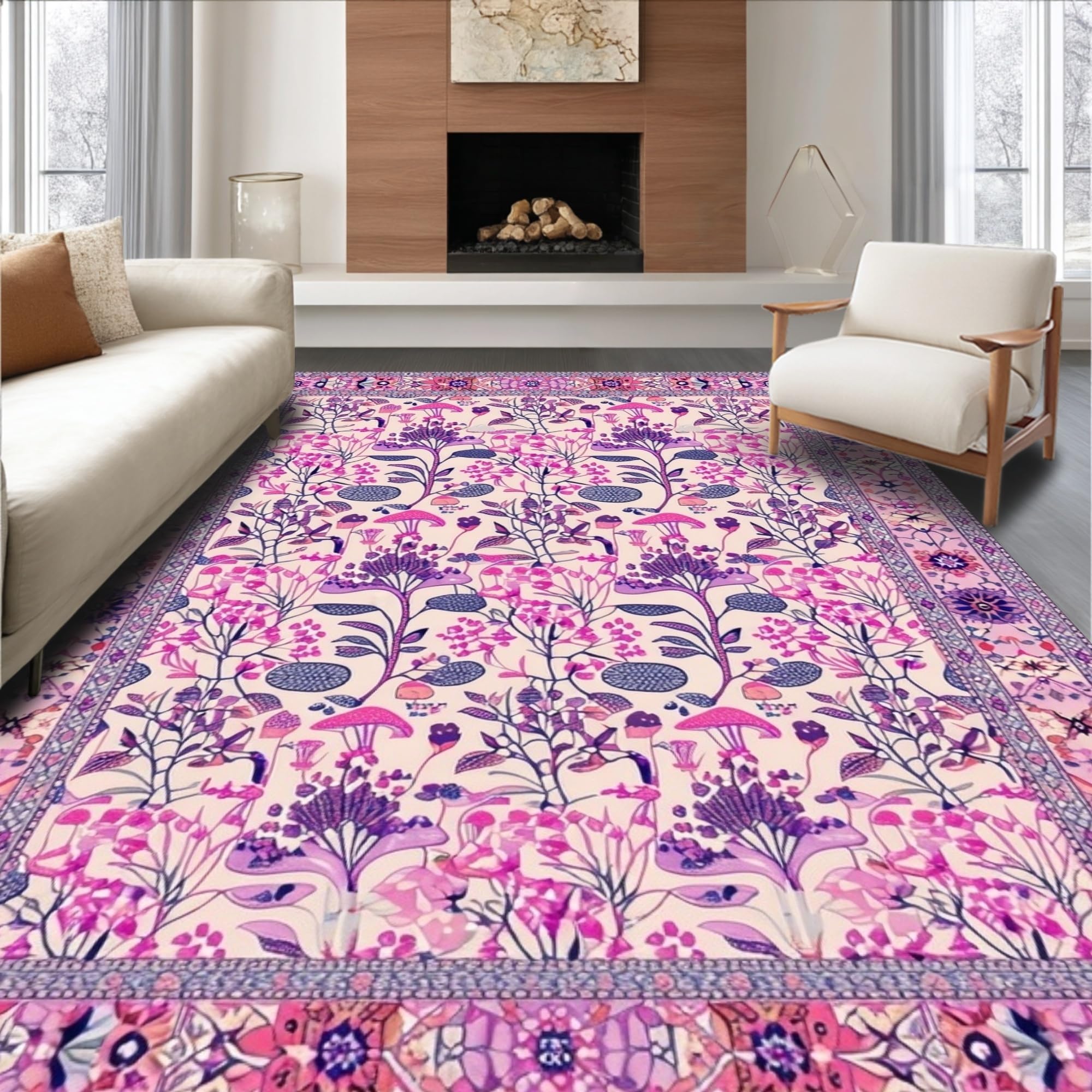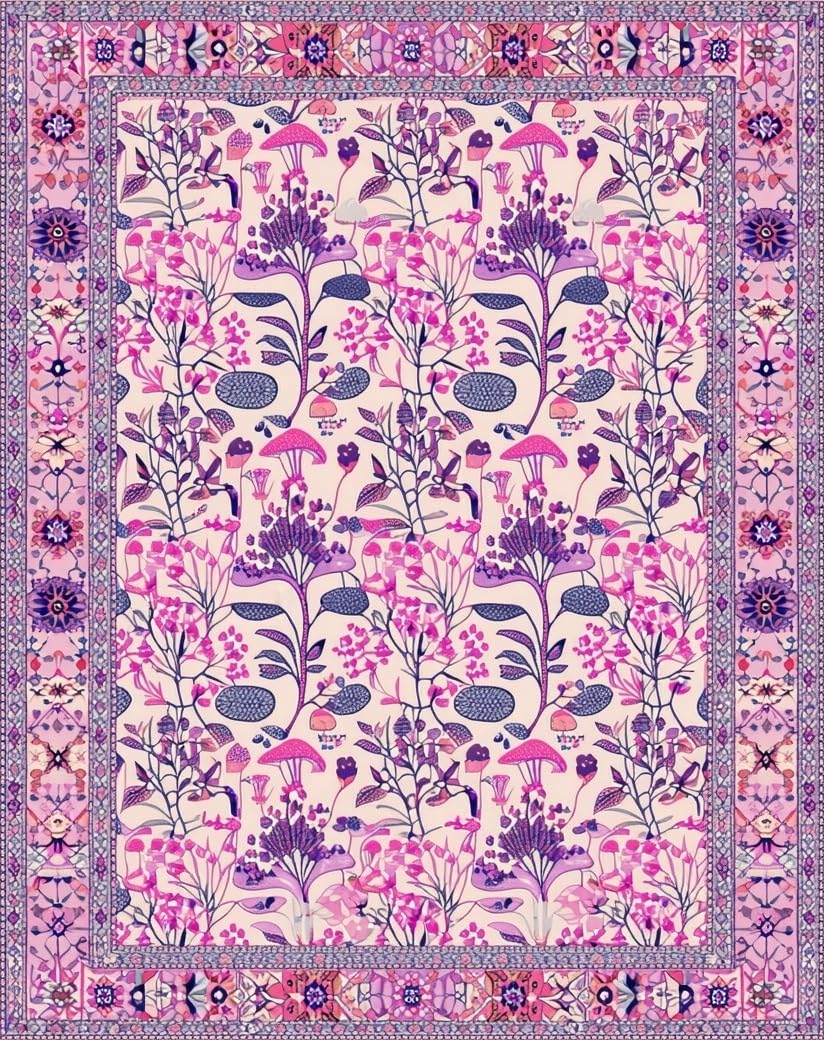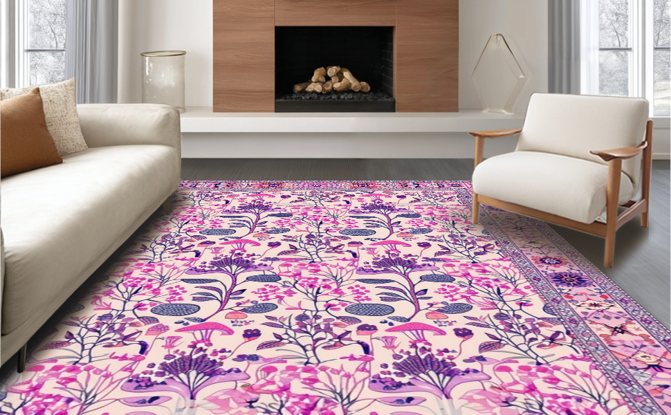 Ultra Soft Area Rug, Non Slip, Stain Resistant, Washable Area Rugs for Living Room, Bedroom, Eclectic Vibrant Retro Elements(Ivory) Overview: