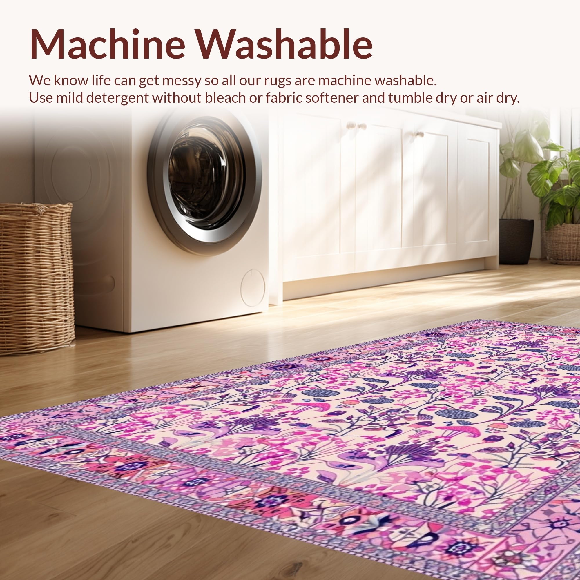 - Machine Washable: Our rugs can be easily thrown in the wash machine.