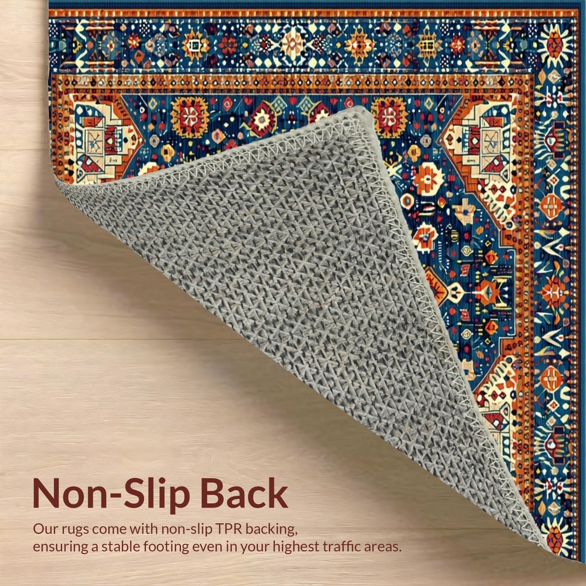 Ultra Soft Area Rug, Non Slip, Stain Resistant, Washable Area Rugs for Living Room, Bedroom, Eclectic Vintage Medallion Aesthetic(Blue) Overview: