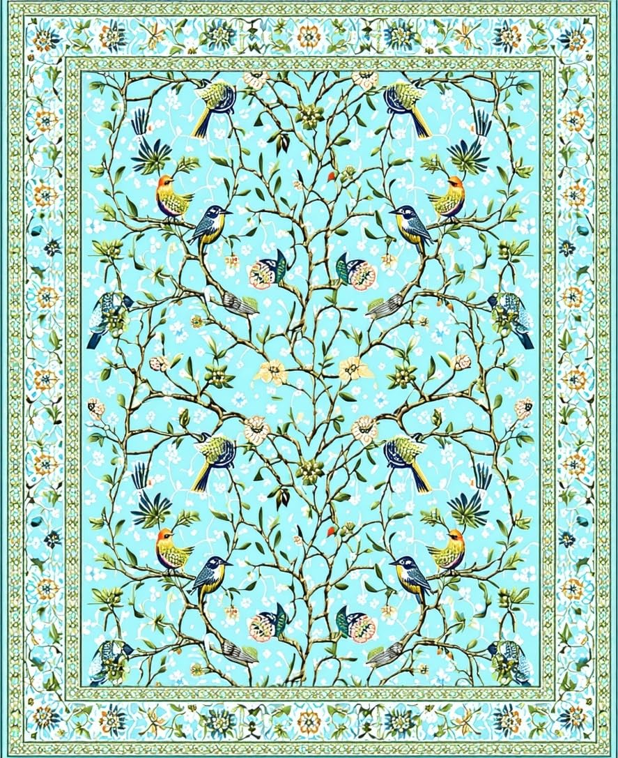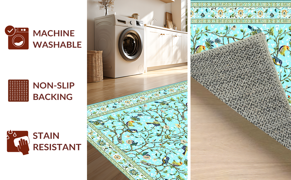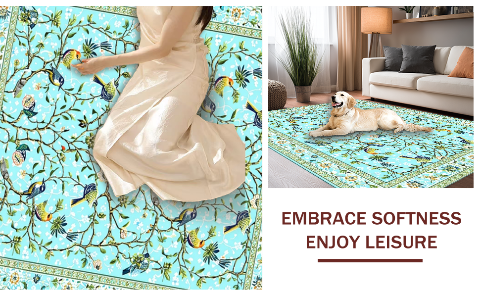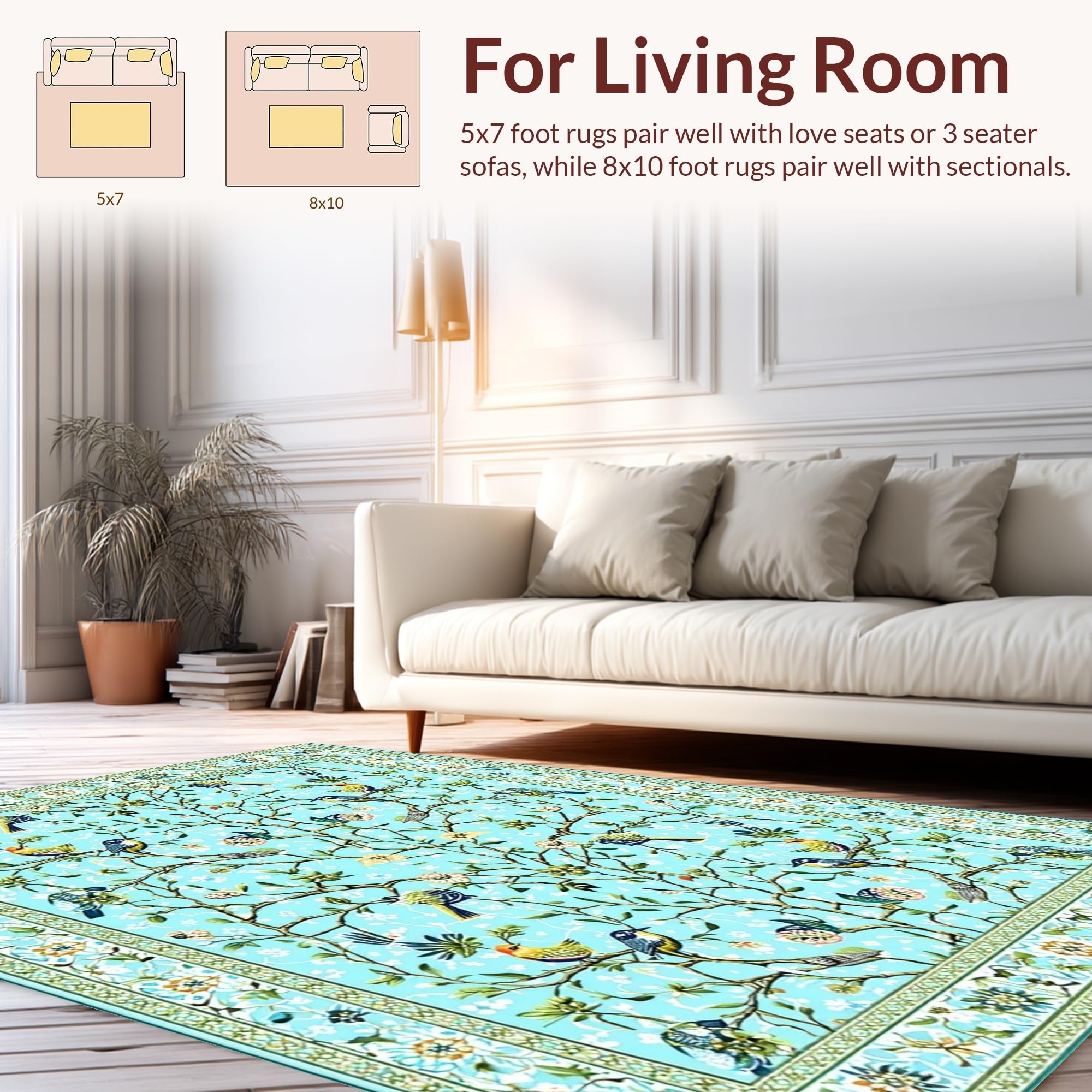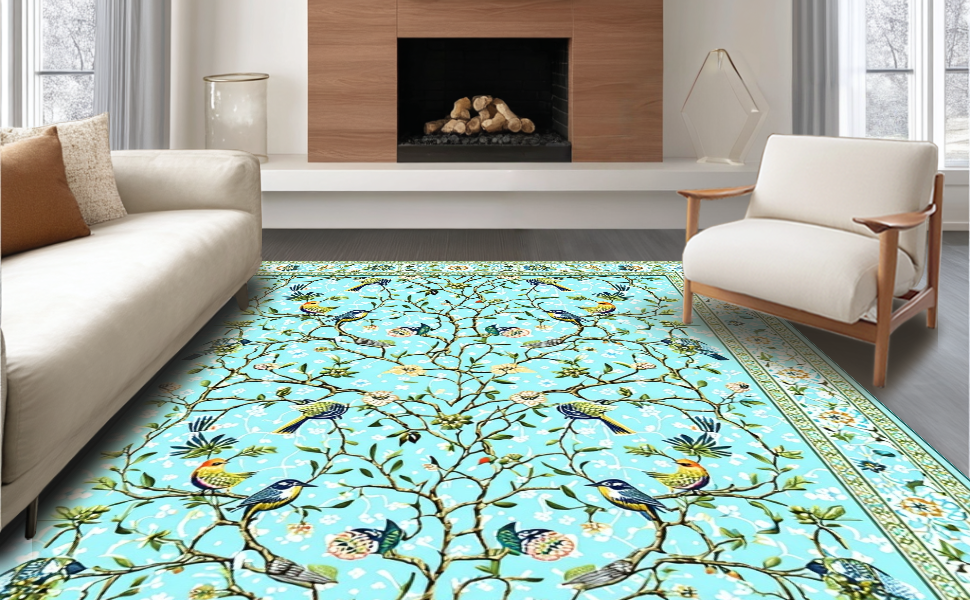Ultra Soft Area Rug, Non Slip, Stain Resistant, Washable Area Rugs for Living Room, Bedroom, Eclectic Vintage Springtime Imagery(Blue) Overview: